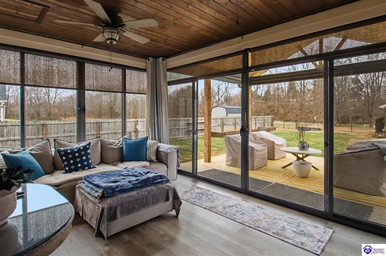 Exterior Covered Front Porch, Covered Deck, Deck, Storage Shed, Sun Room