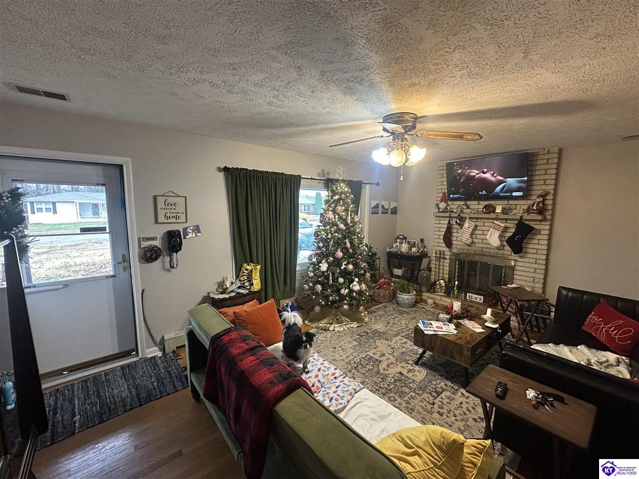 Realtor's notes: Welcome to this all-brick 3-bedroom, 1.5-bath home situated on a quiet dead-end street and wooded lot. The home features a spacious living area with fireplace, sunroom, large deck, and a main-level primary bedroom with half bath. The full bathroom was remodeled in 2022. The full unfinished basement offers excellent potential and is plumbed for a second full bath. Basement includes a utility area, large open space suitable for a family or recreational room, an additional room ideal for an office, and ample storage throughout. Additional features include an eat-in kitchen, 2-car garage, and convenient access to Fort Knox, shopping, and local amenities. Property is being sold AS-IS. Priced to move quick. Motivated seller.