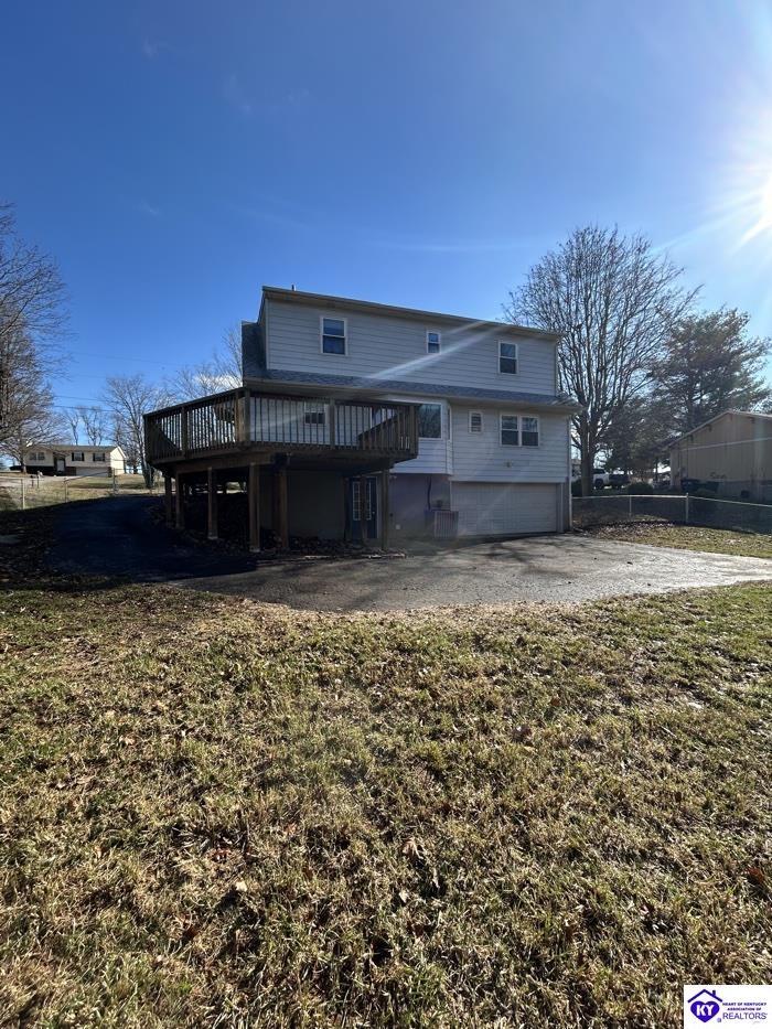 Realtor's notes: Spacious single-family home set on approximately 0.7 acres in an established Radcliff neighborhood. This property offers around 2,300 square feet of living space with 4 bedrooms and 2 full bathrooms, providing a flexible layout for a variety of living needs. The interior features a welcoming entry, generous living and dining areas, and a comfortable family room designed for everyday use and gatherings. The kitchen connects easily to the main living spaces, while bedrooms are well-proportioned and offer ample storage. An attached 2-car garage adds convenience, and outdoor areas include a deck overlooking a deep backyard with mature trees, creating a natural backdrop.