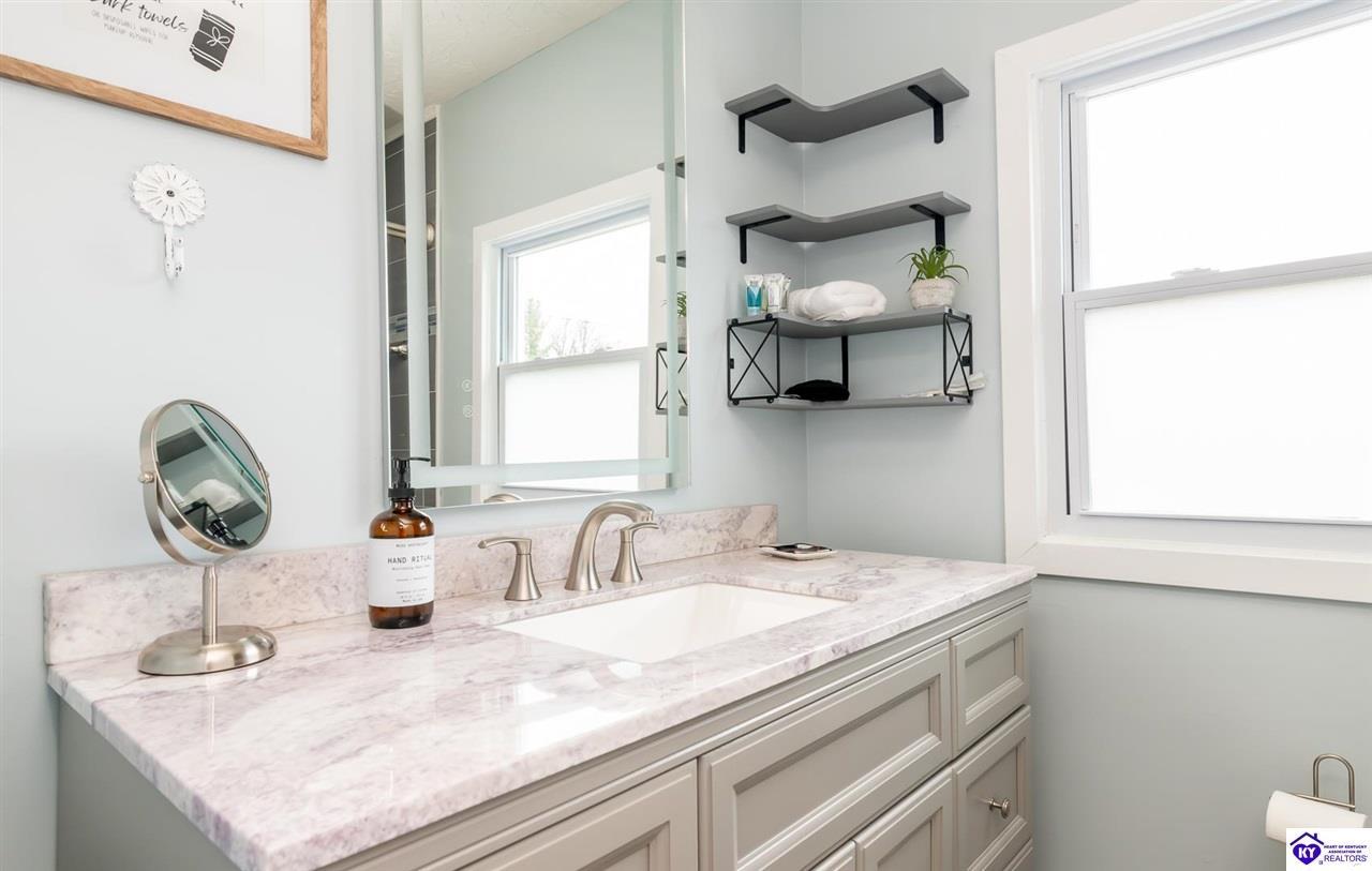 Realtor's notes: Sweet 3 bedroom split ranch on nearly half an acre in Elizabethtown, minutes to amenities and about 20 minutes to Ft. Knox. Fully updated with walk in tile shower and tile surround in bathrooms, new bathroom vanities, new kitchen cabinetry, and newer appliances. Newer roof, HVAC, appliances and hot water heater. Super clean and ready to go. Washer and dryer included. Seller has had pre-inspection done and addressed deficiencies, and is happy to share the report with buyer. See this home today! Property is Agent owned.