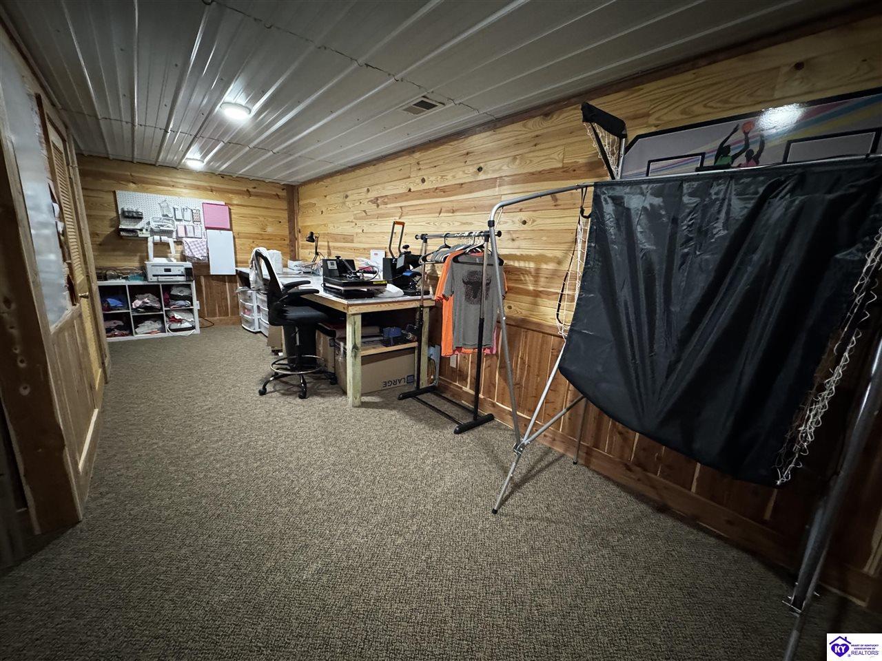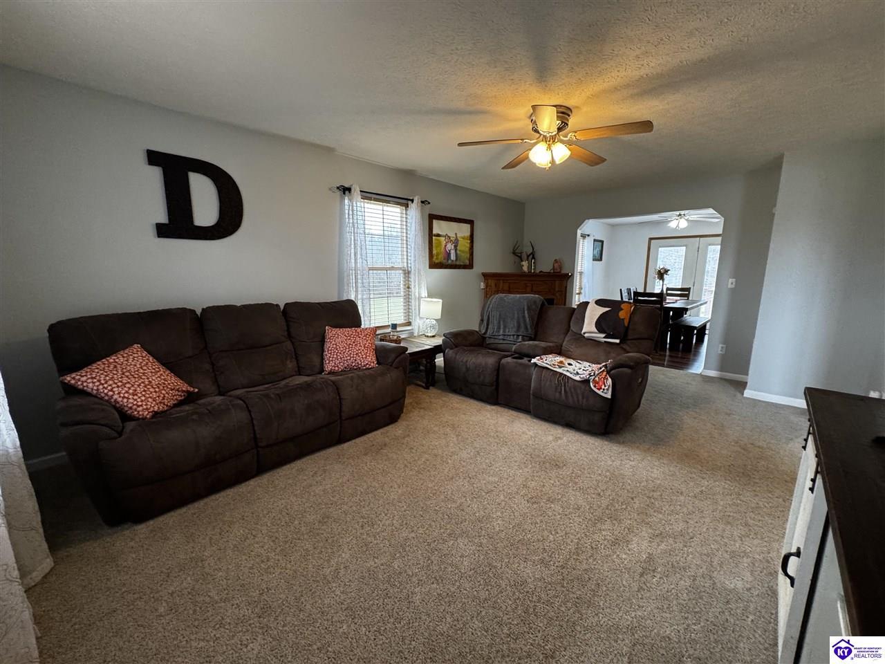 Realtor's notes: Nestled on 3 gorgeous Kentucky acres, this Vine Grove gem is the kind of place you pull up to and instantly think- Yup, this is the one! Built in 2011 and loved well, this home brings all the cozy vibes with 2.5 bathrooms, an attached 2-car garage and a fully finished basement wrapped in warm pine & cedar walls. Hello cabin-feel hideaway! Step out back and you've got a fenced yard and a HUGE covered deck, basically your new headquarters for coffee mornings, grill nights, and all things outdoor living. Inside, the kitchen flows right into the living room, making entertaining super easy (and super fun). All kitchen appliances stay. Yep, move-in ready. Comfort right out of the gate! The 2019 HVAC is dual fuel, meaning when temps dip below 35°, the system switches to gas heat automatically. Kentucky weather doesn't stand a chance. You'll also love the gas fireplace for those cozy nights in. And for the nature lovers? The property includes a deer blind tucked away out back. Whether you hunt or just love watching wildlife, it's a sweet bonus on these beautiful acres. Come see this dream home in person and be ready to fall in love.