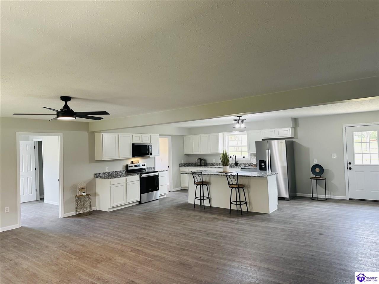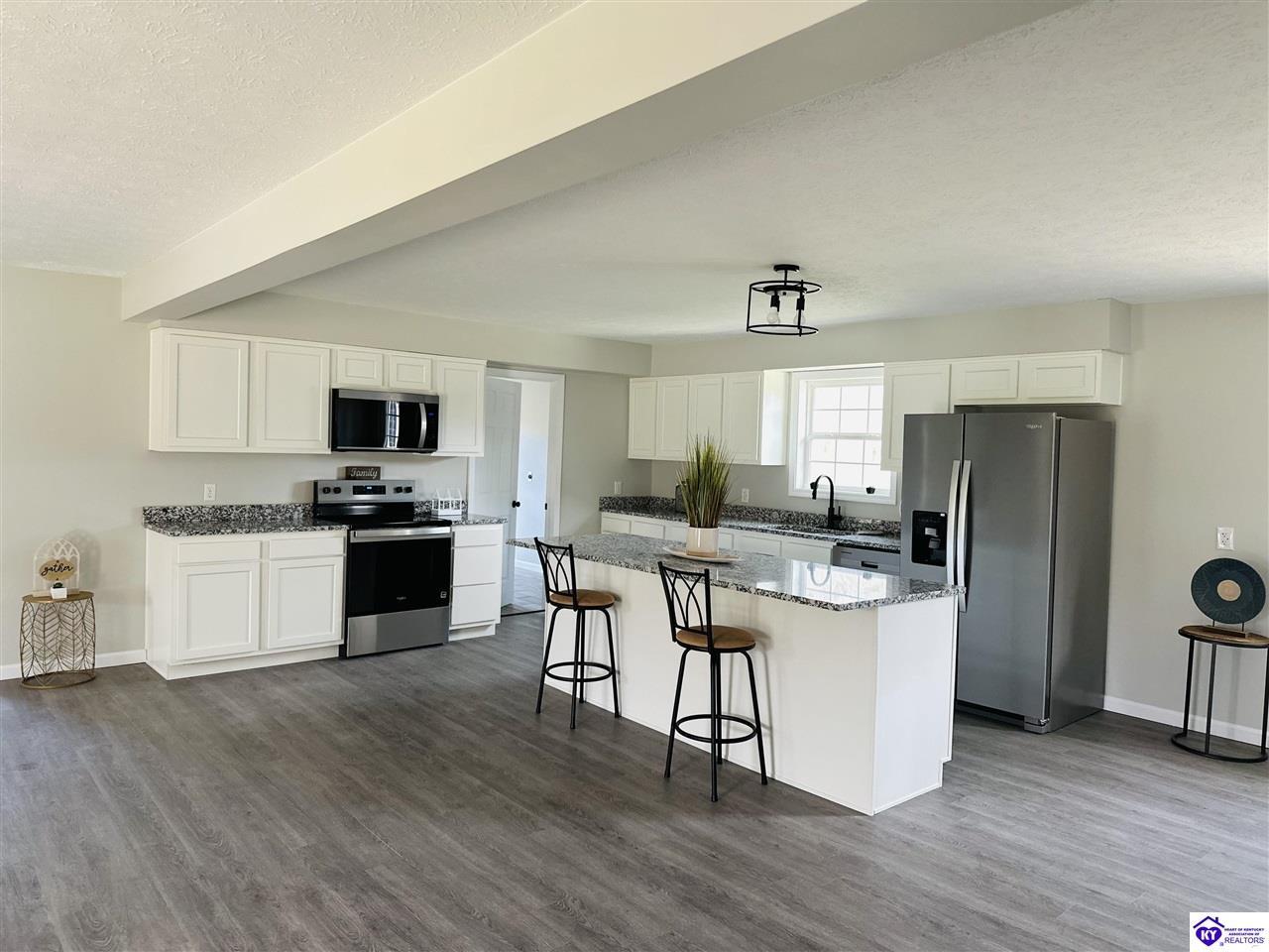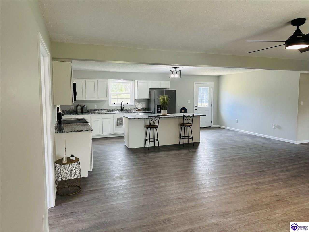 Realtor's notes: Welcome to this beautifully, fully remodeled ranch-style home located at 2555 Fallen Timber Road in Campbellsville, KY. Offering the perfect blend of modern updates and peaceful country living, this home is situated on a paved road and just 5 miles from Taylor County High School, shopping and restaurants. Provides both convenience and privacy! This spacious 1,770 sq ft home features 4 bedrooms and 3 full bathrooms, making it ideal for large families, first-time homebuyers. The large living room flows seamlessly into a generous kitchen with NEW cabinets, granite countertops, new appliances, updated lighting, and fresh LV flooring and paint throughout. The primary suite includes a stunning tile walk-in shower, while all bathrooms offer new tile floors, vanities, showers, and bathtub. A large laundry room with tile flooring adds extra functionality. Outside enjoy 1.0 acre of beautiful country land, this home offers the perfect blend of peaceful rural living and easy access to town. This property features a large covered front porch—perfect for relaxing with a cup of coffee and enjoying the view. The spacious back deck is ideal for hosting family gatherings, grilling out, or simply unwinding in the fresh air. The large 2-car garage has a new concrete floor, offering plenty of room for vehicles, storage, or a workshop. The property sits on a large one-acre lot with a great front and back yard, giving you plenty of outdoor space for gardening, play, or even expansion. Key Features: Large covered front porch, spacious back deck for outdoor living, fully remodeled 2-car garage with new concrete floor, expansive front and back yard, quiet, country setting but just minutes from town. Perfect for anyone seeking a peaceful retreat with the convenience of being close to local amenities. Don’t miss the chance to make this charming home yours!