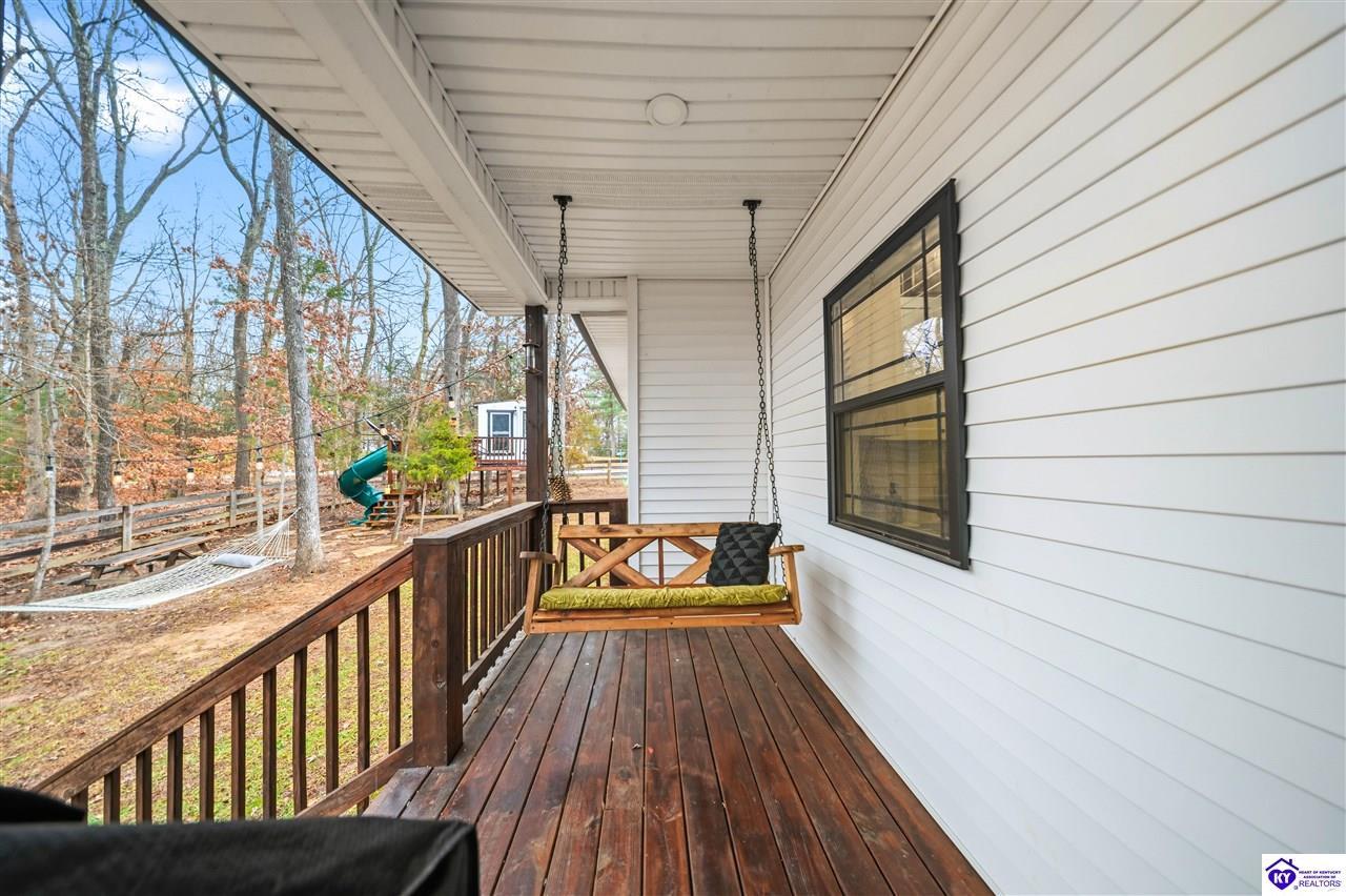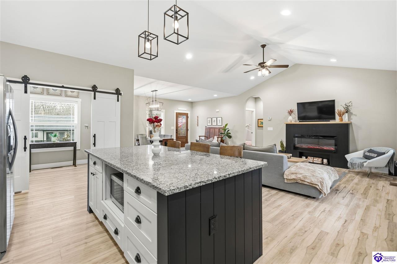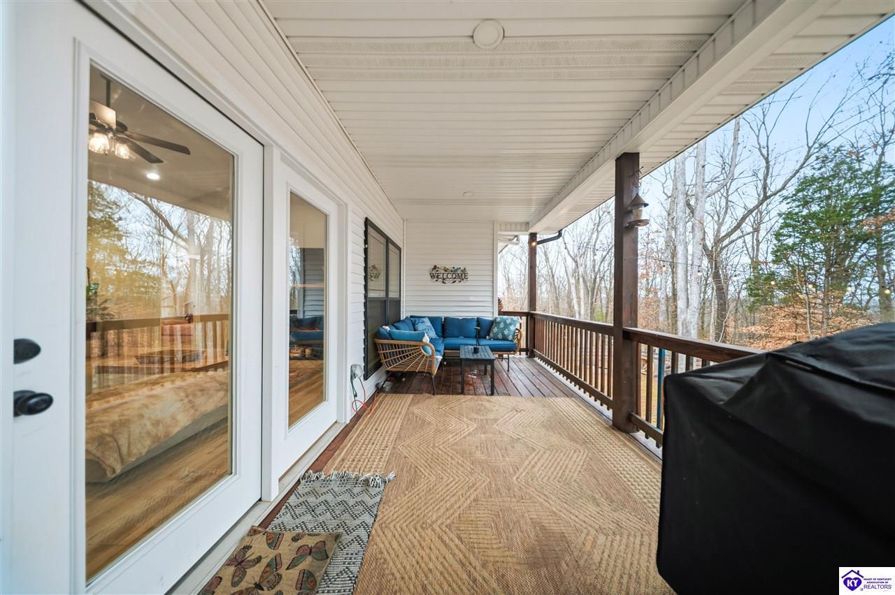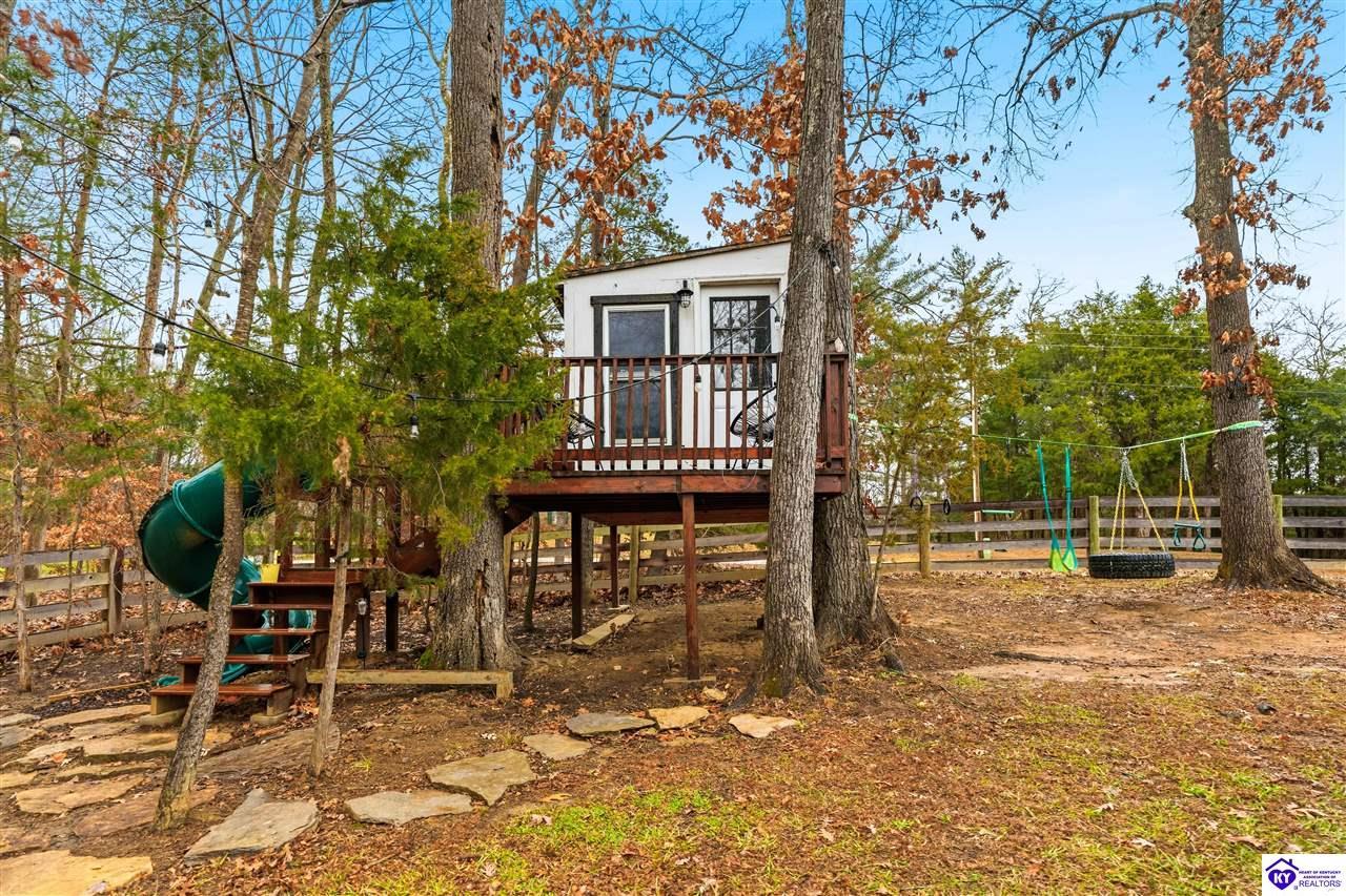Realtor's notes: Comfort meets wooded escape in Doe Valley. This spacious 5 bedroom 3 bath home offers an inviting open concept design with a show stopping kitchen, large island, stylish finishes, and natural light throughout. The living room fireplace serves as the perfect centerpiece for everyday living and gatherings. Downstairs, the fully finished basement expands your living options with flexible space ideal for entertaining or a media retreat. Step outside to a cozy covered porch and wooded yard featuring a private treehouse full of imagination and a hot tub perfect for unwinding. This home beautifully blends space, comfort, a private feel and nature within a gated community that offers a private lake, golf, tennis, pool and a restaurant. Come tour today!