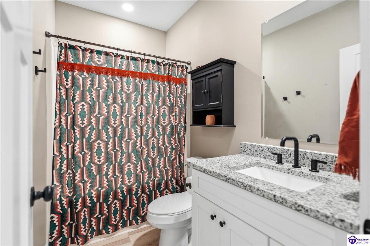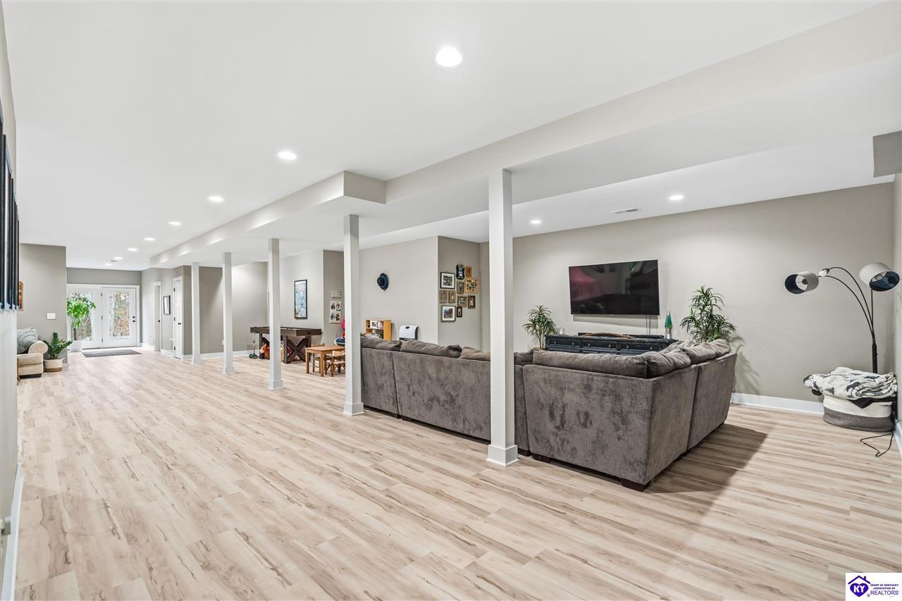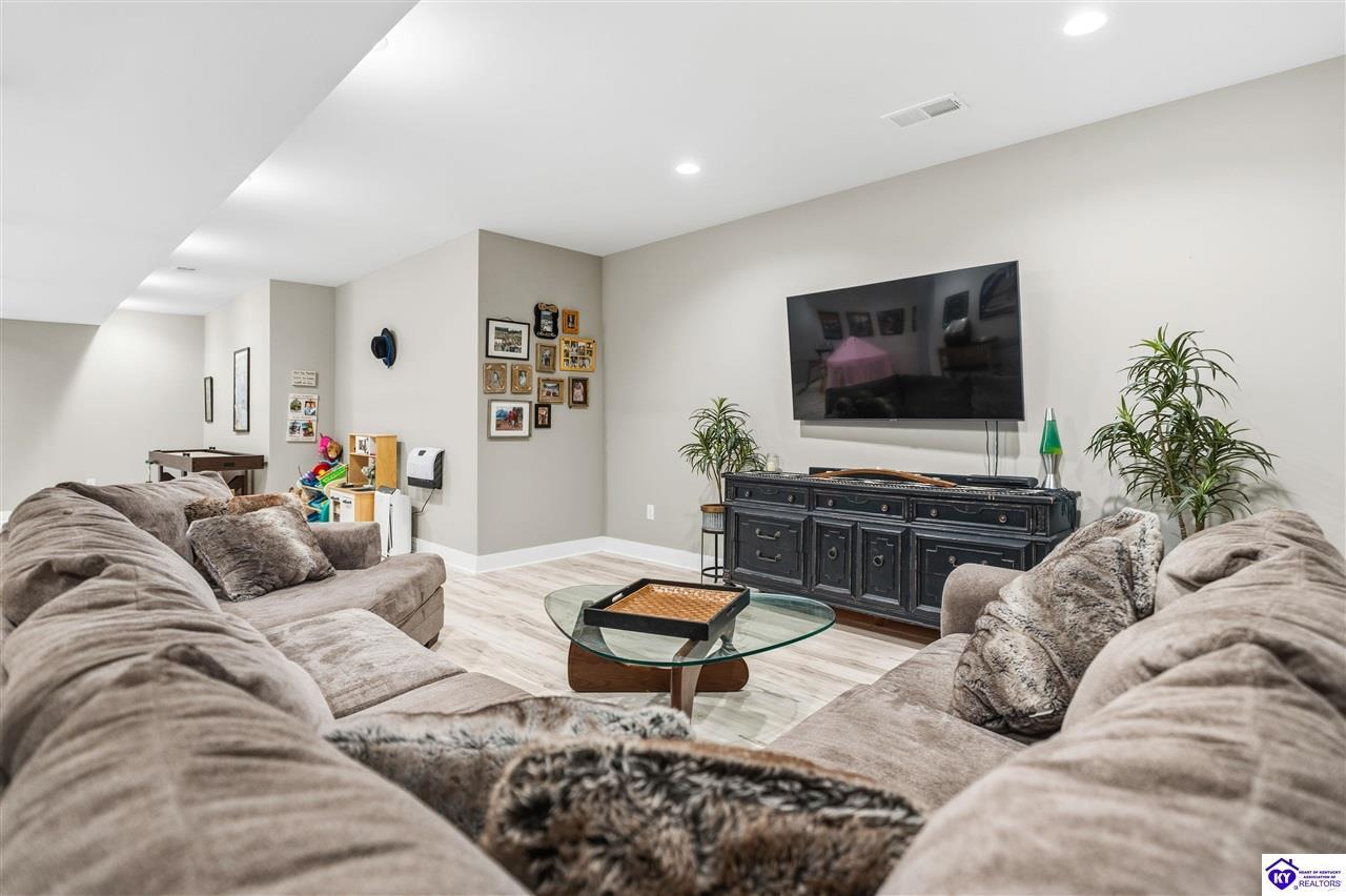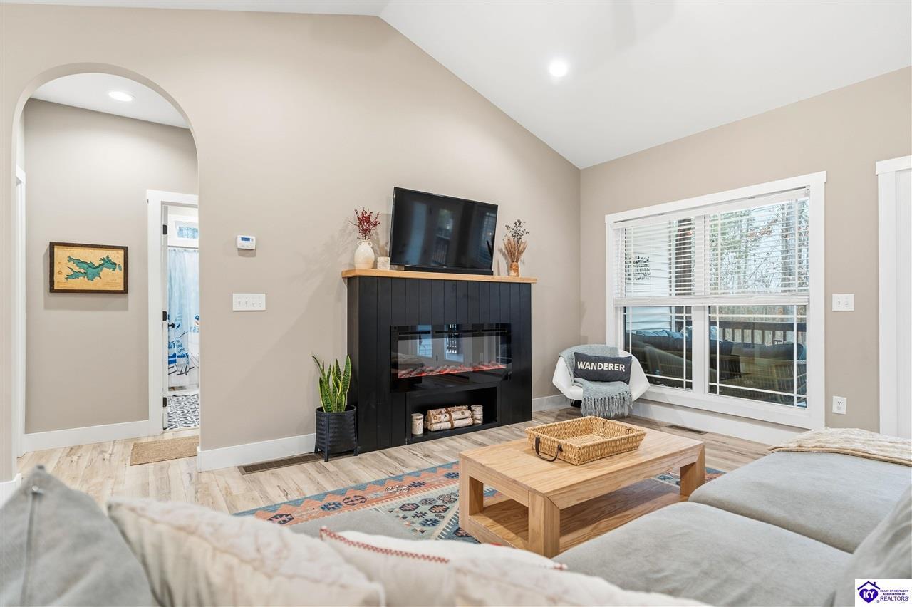 Realtor's notes: Comfort meets wooded escape in Doe Valley. This spacious 5 bedroom 3 bath home offers an inviting open concept design with a show stopping kitchen, large island, stylish finishes, and natural light throughout. The living room fireplace serves as the perfect centerpiece for everyday living and gatherings. Downstairs, the fully finished basement expands your living options with flexible space ideal for entertaining or a media retreat. Step outside to a cozy covered porch and wooded yard featuring a private treehouse full of imagination and a hot tub perfect for unwinding. This home beautifully blends space, comfort, a private feel and nature within a gated community that offers a private lake, golf, tennis, pool and a restaurant. Come tour today!
