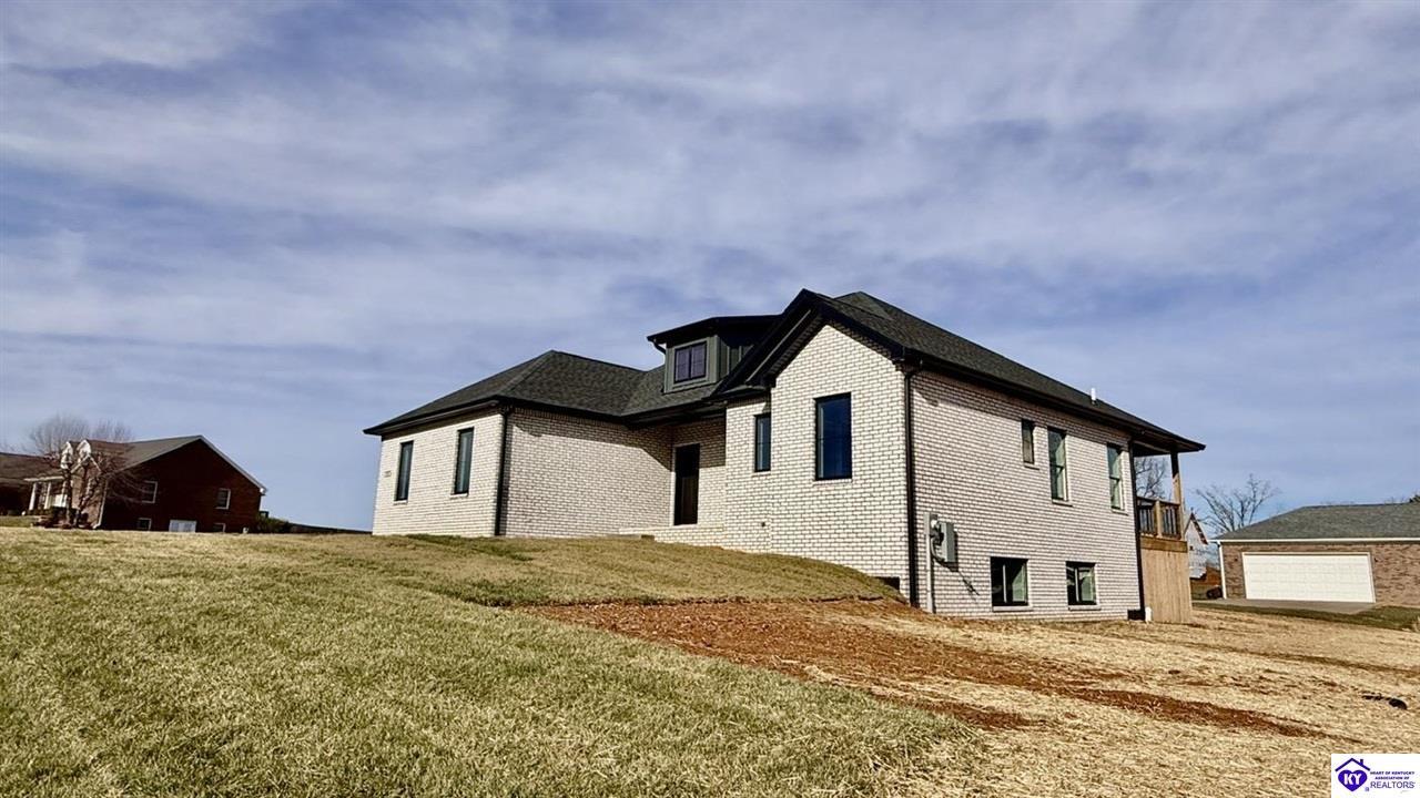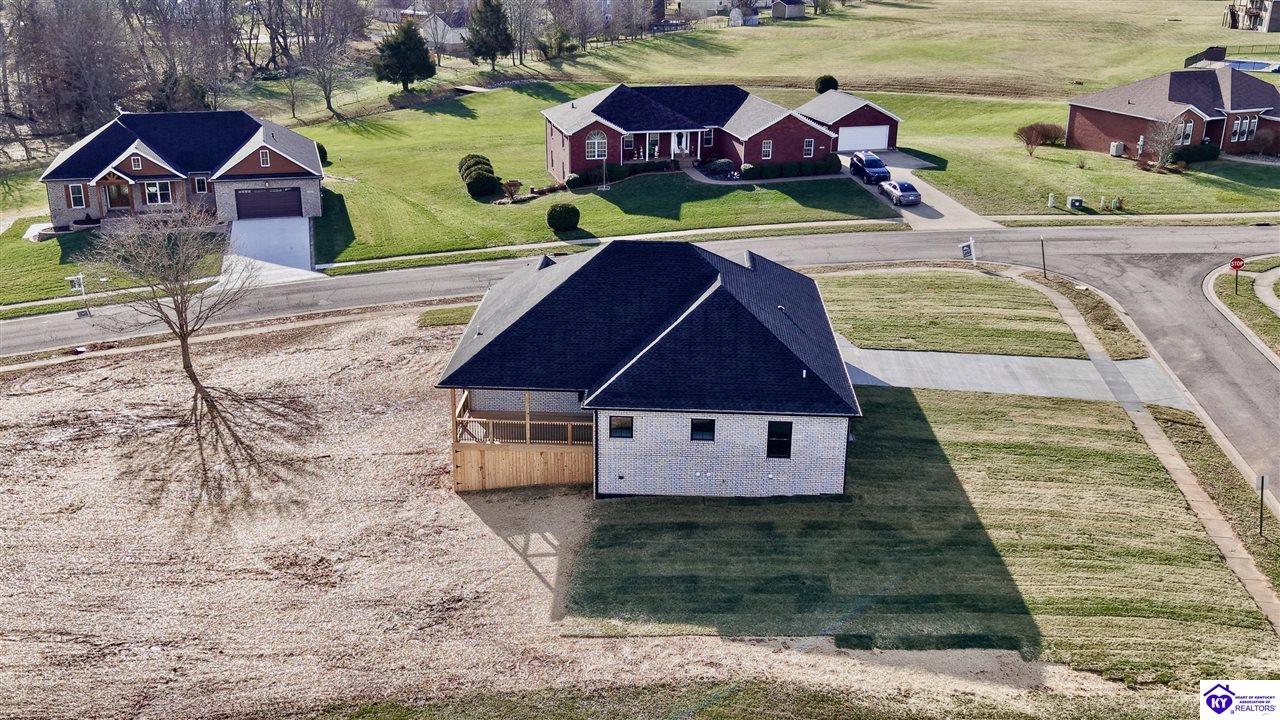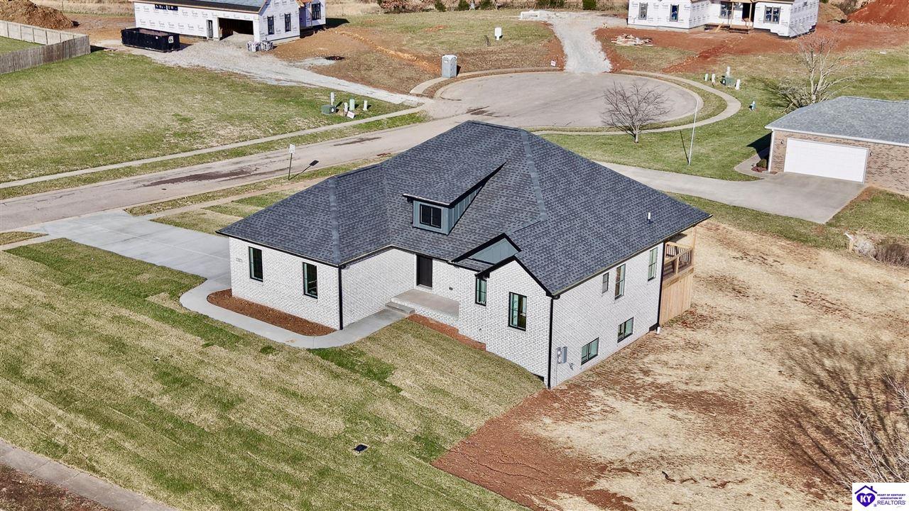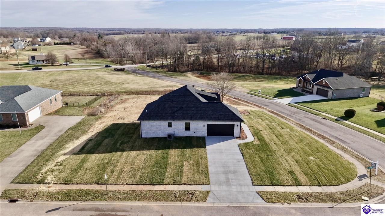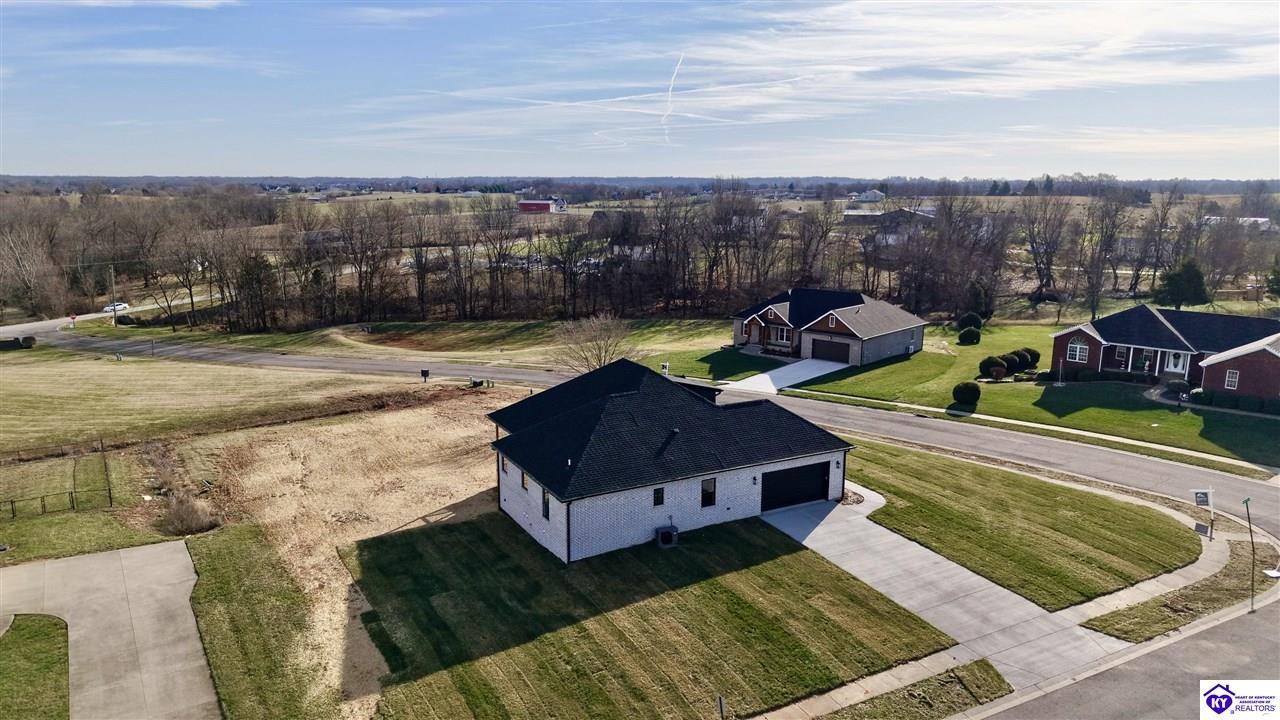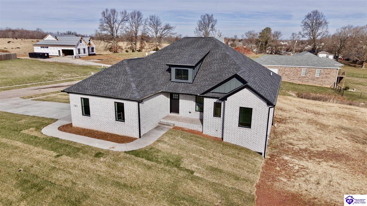 Realtor's notes: Experience Modern Elegance at 98 Shepherds Way Welcome to this stunning, brand-new brick ranch located on a generous .71-acre lot in the heart of Rineyville. Boasting 2,500 square feet of finished living space, this home perfectly blends high-end craftsmanship with a functional, modern layout. Step inside to discover a spacious split-bedroom floor plan centered around a cozy living area featuring a sleek electric fireplace with elegant built in bookcases. The chef’s kitchen is a true showpiece, equipped with custom-made Walters Cabinets, premium stainless steel appliances, and a professional-grade vented hood. The Primary Suite serves as a private retreat, featuring massive walk-in closets and a spa-like bathroom complete with a separate custom tile shower and a beautiful soaking tub. With a partially finished basement providing extra room to grow and a main-floor laundry room for ultimate convenience, every detail has been considered.