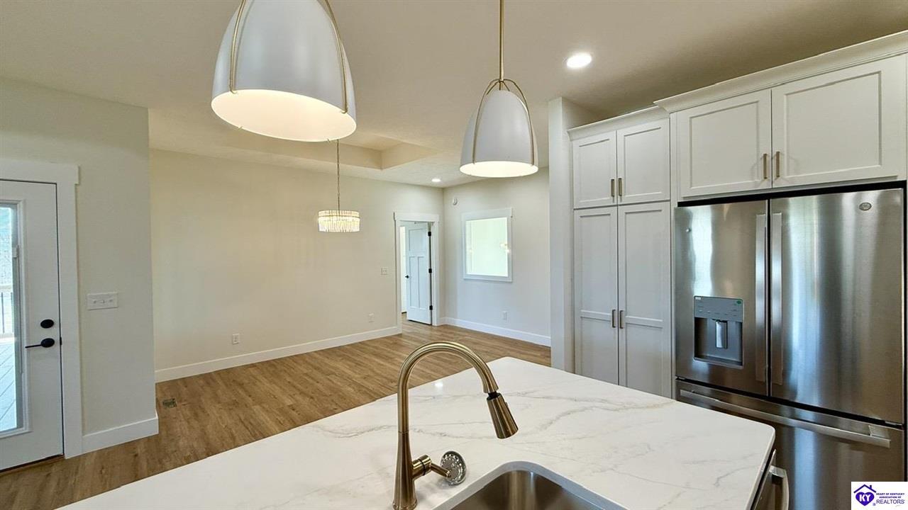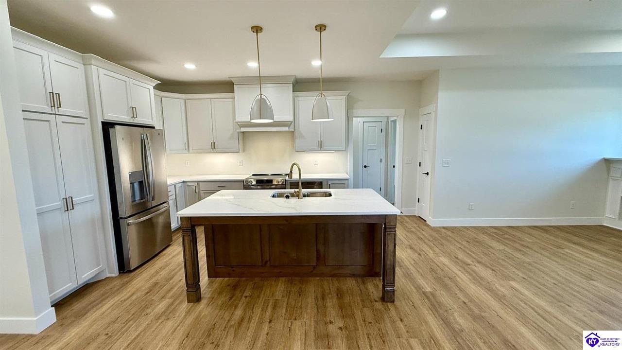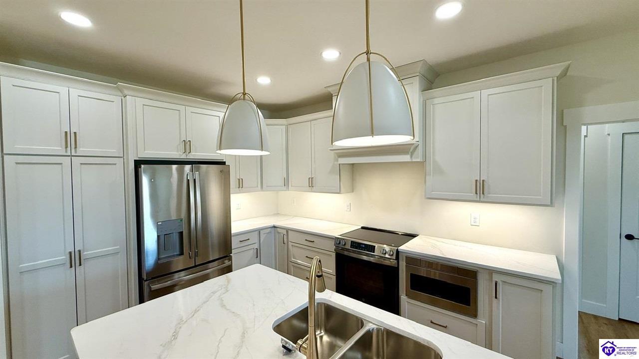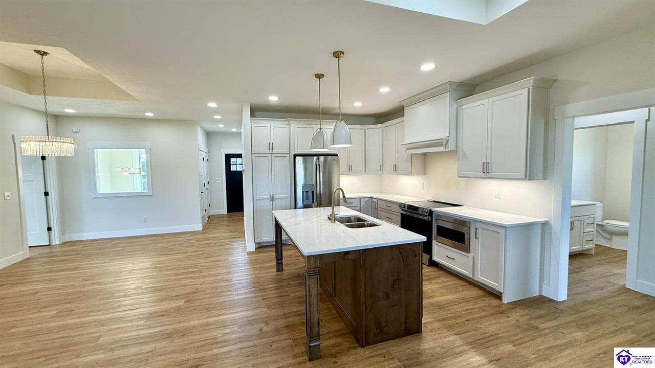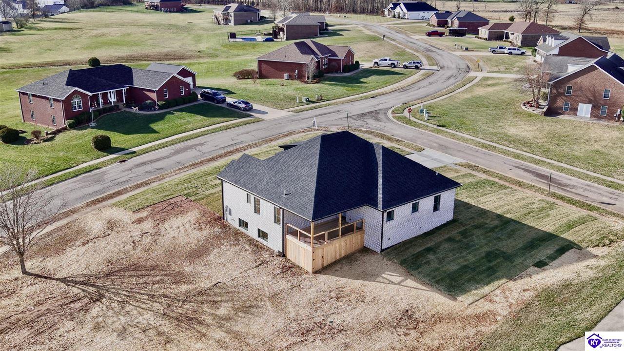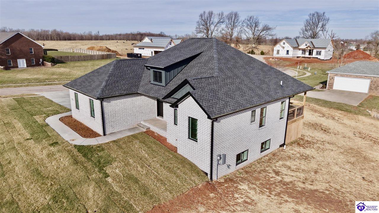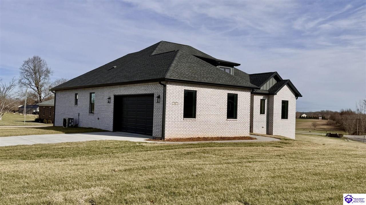 Realtor's notes: Experience Modern Elegance at 98 Shepherds Way Welcome to this stunning, brand-new brick ranch located on a generous .71-acre lot in the heart of Rineyville. Boasting 2,500 square feet of finished living space, this home perfectly blends high-end craftsmanship with a functional, modern layout. Step inside to discover a spacious split-bedroom floor plan centered around a cozy living area featuring a sleek electric fireplace with elegant built in bookcases. The chef’s kitchen is a true showpiece, equipped with custom-made Walters Cabinets, premium stainless steel appliances, and a professional-grade vented hood. The Primary Suite serves as a private retreat, featuring massive walk-in closets and a spa-like bathroom complete with a separate custom tile shower and a beautiful soaking tub. With a partially finished basement providing extra room to grow and a main-floor laundry room for ultimate convenience, every detail has been considered.