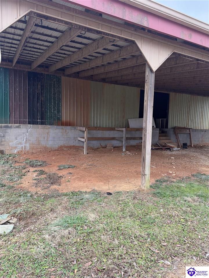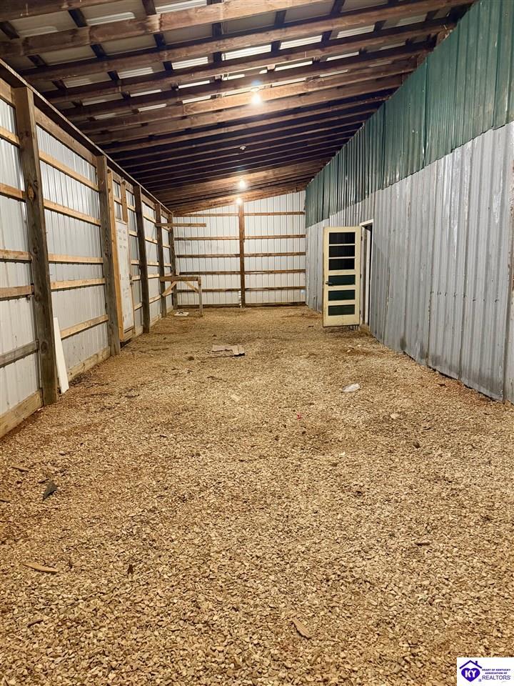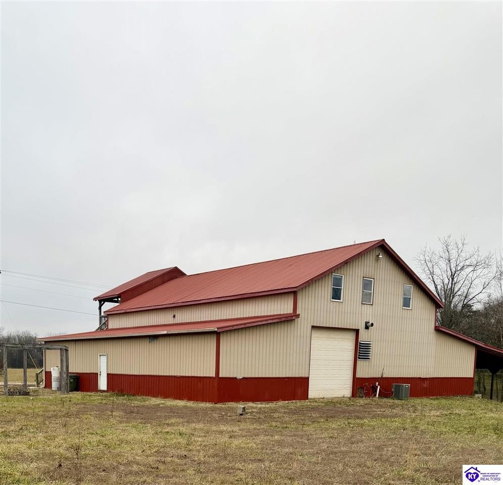 Realtor's notes: Discover the charm of true barndominium living on 5 beautiful acres, offering both function and relaxation in a stunning country setting. The main level provides versatile space ideal for storage, workshop, hobby use, or recreational needs, while the living area is thoughtfully located upstairs, featuring warm finishes, and a comfortable open layout. Enjoy peaceful mornings and sunset views from the inviting front porch, perfect for taking in the scenery. Outside, a nicely designed fire pit area creates an ideal spot for gatherings, relaxation, or quiet evenings under the stars. If you're looking for unique character, privacy, and space to live, work, and unwind, this barndominium delivers the lifestyle you've been dreaming of.