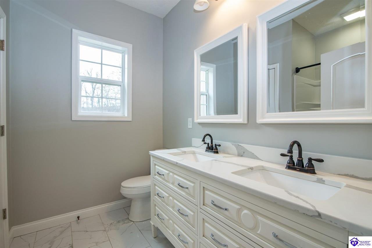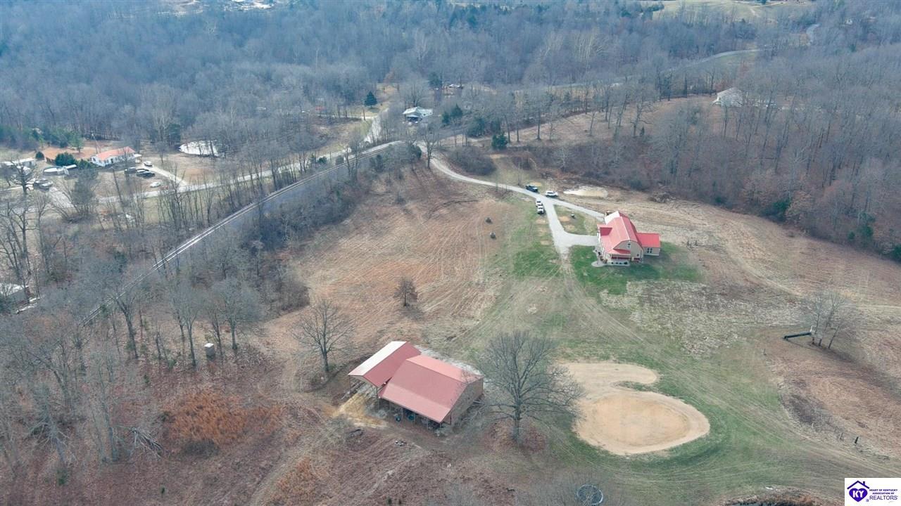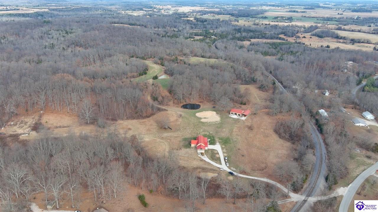 Realtor's notes: Welcome to 1096 Eastview Road in Cecilia, KY — a rare opportunity to own a private, recreational farm on approximately 58 acres (per deed). This custom-built home, constructed in 2014, offers 2,974 square feet of living space with 3 bedrooms and 2.5 bathrooms, plus a spacious recreation room ideal for entertaining, hobbies, or a home theater. The home features both propane and electric fireplaces, providing comfortable and inviting living areas. The property is extremely private and secluded, making it ideal for those seeking a peaceful rural lifestyle with exceptional outdoor amenities. Highlights include a private golf practice green with 14 tee boxes extending out to approximately 225 yards, multiple stocked ponds for fishing and recreation, and abundant wildlife, including trophy whitetail deer harvested on the property. Additional improvements include a large 40X50 detached garage with 12ft lean to with water and electric service, as well as a separate RV storage building equipped with 50-amp hookups, providing excellent space for equipment, recreational vehicles, and storage needs. This property offers a unique combination of residential comfort and recreational opportunity. Suitable for hunting, fishing, golfing, or simply enjoying privacy and open space, this is a versatile property in a desirable rural Hardin County location. Conveniently located yet offering total seclusion, this property is well-suited for a full-time residence, or recreational retreat. Buyer to verify acreage, square footage, and all property details.