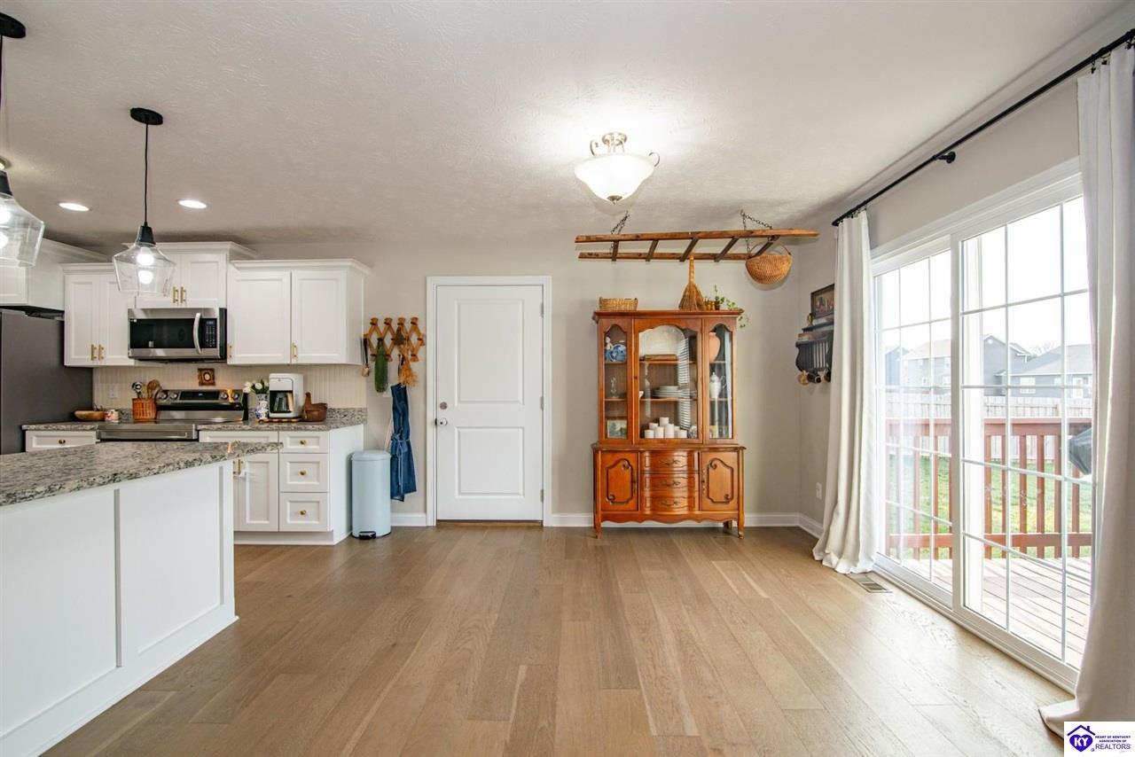 Realtor's notes: This stunning three-bedroom, 2½-bath home feels like new and offers the perfect blend of modern style and everyday comfort. From the moment you step inside, you’ll appreciate the contemporary feel of this spacious two-story home, complete with a fully finished basement that expands the living space even further. Boasting over 3,300 square feet of living space, this home features a bright and open layout filled with natural light. The main level includes a formal dining room, an inviting living room with a cozy fireplace, and a beautifully designed eat-in kitchen ideal for both entertaining and daily living. Downstairs, the finished basement provides endless possibilities for a recreation room, home office, or additional living area. Outside, enjoy a fenced-in backyard with a fire pit—perfect for relaxing evenings or hosting gatherings. Move-in ready and meticulously maintained, this home is ideally located in the desirable Rineyville, Kentucky area, offering both convenience and a peaceful setting. A truly exceptional opportunity you won’t want to miss.
