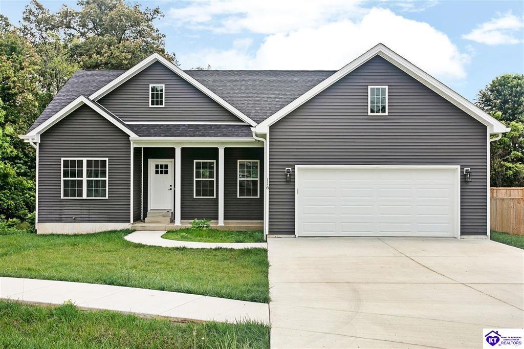 Realtor's notes: Lewis Auction Company will be offering this Property for sale in a online auction that will end on January 13 at 6pm. Discover contemporary living in this stunning new construction home located in Vine Grove, KY. Situated on a .34-acre lot, this beautifully designed property offers 1,414 sq. ft. of modern elegance, featuring 3 bedrooms, 2 full bathrooms, and an open-concept layout perfect for today’s discerning homeowner. Enjoy sleek, contemporary finishes throughout, including granite countertops in the gourmet kitchen and a smart garage door opener with a camera for added security. Relax on the comfortable covered porch and appreciate the outdoor space for activities or gardening. Nestled in the heart of Vine Grove, this home provides the perfect blend of small-town charm and modern amenities, with easy access to local schools, parks, shopping, and dining. Don’t miss the chance to be the first to own this exquisite property; schedule a viewing today and experience the luxury and comfort that awaits you.