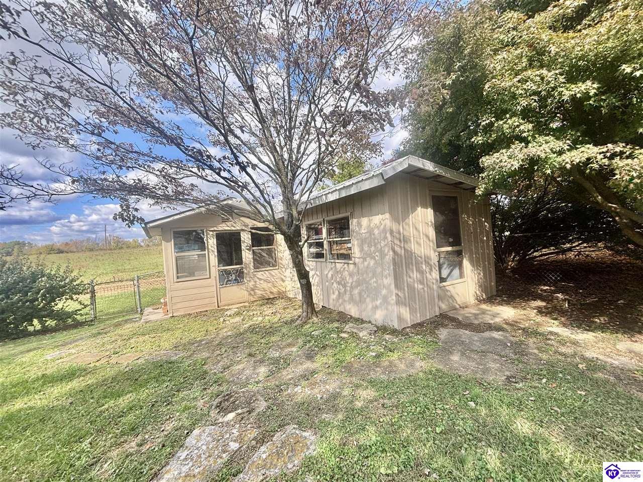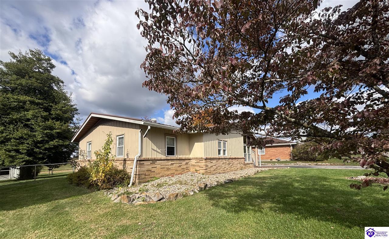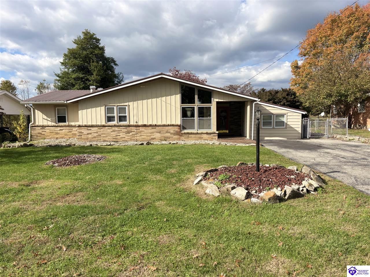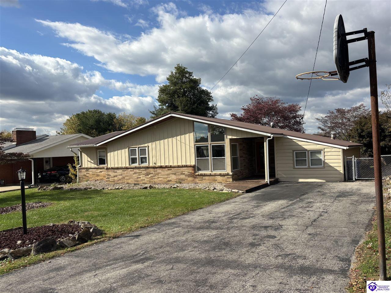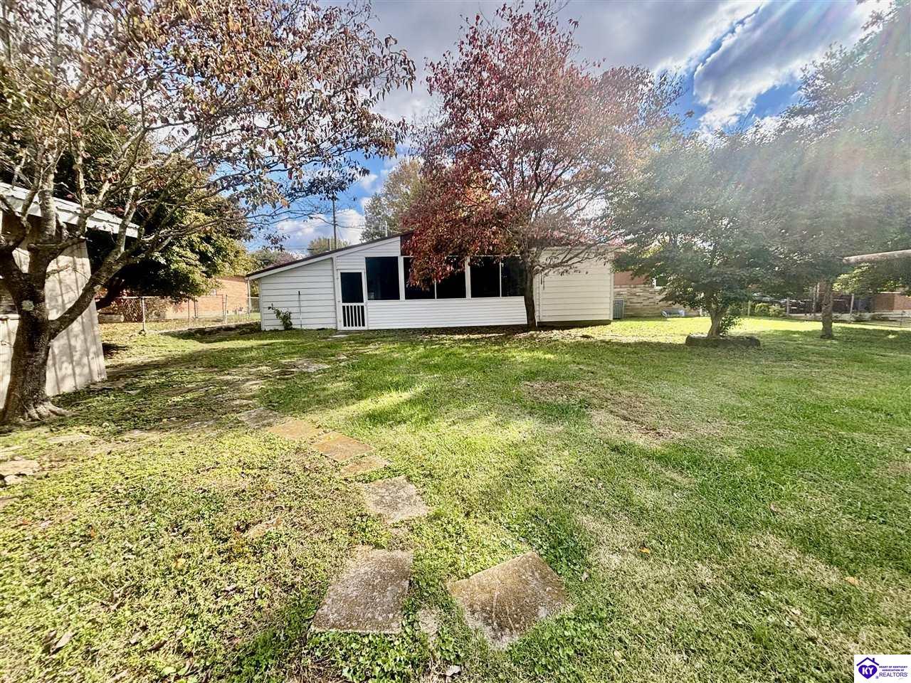 Realtor's notes: FALL IN LOVE! Seller giving a $3,000.00 allowance for landscape! This three-bedroom residence, which could easily be converted into a four-bedroom home, boasts two bathrooms and numerous impressive features. Wait until you witness the remarkable updates. The dream kitchen is a dream, complete with new granite countertops, tile backsplash, and stainless steel appliances that will remain with the property. The beautiful light fixtures are an added touch. The eat in kitchen has tall ceilings with nice beams! You will adore the bathrooms, both of which feature stunning tile work and modern, trendy showers. The main den area boasts high ceilings, beautiful beams, and an eye-catching fireplace. Imagine relaxing in the covered porch area, sipping your morning coffee or entertaining guests. The fenced backyard also features two generously sized buildings, perfect for storage or a workshop. The potential fourth bedroom offers endless possibilities, including a home gym, study, or game room. Additional features include a spacious laundry room with cabinets and a storage room for all your essential items. The backyard is truly a gem.  The shed has a workbench and shelving! GREAT LOCATION---clost to schools, parks, shopping centers, restaurants, and just a short drive from Campbellsville University! GreenRiver lake approximately 15 minute drive! Data believed to be correct, but not guaranteed. Buyer to verify data prior to offer.