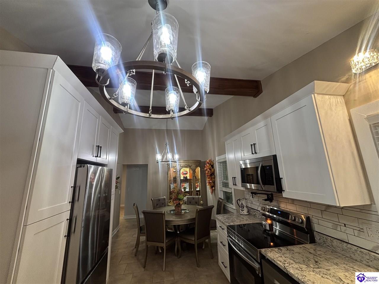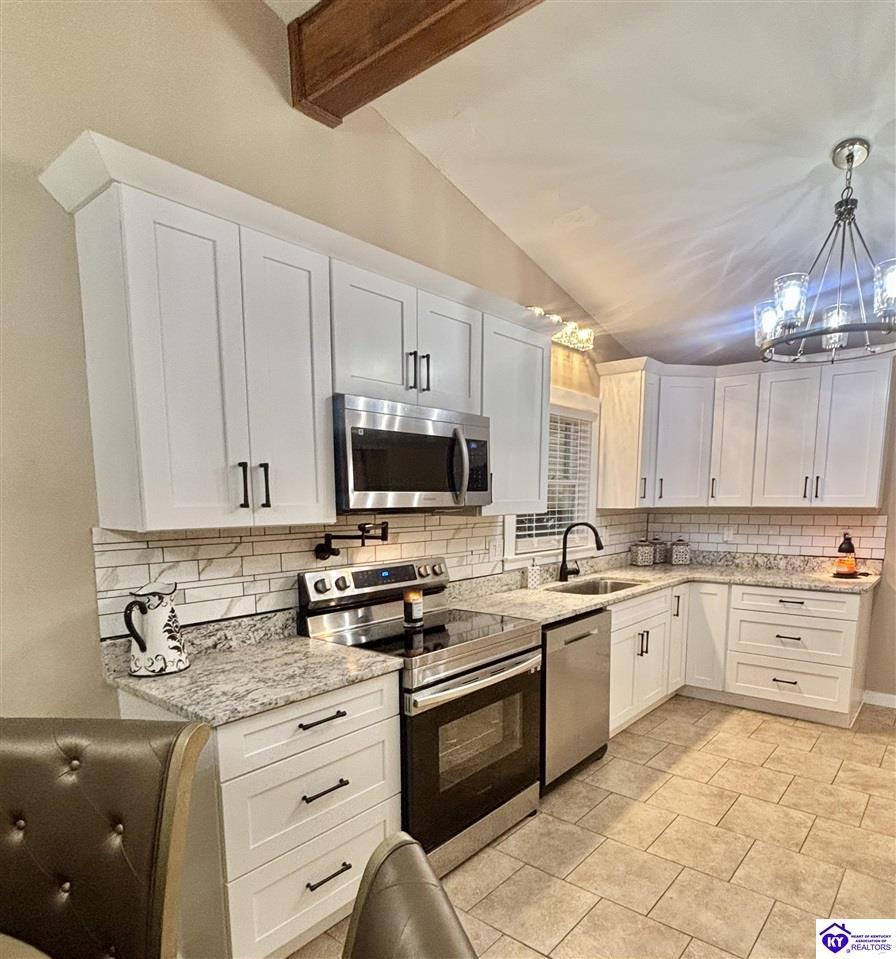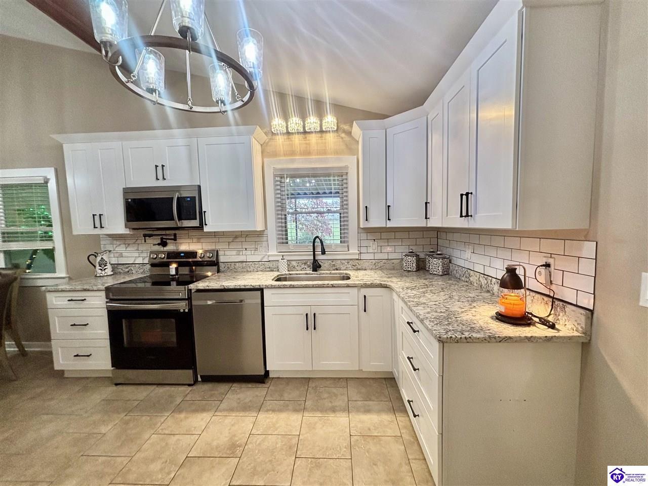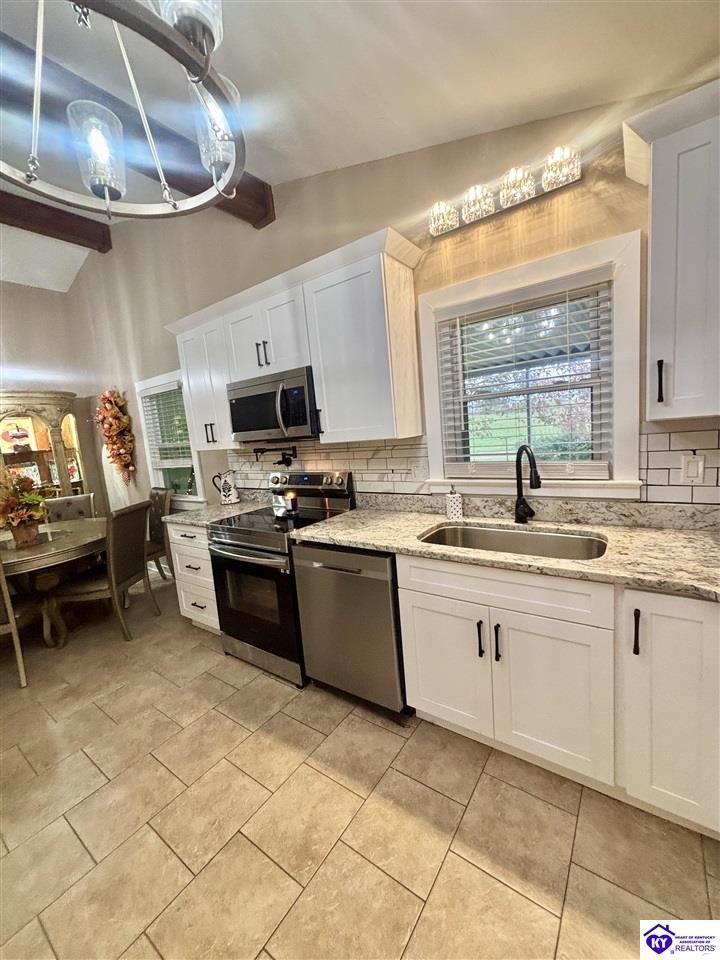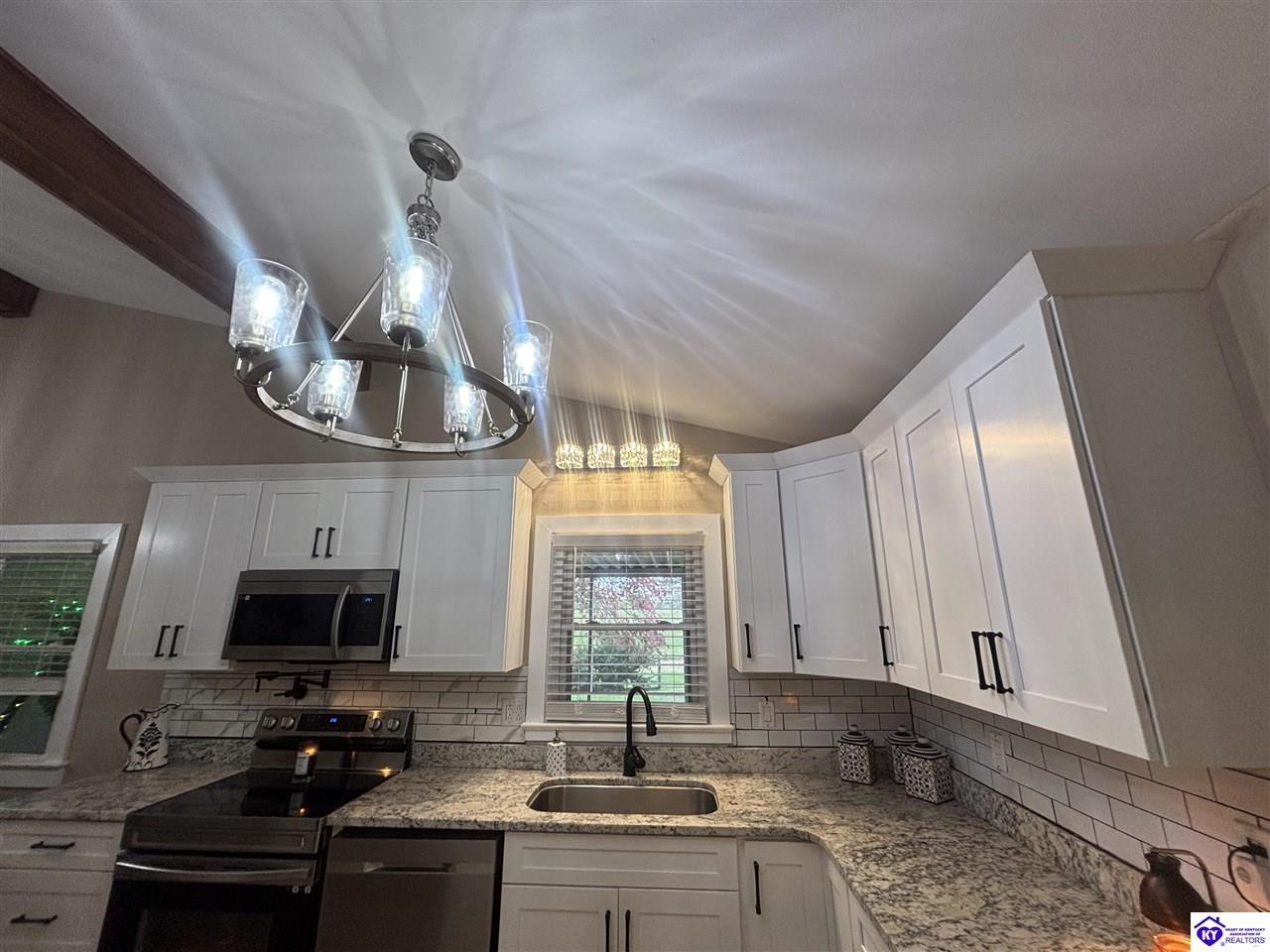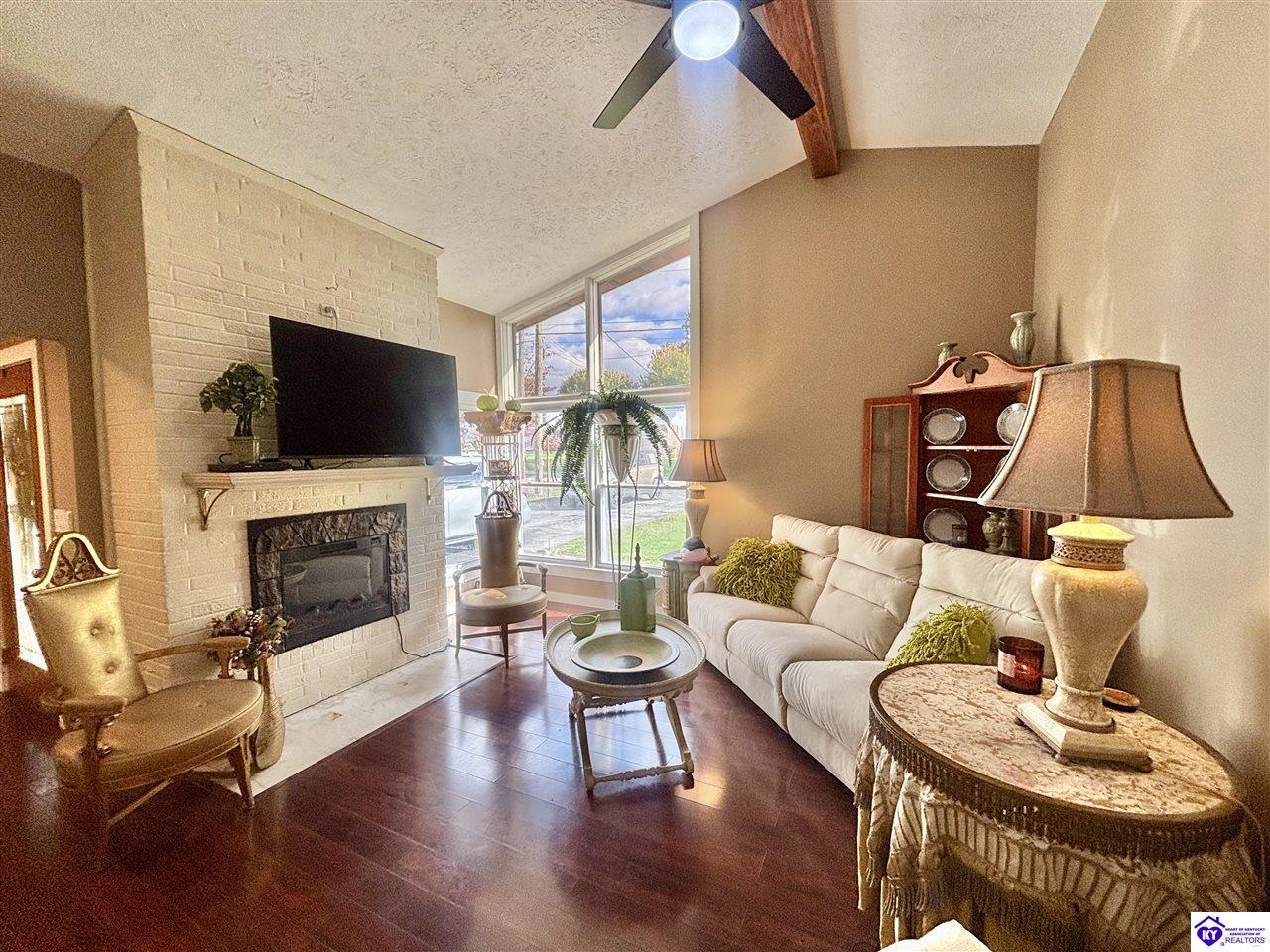 Realtor's notes: FALL IN LOVE! Seller giving a $3,000.00 allowance for landscape! This three-bedroom residence, which could easily be converted into a four-bedroom home, boasts two bathrooms and numerous impressive features. Wait until you witness the remarkable updates. The dream kitchen is a dream, complete with new granite countertops, tile backsplash, and stainless steel appliances that will remain with the property. The beautiful light fixtures are an added touch. The eat in kitchen has tall ceilings with nice beams! You will adore the bathrooms, both of which feature stunning tile work and modern, trendy showers. The main den area boasts high ceilings, beautiful beams, and an eye-catching fireplace. Imagine relaxing in the covered porch area, sipping your morning coffee or entertaining guests. The fenced backyard also features two generously sized buildings, perfect for storage or a workshop. The potential fourth bedroom offers endless possibilities, including a home gym, study, or game room. Additional features include a spacious laundry room with cabinets and a storage room for all your essential items. The backyard is truly a gem.  The shed has a workbench and shelving! GREAT LOCATION---clost to schools, parks, shopping centers, restaurants, and just a short drive from Campbellsville University! GreenRiver lake approximately 15 minute drive! Data believed to be correct, but not guaranteed. Buyer to verify data prior to offer.