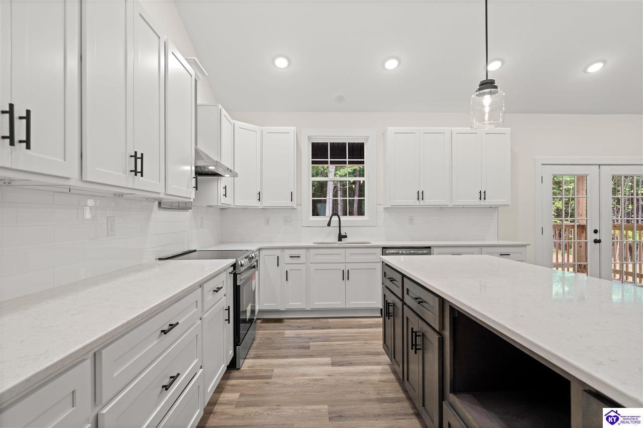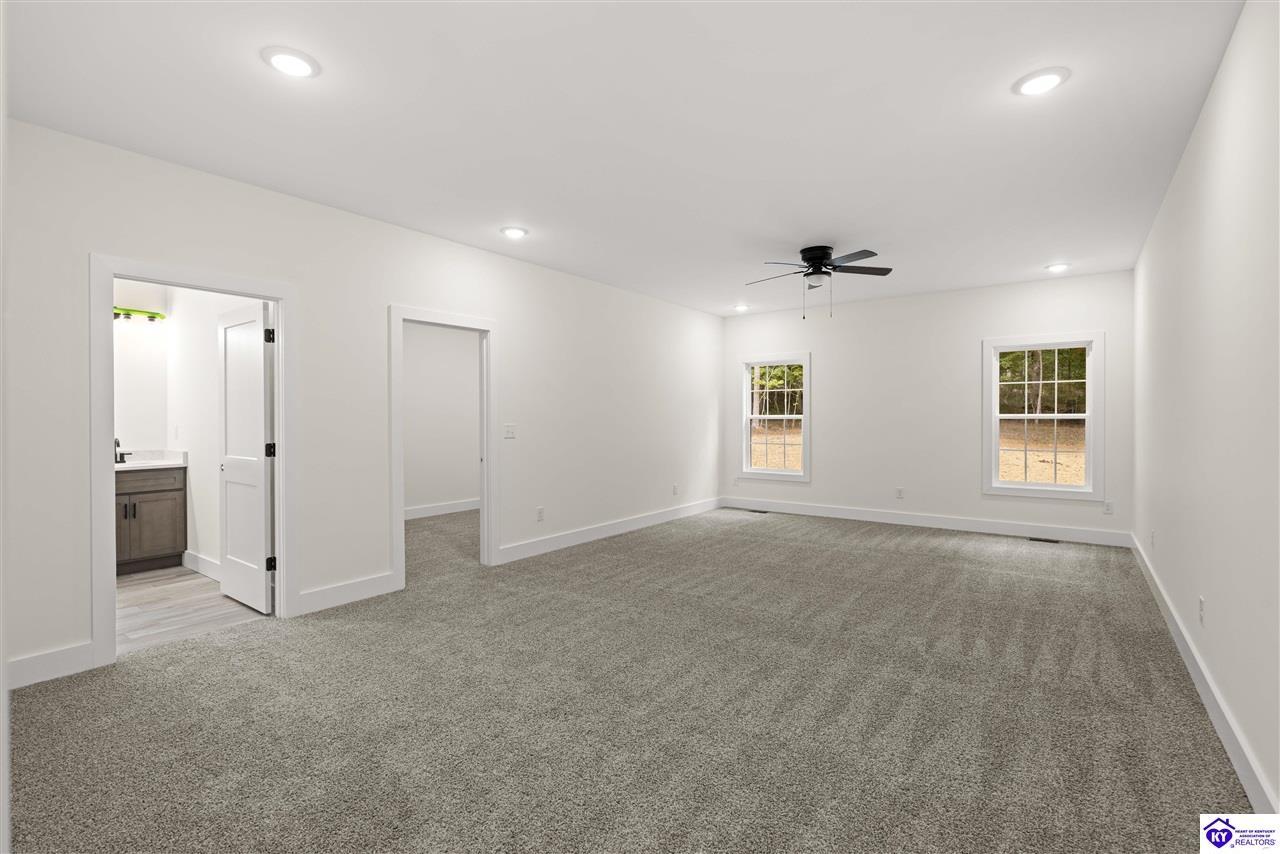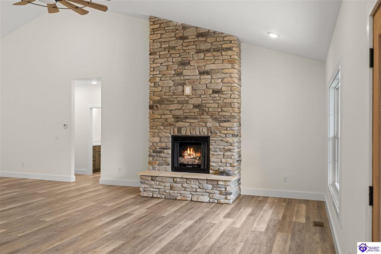 Realtor's notes: VIRTUAL TOUR AVAILABLE! Builder incentives available—seller is offering a one-year builder warranty and a rate buy-down with an acceptable offer. This brand-new home is tucked away in a private new subdivision near Fort Knox, Elizabethtown, and Brandenburg, with convenient access to Hwy 313 and I-65. Situated on over an acre—an extremely rare find for new construction in Hardin County— this property offers exceptional space, privacy, and convenience. Inside, enjoy luxury vinyl plank flooring, a cozy fireplace, and a show-stopping kitchen featuring custom cabinetry and premium finishes. The split-bedroom layout includes a private primary suite with an oversized walk-in shower, soaking tub, and spacious walk-in closet. Additional highlights include a large laundry room with ample storage, a two-car attached garage, and an impressive concrete driveway. Don’t wait—schedule your showing today!