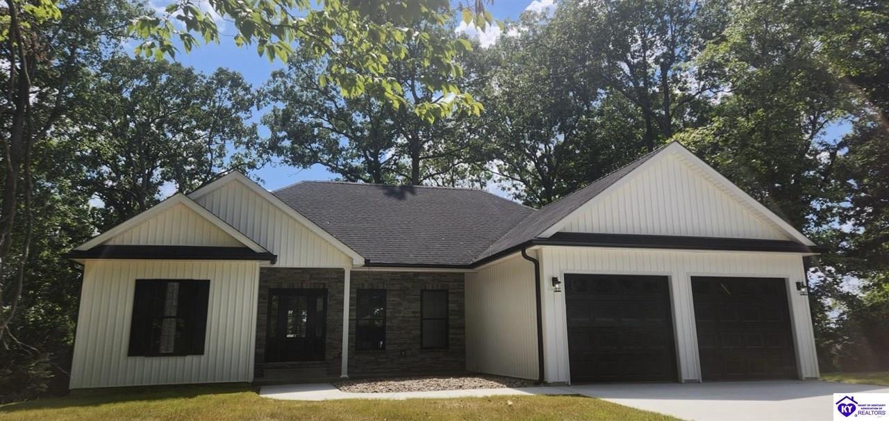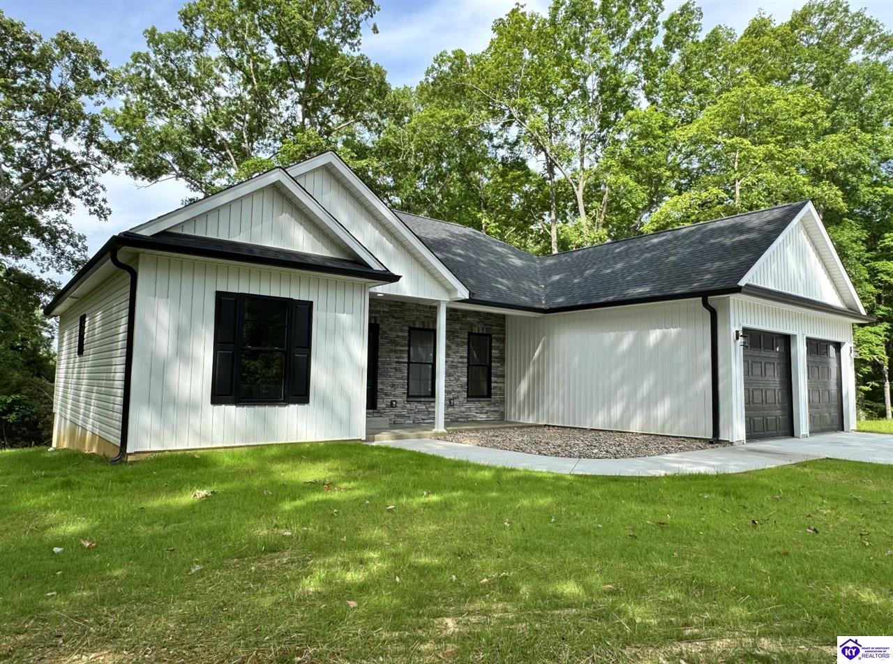 Realtor's notes: Welcome to your brand-new home in the highly sought-after gated community of Doe Valley! This beautifully crafted home offers an open-concept layout with vaulted ceilings and a light-filled living/kitchen/dining space perfect for modern living. The kitchen boasts generous cabinet and counter space—ideal for both cooking and entertaining. The spacious primary suite features a luxurious bath with a double vanity, a tiled walk-in shower, a separate soaking tub, and a large walk-in closet. Enjoy a split-bedroom floor plan for added privacy. Nestled on a quiet cul-de-sac with a flat lot, this home offers both comfort and curb appeal. Enjoy Doe Valley's resort-style amenities, including a private lake with two beaches, tennis and swim club, marina, restaurant, golf course, and more!