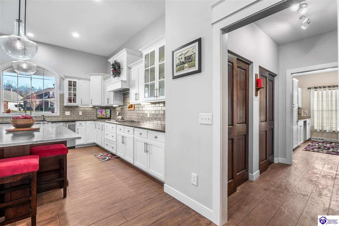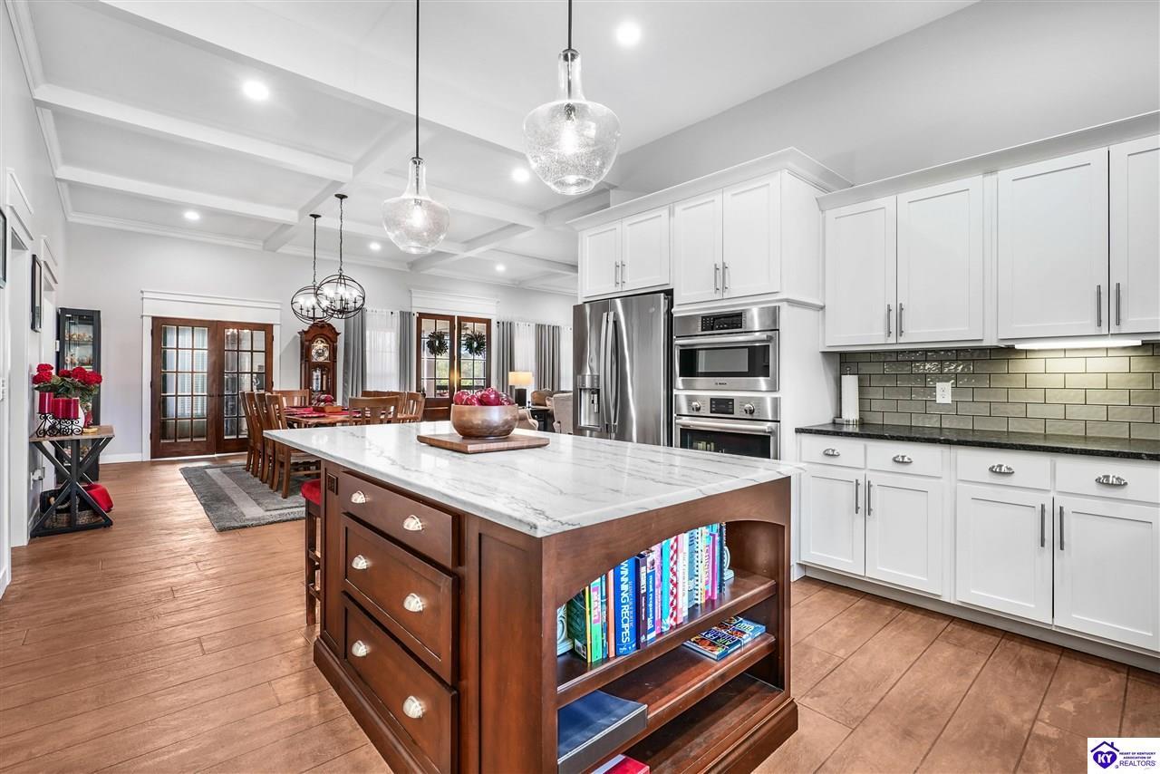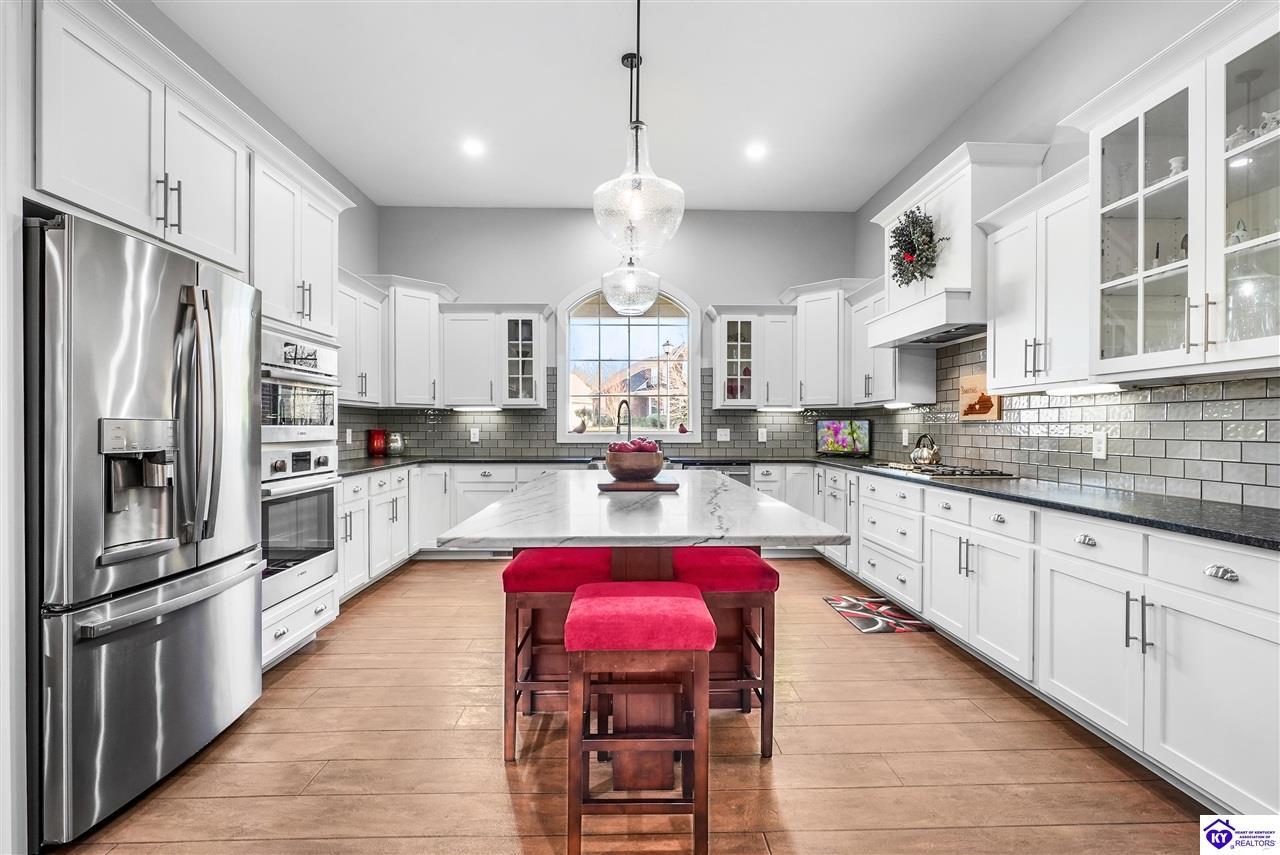 Kitchen Built In Wall Oven, Cook Top, Dishwasher, Disposal, Double Oven, Down Draft Range, Eat-In, Granite Counter Tops, Kitchen Bar, Microwave, Pantry, Range Gas, Range Hood, Refrigerator