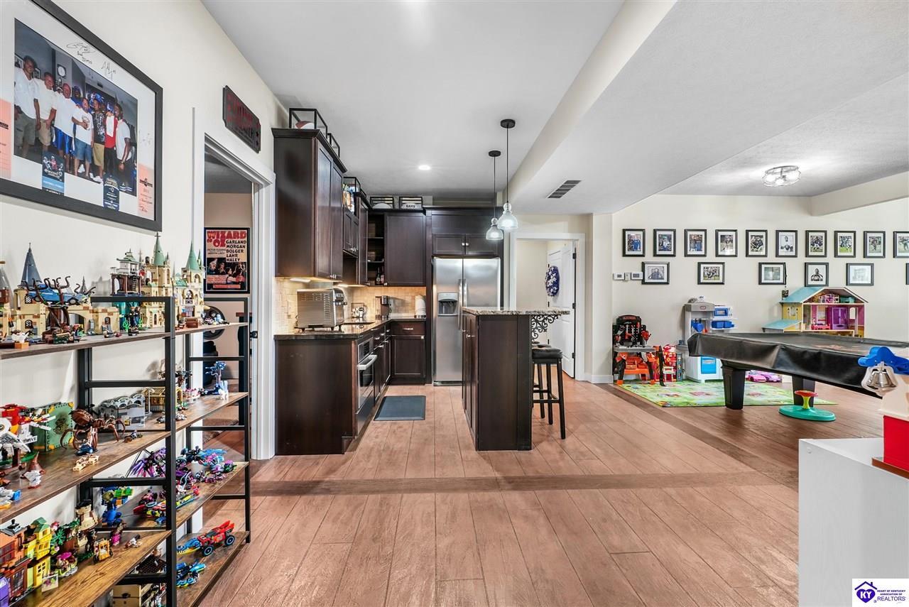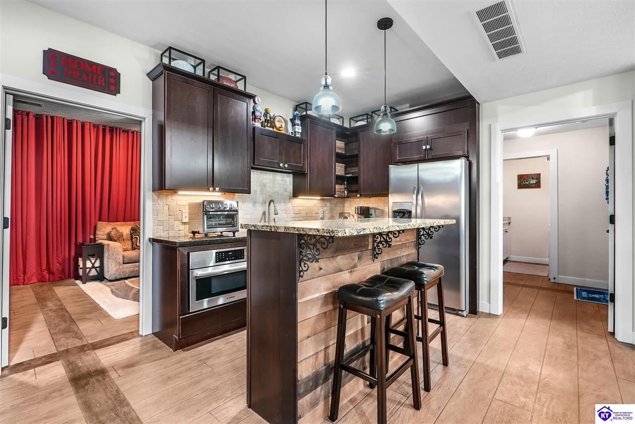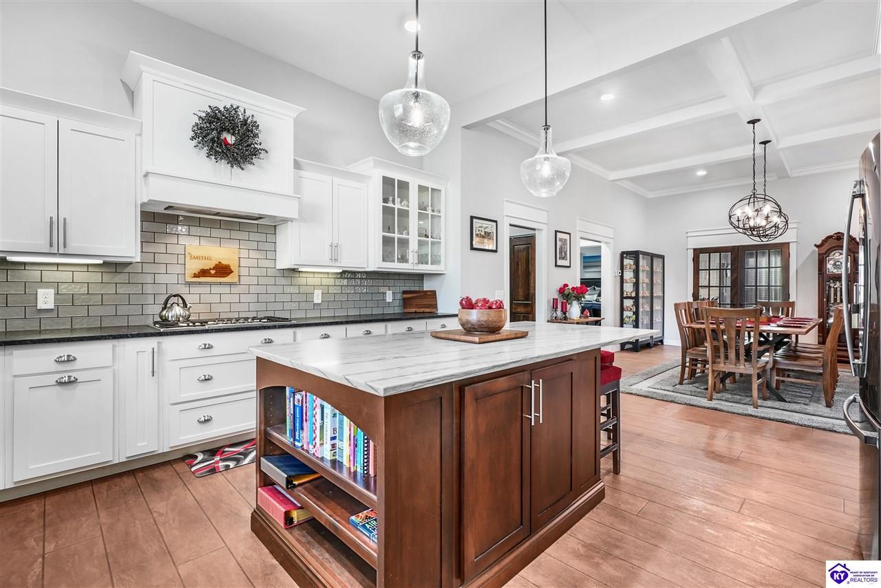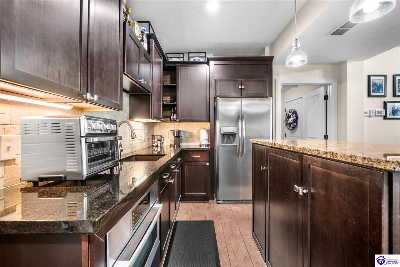 Kitchen Built In Wall Oven, Cook Top, Dishwasher, Disposal, Double Oven, Down Draft Range, Eat-In, Granite Counter Tops, Kitchen Bar, Microwave, Pantry, Range Gas, Range Hood, Refrigerator