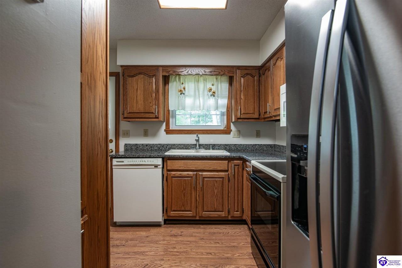 Realtor's notes: Discover the charm of this ranch-style home in Radcliff. This welcoming residence features two bedrooms filled with natural light and two bathrooms. On .69 acres, the property offers ample space for gardening, play, and relaxation. A standout feature of this home is the partially finished basement, which adds extra living space, including a family room, study, and a full bathroom, along with convenient access to the garage. Laundry hookups are available in one of the upstairs bedrooms and also in the basement. With its ideal mix of comfort and practicality, this home presents an excellent opportunity for anyone looking to settle down in a tranquil neighborhood.