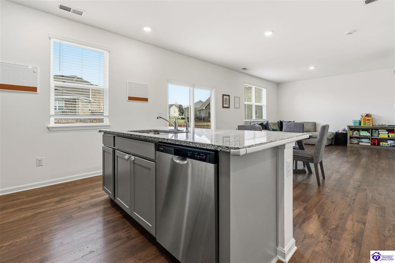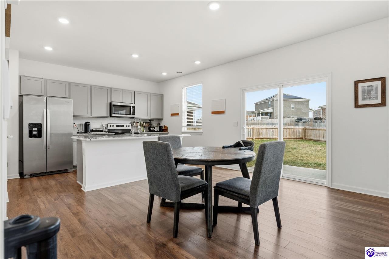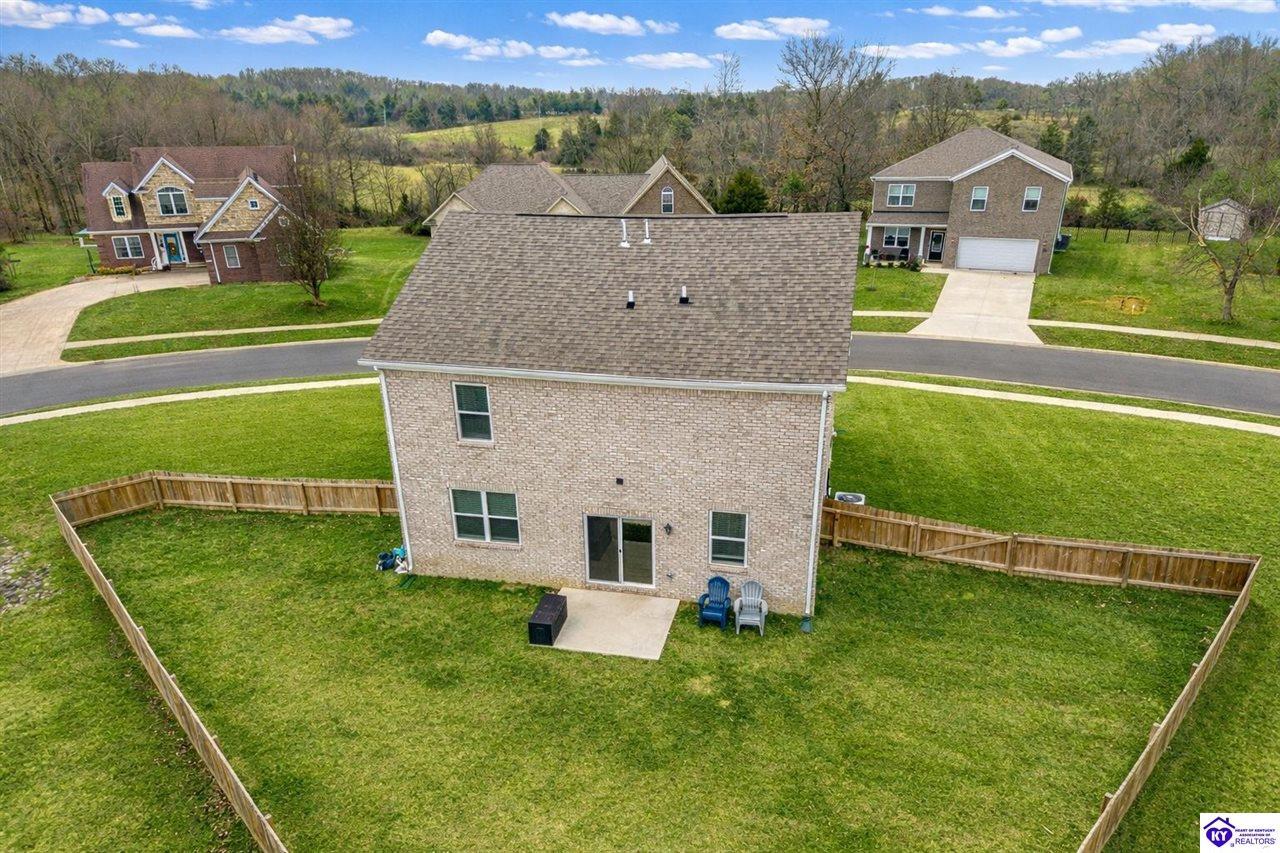 Realtor's notes: 4.99% permanent rate buydown • Est. $550+/mo savings potential • Built 2023 • 2,240 sq ft • 4 bed • 2.5 bath • Granite kitchen • 2-car garage • Fenced 0.32-acre yard Built in 2023, this well-designed home at 122 Calumet Loop (Elizabethtown postal address, convenient to Radcliff) offers 2,240 sq ft of above-grade living space with 4 bedrooms, 2 full baths, and 1 half bath on a slab foundation. The brick and vinyl exterior keeps maintenance simple, and the 2-car garage plus concrete driveway add everyday ease. Inside, tall ceilings and an open layout connect the living, dining, and kitchen areas, creating a bright flow for daily living and get-togethers. The kitchen is finished with granite countertops and ample prep space. Bedrooms are generously sized with a practical separation from the main living area, and the laundry room is located on the same level as the bedrooms for added convenience. Step out back to a fenced yard on a 0.32-acre lot with room for outdoor seating, play space, pets, and future ideas. Location is a standout, offering quick access toward Fort Knox and the surrounding Radcliff area, while still keeping Elizabethtown shopping, dining, schools, and services within easy reach. Seller offering a 4.99% permanent rate buydown for the life of the loan, subject to lender approval and terms.