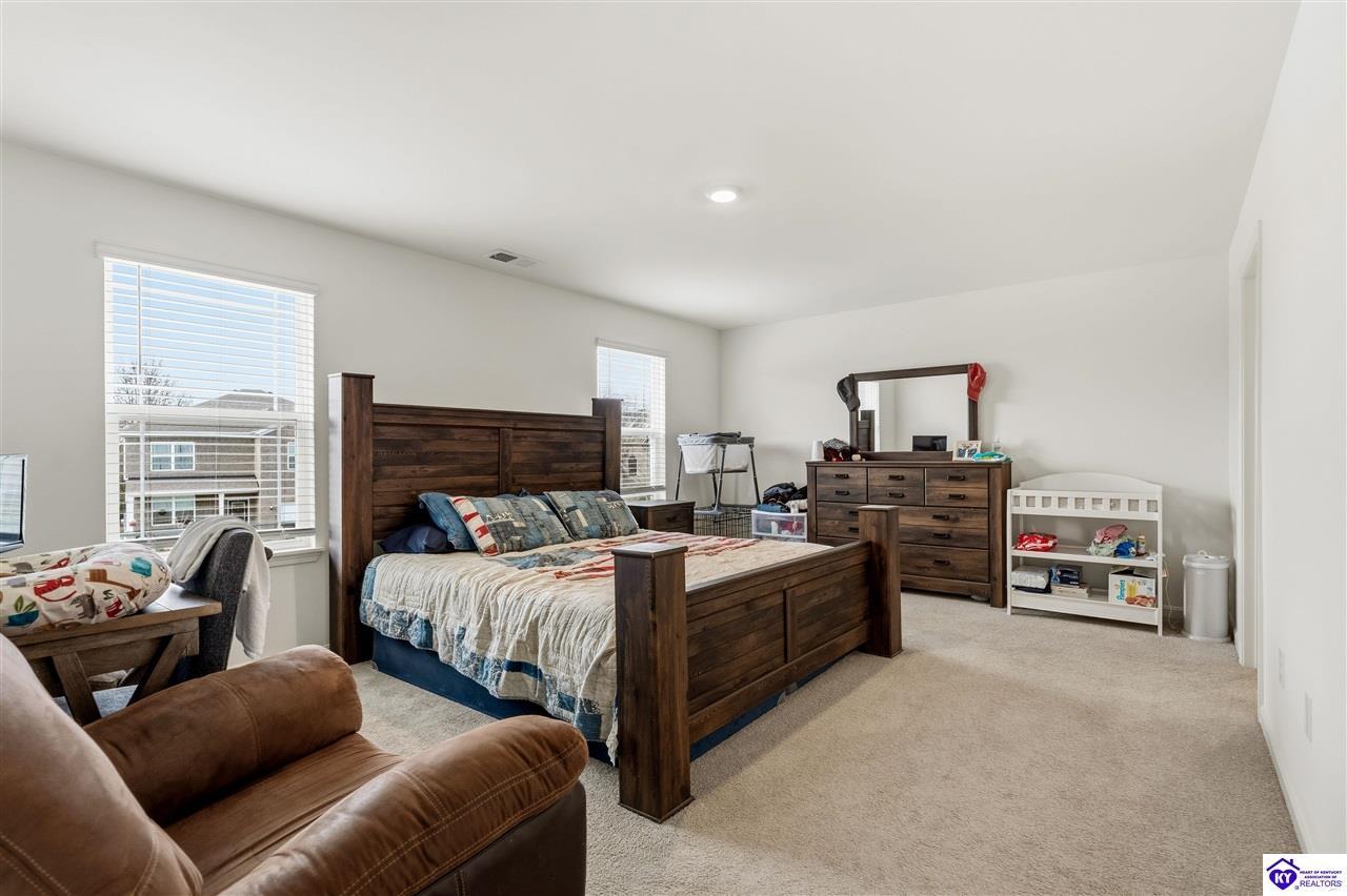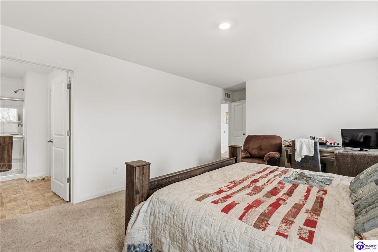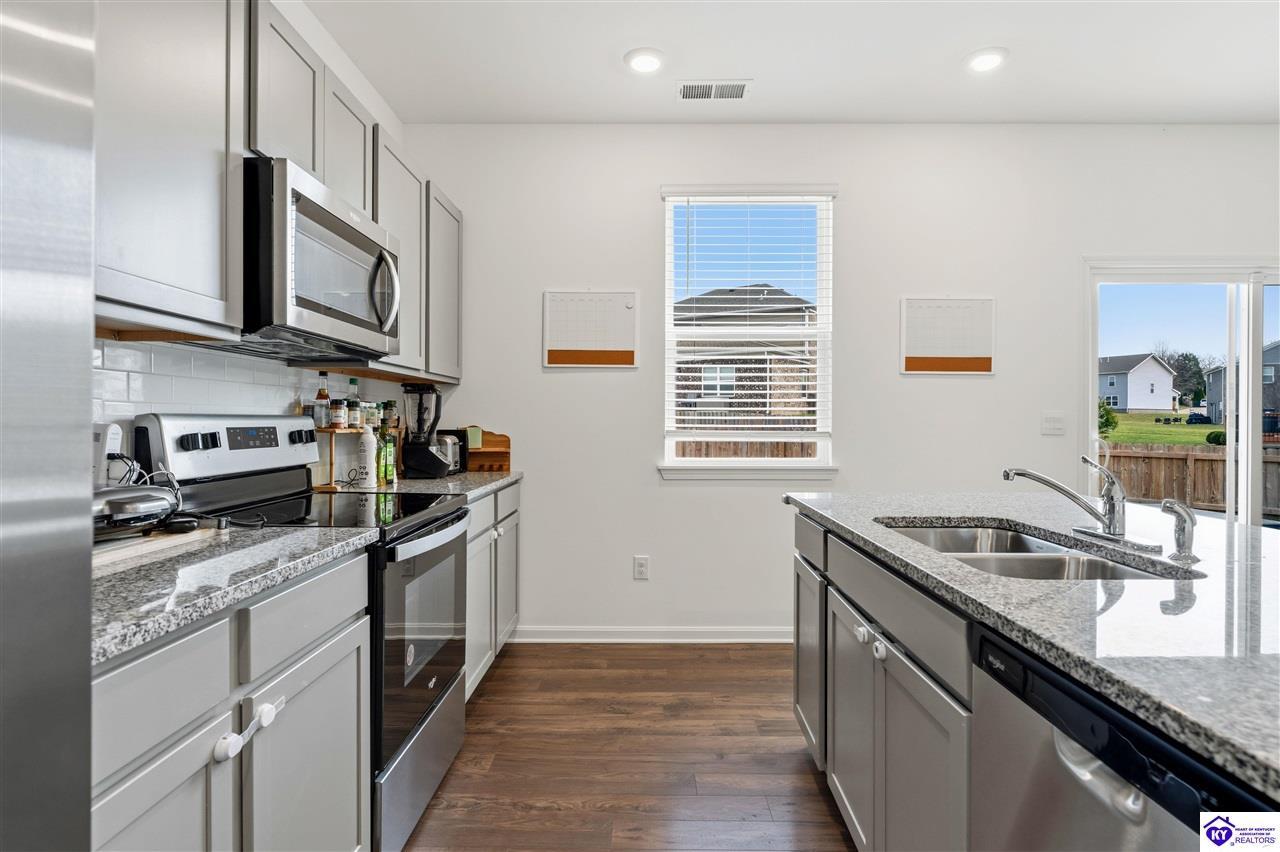 Realtor's notes: 4.99% permanent rate buydown • Est. $550+/mo savings potential • Built 2023 • 2,240 sq ft • 4 bed • 2.5 bath • Granite kitchen • 2-car garage • Fenced 0.32-acre yard Built in 2023, this well-designed home at 122 Calumet Loop (Elizabethtown postal address, convenient to Radcliff) offers 2,240 sq ft of above-grade living space with 4 bedrooms, 2 full baths, and 1 half bath on a slab foundation. The brick and vinyl exterior keeps maintenance simple, and the 2-car garage plus concrete driveway add everyday ease. Inside, tall ceilings and an open layout connect the living, dining, and kitchen areas, creating a bright flow for daily living and get-togethers. The kitchen is finished with granite countertops and ample prep space. Bedrooms are generously sized with a practical separation from the main living area, and the laundry room is located on the same level as the bedrooms for added convenience. Step out back to a fenced yard on a 0.32-acre lot with room for outdoor seating, play space, pets, and future ideas. Location is a standout, offering quick access toward Fort Knox and the surrounding Radcliff area, while still keeping Elizabethtown shopping, dining, schools, and services within easy reach. Seller offering a 4.99% permanent rate buydown for the life of the loan, subject to lender approval and terms.