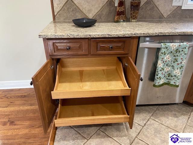 Kitchen Dishwasher, Disposal, Granite Counter Tops, Microwave, Pantry, Range/Oven, Range Electric, Refrigerator, Self-Cleaning Oven, Smooth Top Range