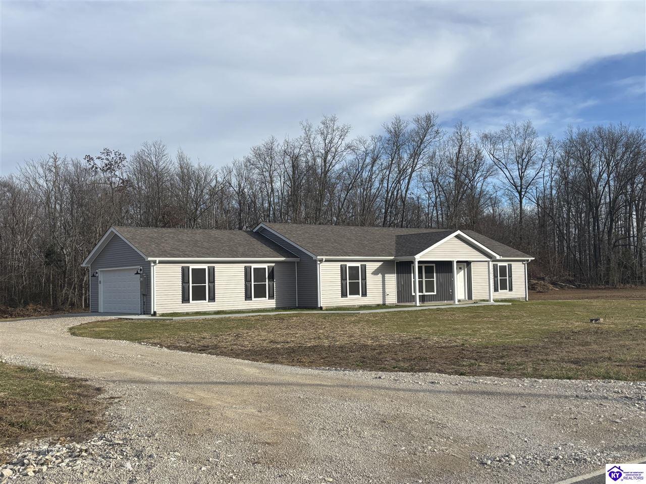 Realtor's notes: Discover the perfect blend of comfort and space in this new construction 3-bedroom, 2-bath ranch situated on a 1.81-acre lot. The home features an open-concept layout with a bright and inviting living area, a well-appointed kitchen, and a comfortable dining space, all designed with modern living in mind. The spacious primary suite offers a private en-suite bath, while two additional bedrooms provide ample space for family or guests. An attached 2-car garage adds everyday convenience, and the expansive lot offers plenty of room for outdoor activities, gardening, or future expansion. Enjoy the peace and privacy of country-style living while remaining within reach of modern amenities. A must-see for those seeking brand-new construction, space, comfort, and charm.