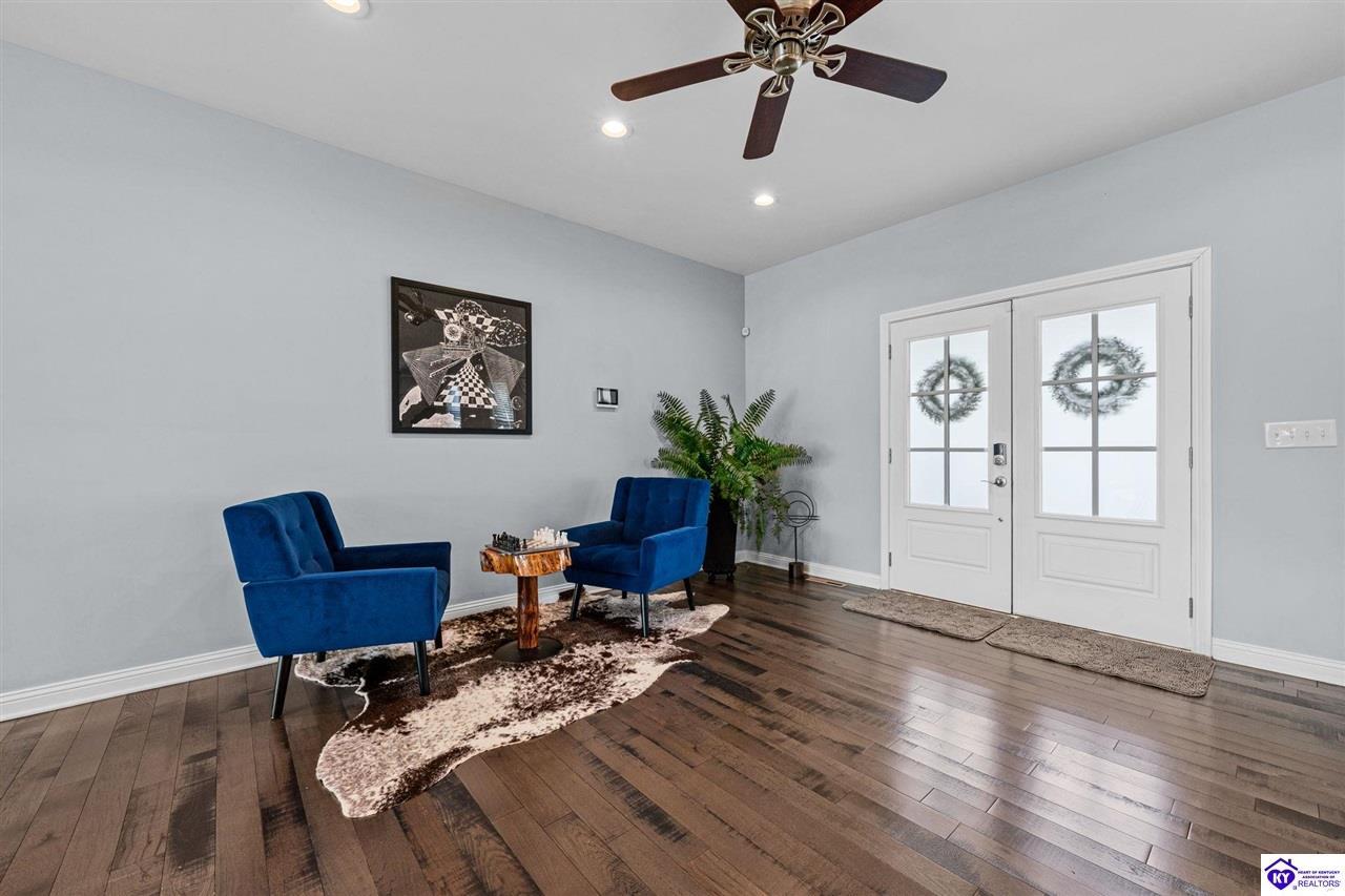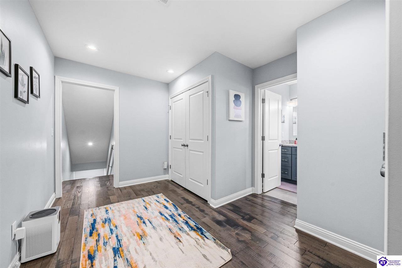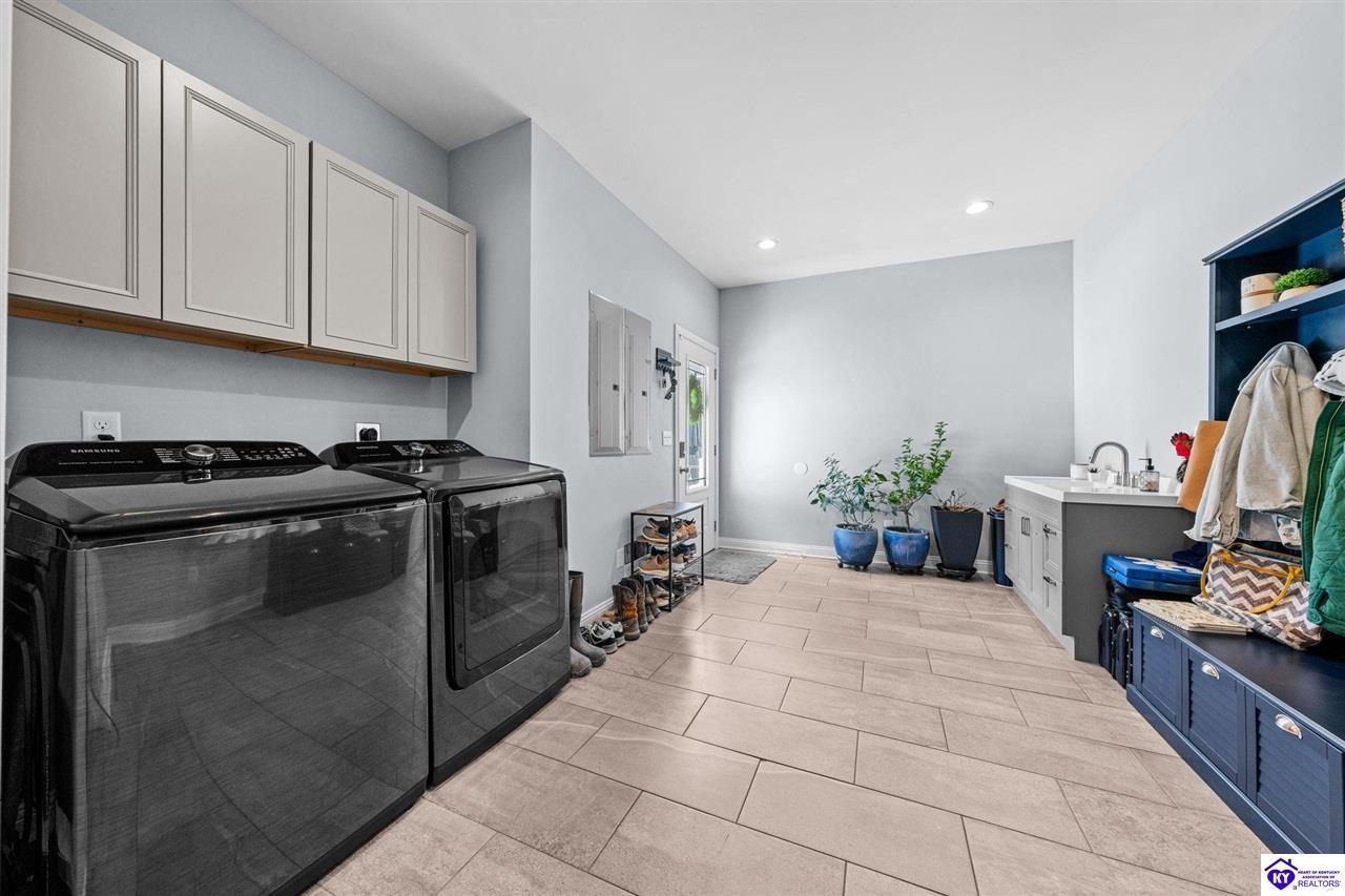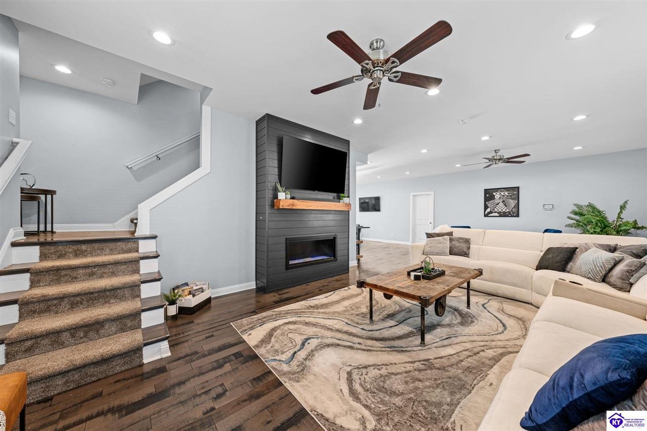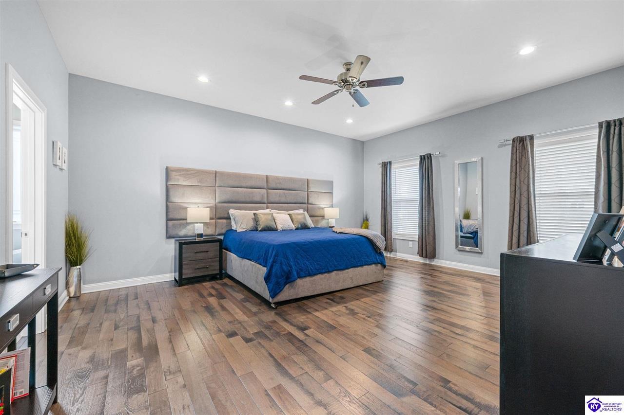 Realtor's notes: Chic modern design meets exceptional outdoor living in this beautifully remodeled home, where large windows frame sweeping views of the custom in-ground pool by Dixie Yard Works, multiple outdoor patios, and the striking pool house. Situated on a desirable corner lot within walking distance of downtown Elizabethtown, the home is filled with natural light, soaring ceilings, and hardwood floors that flow effortlessly throughout, creating a bright and welcoming atmosphere ideal for both everyday living and entertaining. The open-concept layout centers around a gourmet kitchen with granite countertops, high-end appliances, and stylish cabinetry, seamlessly connecting the kitchen, dining, and living areas. The primary suite offers a true retreat with a spa-inspired bathroom featuring modern finishes, a soaking tub, and a tiled walk-in shower with multiple shower heads. Thoughtfully designed for functionality, the home includes laundry rooms on both the main and second levels, along with a dedicated office, large mudroom, Jack-and-Jill bathroom, and a third-level flex space that adapts easily to your needs. Outdoor living truly sets this home apart. Enjoy summer days by the sparkling custom pool or unwind in the private pool house, complete with sleek glass garage doors, a bar area, and flexible space for a game room or fitness studio. The exterior is equally impressive with a covered patio featuring wood ceiling details, custom hardscaping, and an expansive front porch, making this exceptional property a rare opportunity in a prime location.