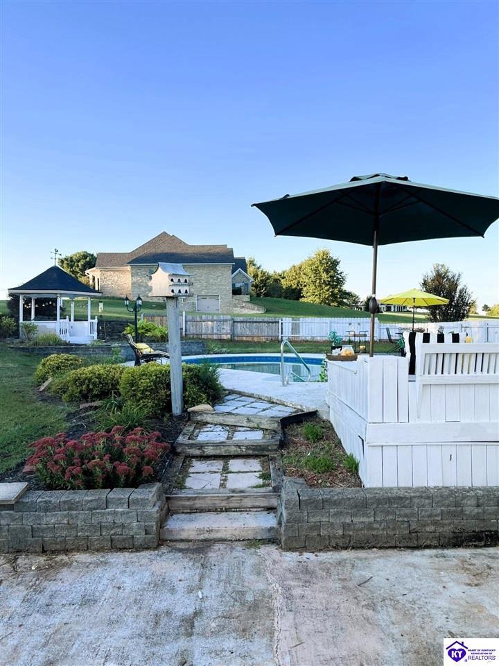 Realtor's notes: Welcome to your dream escape! Nestled in a serene country setting yet conveniently close to town, this stunning 4-bedroom, 2-bathroom abode offers 2,430 sqft of luxurious living space. Revel in breathtaking views while enjoying the comfort of two charming brick fireplaces with cozy propane logs. Entertain effortlessly in the expansive, fenced-in area complete with an in-ground pool and a picturesque gazebo. The 12x13 all-season nook, with its own heating and air system, provides a perfect retreat year-round. With a large outbuilding and delight in the meticulously landscaped backyard oasis. This property is not just a home, it's a lifestyle. Experience country living at its finest. This is a must-see!