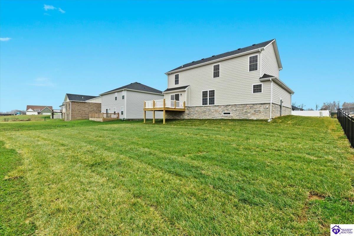 Realtor's notes: Discover exceptional new construction living in Elizabethtown, Kentucky, located in the highly sought-after Summit Creek subdivision. Built by a distinguished local builder, this move-in ready luxury home offers modern design, quality craftsmanship, and future expansion potential—all just minutes from Patriot Parkway. Step inside to an inviting open-concept floor plan designed for both everyday living and entertaining. The spacious main living area flows seamlessly into a true chef’s kitchen, featuring granite countertops, high-end cabinetry, premium fixtures, and modern lighting. Hardwood flooring enhances the main living spaces, while plush carpeted bedrooms add warmth and comfort throughout. This home offers spacious bedrooms with walk-in closets, providing the storage and privacy today’s buyers expect from a new construction home. The massive primary suite is a standout feature, complete with tray ceilings, custom tile, and dual walk-in closets, creating a private retreat. The unfinished basement delivers outstanding flexibility and long-term value. Whether you envision additional bedrooms, a home theater, fitness room, office, or expansive recreation space, this lower level is ready for your custom vision and future growth. Outside, enjoy a beautiful backyard ideal for outdoor living, entertaining, pets, or play. Summit Creek offers a quiet neighborhood setting while remaining close to everything Elizabethtown has to offer. Prime Elizabethtown KY Location: Conveniently located near local schools, shopping, dining, medical facilities, and recreation, with easy access to Fort Knox, Glendale / BlueOval SK, and major employers via Patriot Parkway—making this home ideal for commuters and growing households alike. Key Features: Luxury new construction home in Summit Creek Open-concept main level for living and entertaining Chef’s kitchen with granite countertops and premium finishes Hardwood flooring in main areas + plush carpeted bedrooms Dual-zone climate control with two HVAC units Spacious bedrooms with walk-in closets Massive primary suite with tray ceilings, custom tile & double walk-ins Unfinished basement with expansion potential (bedrooms, theater, gym, rec room) Beautiful backyard for outdoor enjoyment Quick access to Patriot Parkway, schools, shopping & dining Don’t miss your opportunity to own one of Elizabethtown’s newest and most desirable homes. Schedule your private showing today and experience 605 Ashwood Ave in Summit Creek for yourself.