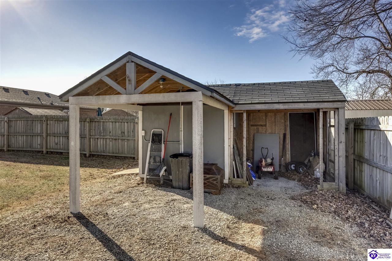 Exterior Covered Front Porch, Storage Shed