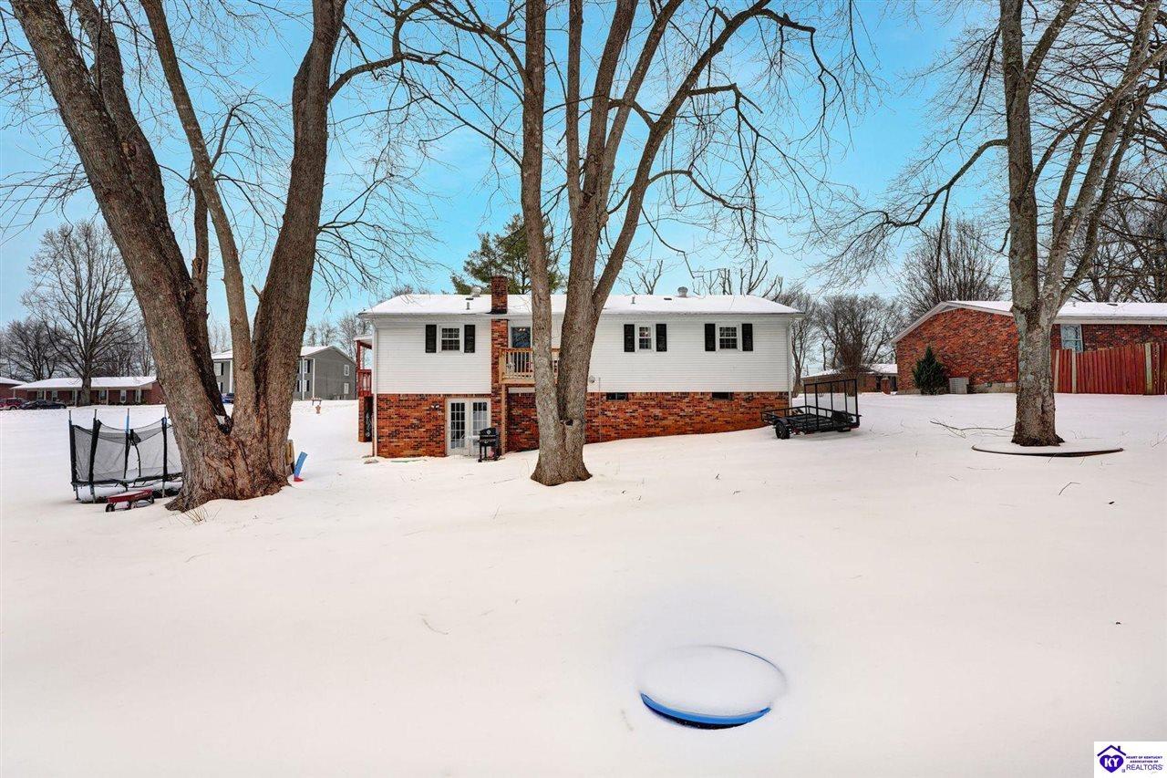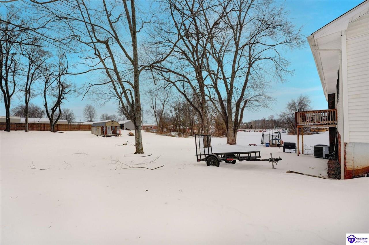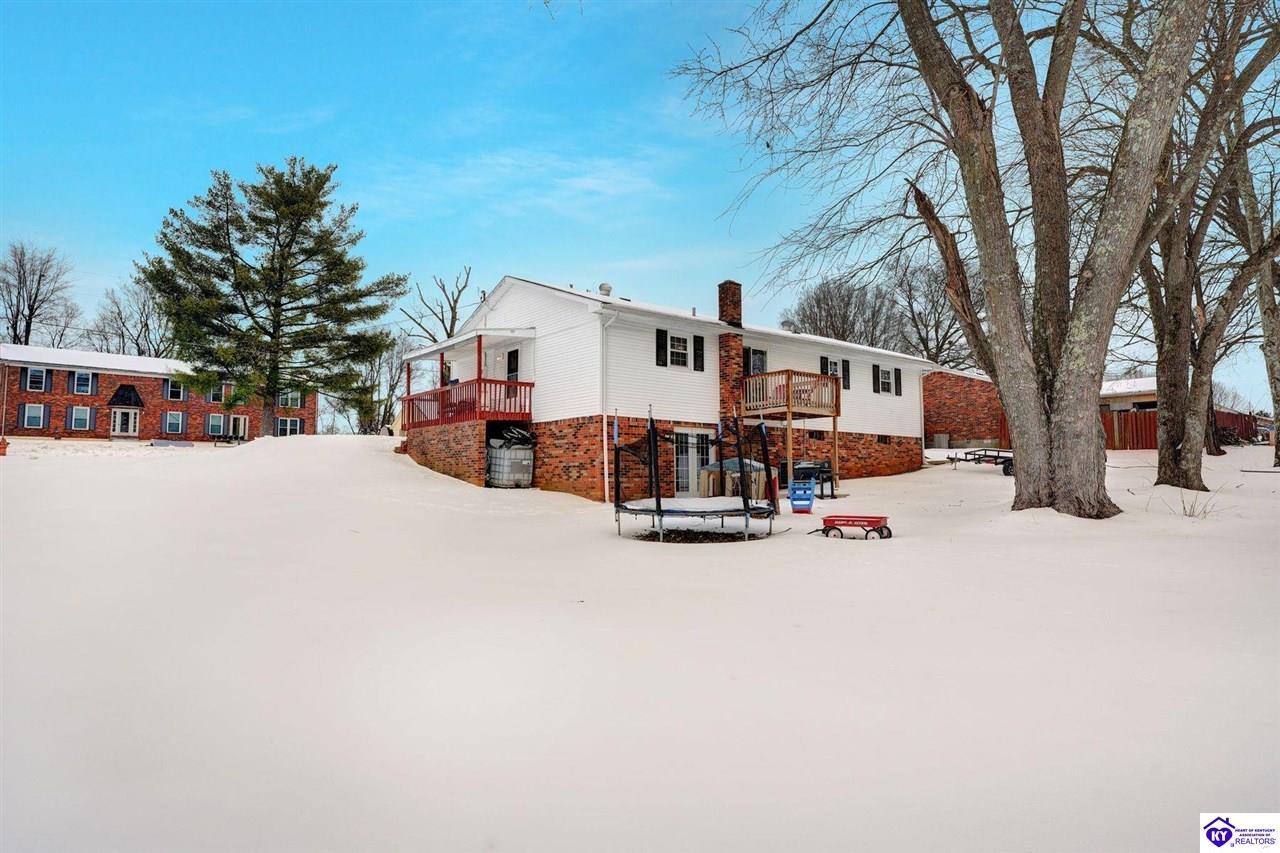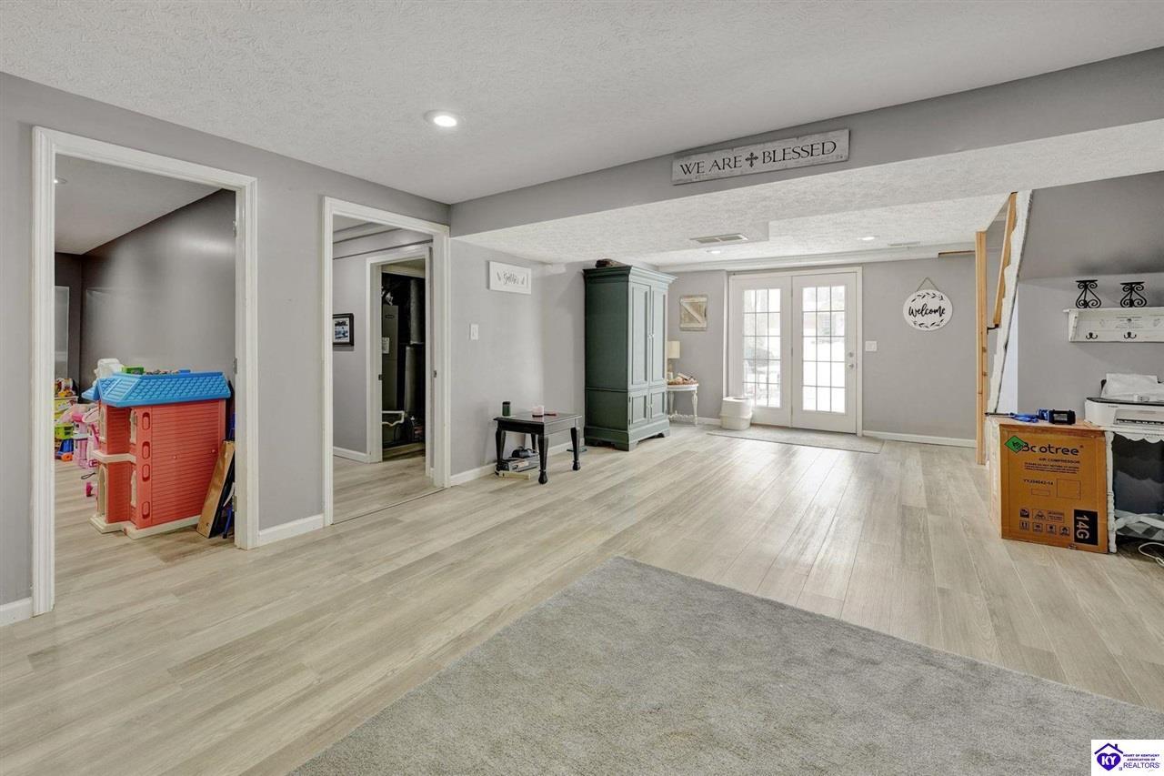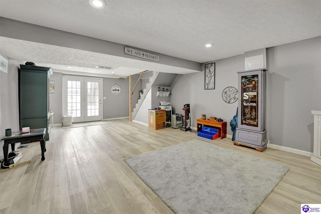 Realtor's notes: Do not miss the opportunity to call this place home, this spacious 3-bedroom, 3-bath home offering laminate flooring throughout with a fully finished basement. From the covered side porch, step into the inviting eat-in kitchen featuring a pantry that can also function as a main-level laundry space. The kitchen opens seamlessly to the family room, creating a comfortable layout for everyday living and entertaining. Down the hall, you’ll find an updated full bathroom and three bedrooms, including a generously sized primary bedroom with its own private bath. That's not all, the finished basement adds incredible versatility, perfect for guests, hobbies, or additional living space with a large great room, two non-conforming bedrooms , a playroom, a full bath, and a dedicated laundry room. The French doors lead out to the patio overlooking a large backyard complete with a storage shed. Schedule your showing today and come see all this home has to offer in desirable Bardstown!