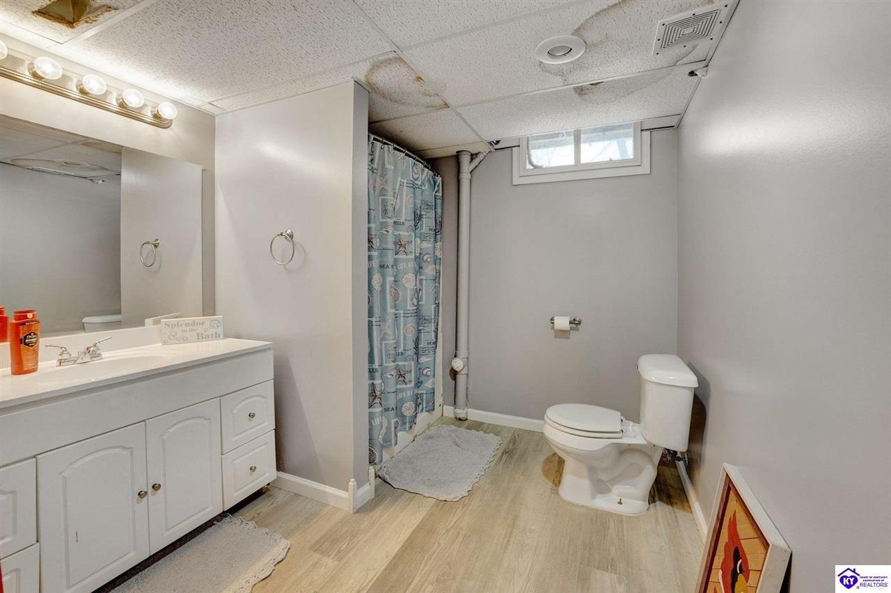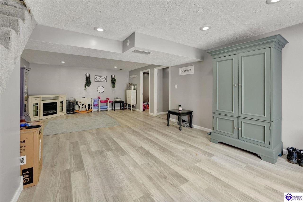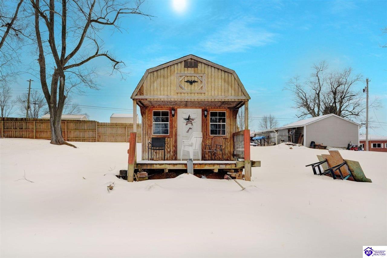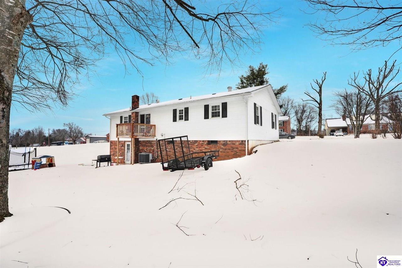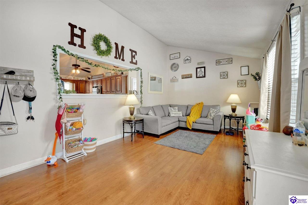 Realtor's notes: Do not miss the opportunity to call this place home, this spacious 3-bedroom, 3-bath home offering laminate flooring throughout with a fully finished basement. From the covered side porch, step into the inviting eat-in kitchen featuring a pantry that can also function as a main-level laundry space. The kitchen opens seamlessly to the family room, creating a comfortable layout for everyday living and entertaining. Down the hall, you’ll find an updated full bathroom and three bedrooms, including a generously sized primary bedroom with its own private bath. That's not all, the finished basement adds incredible versatility, perfect for guests, hobbies, or additional living space with a large great room, two non-conforming bedrooms , a playroom, a full bath, and a dedicated laundry room. The French doors lead out to the patio overlooking a large backyard complete with a storage shed. Schedule your showing today and come see all this home has to offer in desirable Bardstown!