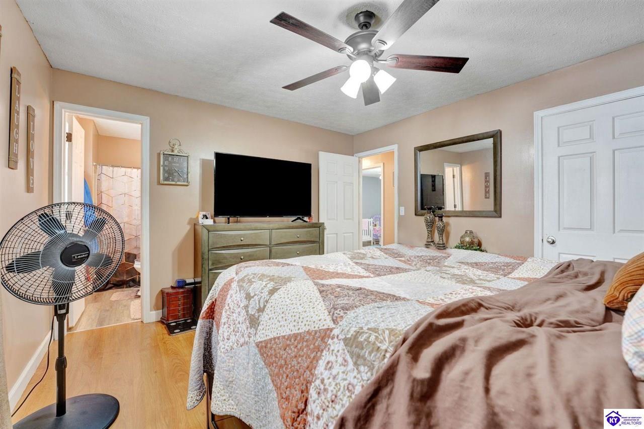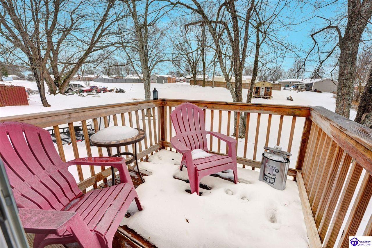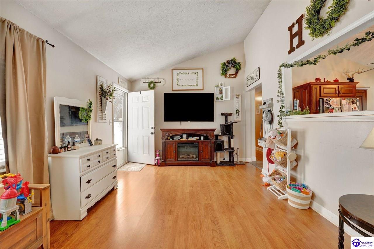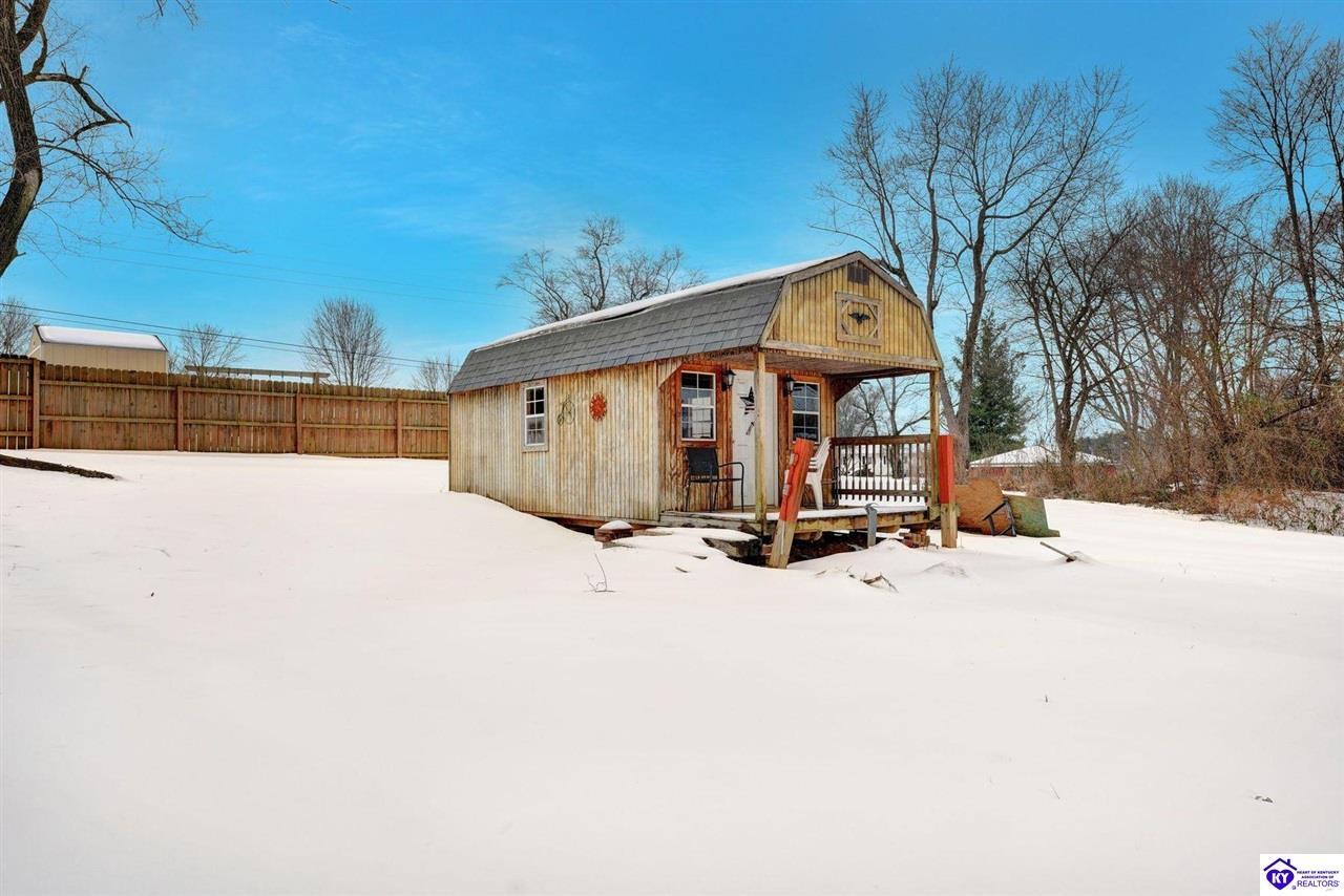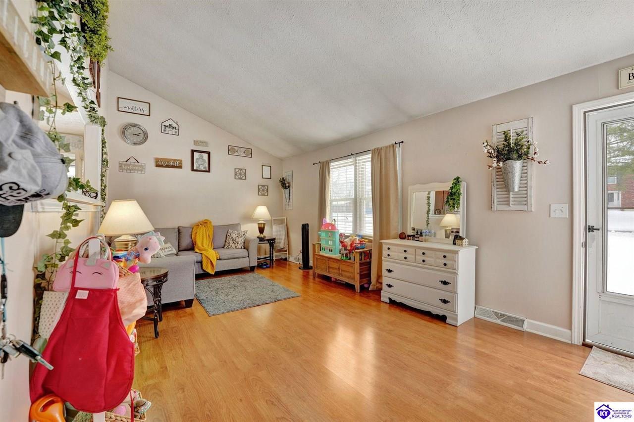 Realtor's notes: Do not miss the opportunity to call this place home, this spacious 3-bedroom, 3-bath home offering laminate flooring throughout with a fully finished basement. From the covered side porch, step into the inviting eat-in kitchen featuring a pantry that can also function as a main-level laundry space. The kitchen opens seamlessly to the family room, creating a comfortable layout for everyday living and entertaining. Down the hall, you’ll find an updated full bathroom and three bedrooms, including a generously sized primary bedroom with its own private bath. That's not all, the finished basement adds incredible versatility, perfect for guests, hobbies, or additional living space with a large great room, two non-conforming bedrooms , a playroom, a full bath, and a dedicated laundry room. The French doors lead out to the patio overlooking a large backyard complete with a storage shed. Schedule your showing today and come see all this home has to offer in desirable Bardstown!
