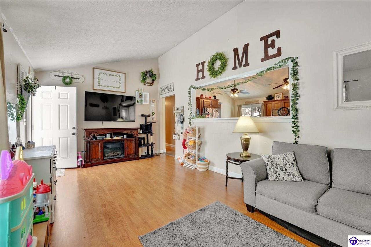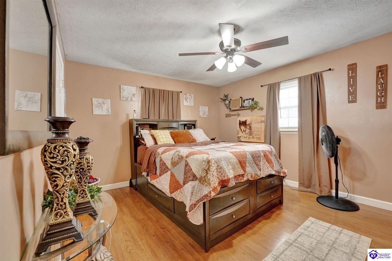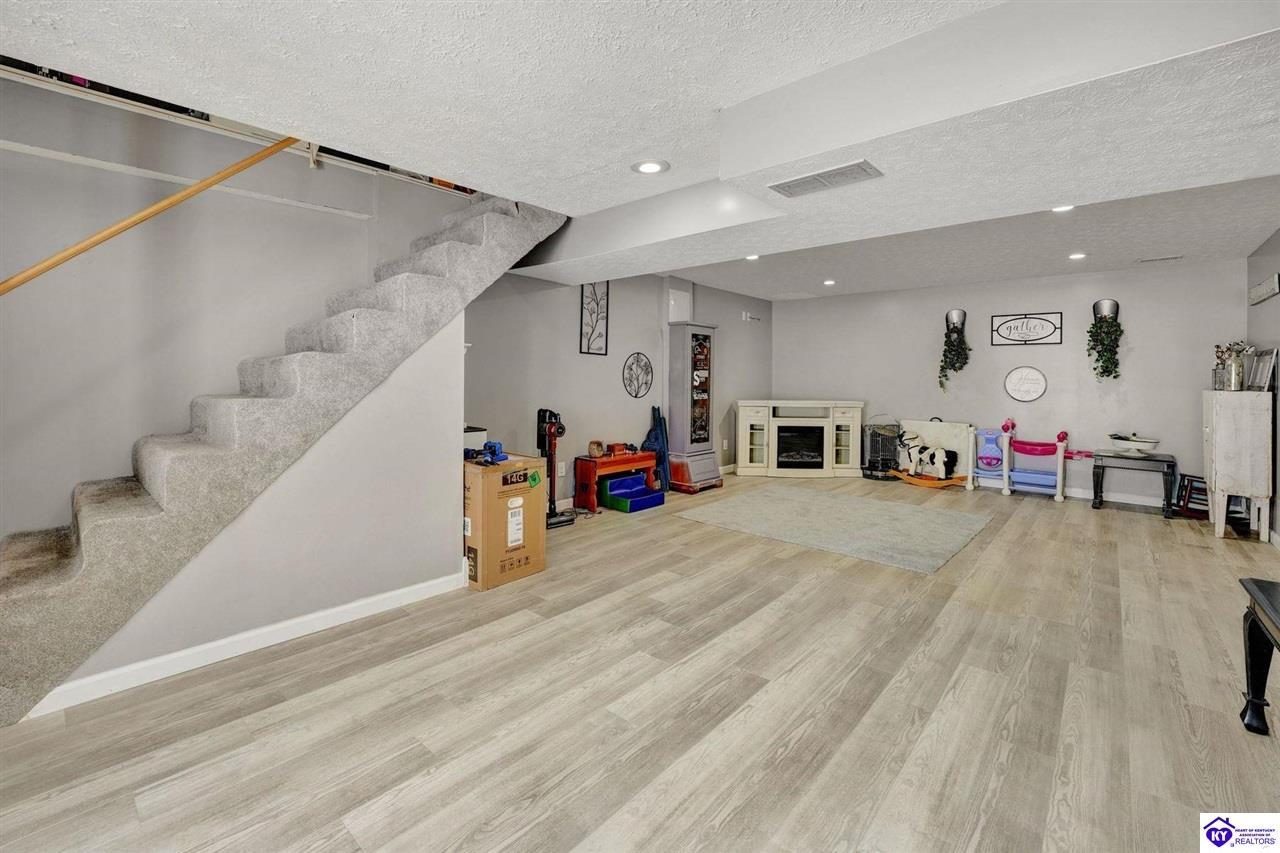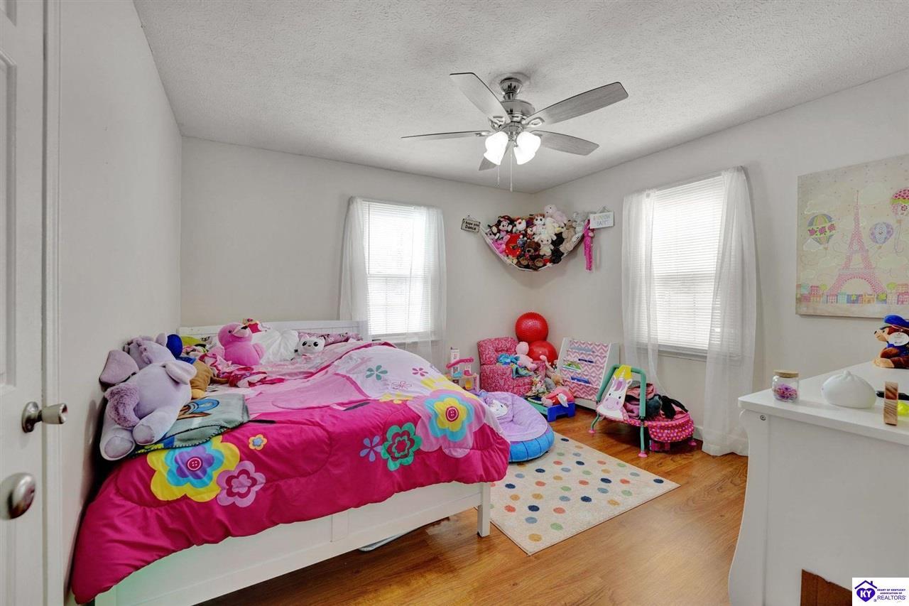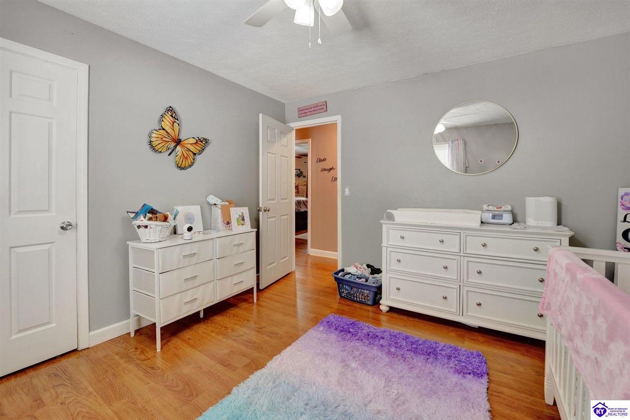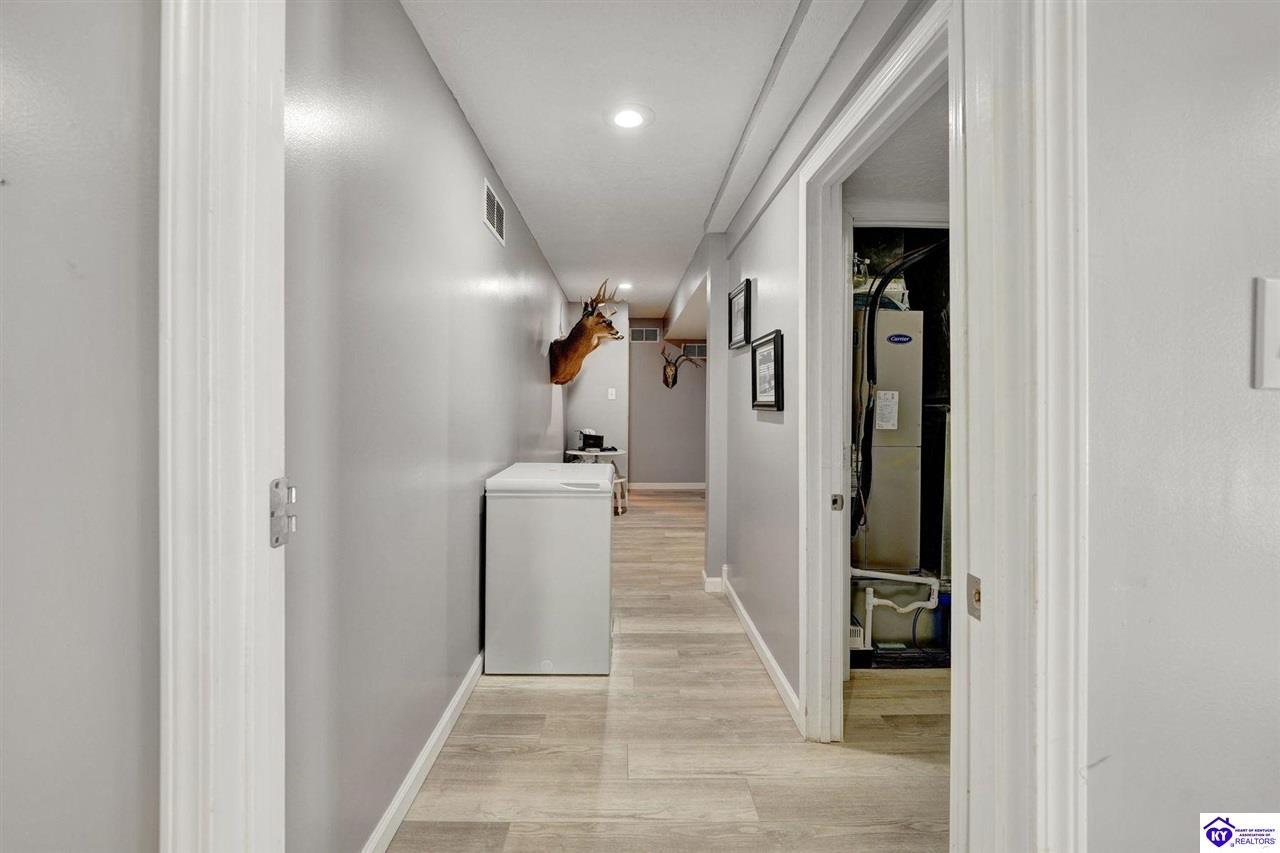 Realtor's notes: Do not miss the opportunity to call this place home, this spacious 3-bedroom, 3-bath home offering laminate flooring throughout with a fully finished basement. From the covered side porch, step into the inviting eat-in kitchen featuring a pantry that can also function as a main-level laundry space. The kitchen opens seamlessly to the family room, creating a comfortable layout for everyday living and entertaining. Down the hall, you’ll find an updated full bathroom and three bedrooms, including a generously sized primary bedroom with its own private bath. That's not all, the finished basement adds incredible versatility, perfect for guests, hobbies, or additional living space with a large great room, two non-conforming bedrooms , a playroom, a full bath, and a dedicated laundry room. The French doors lead out to the patio overlooking a large backyard complete with a storage shed. Schedule your showing today and come see all this home has to offer in desirable Bardstown!