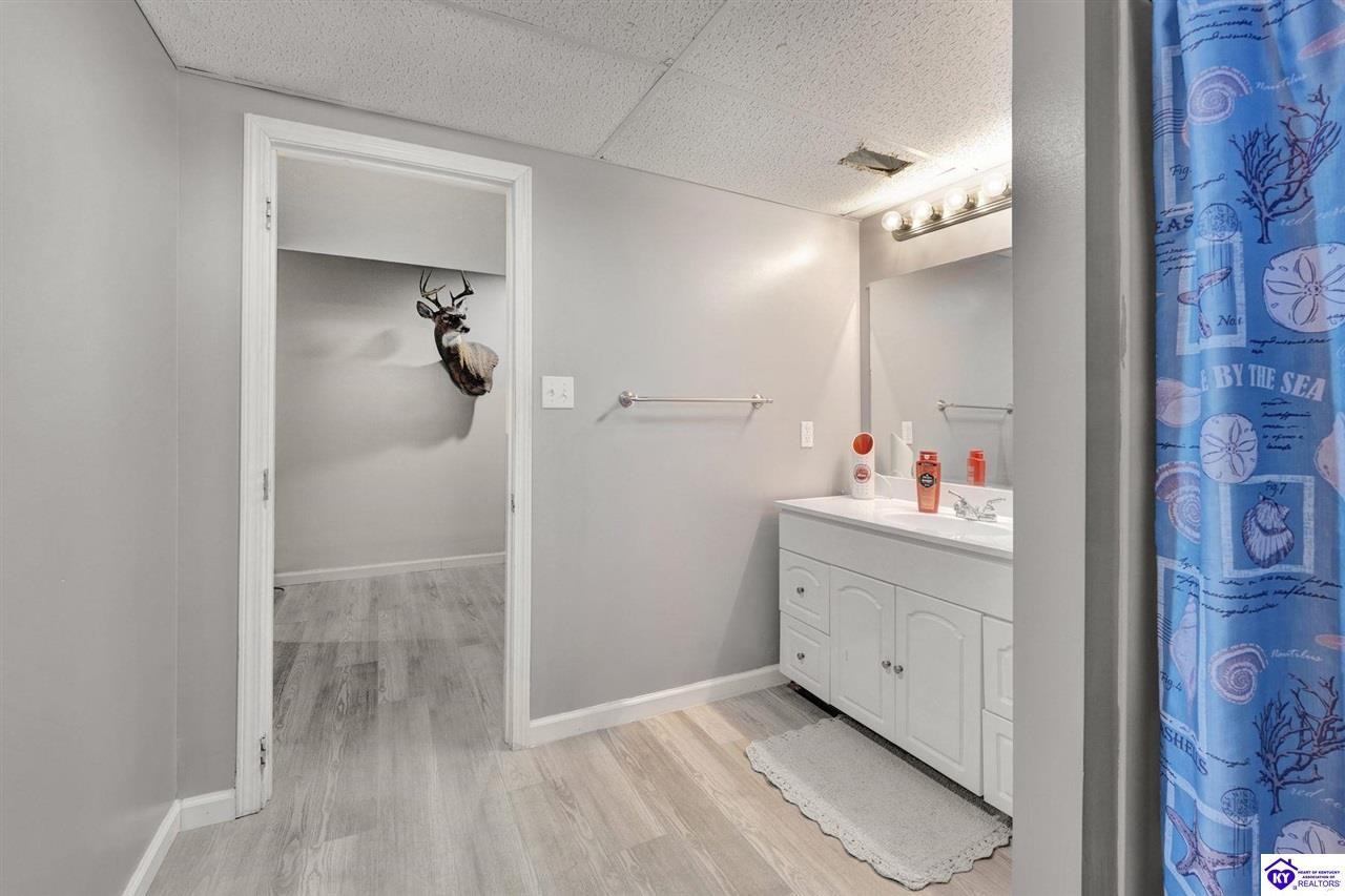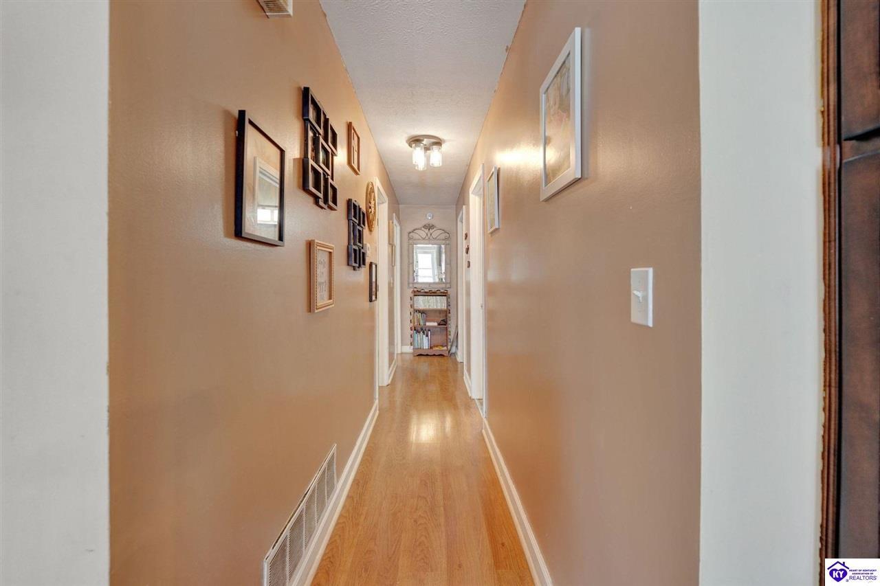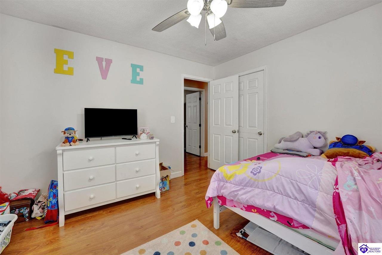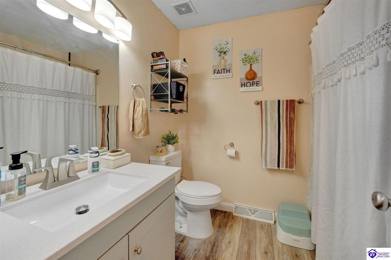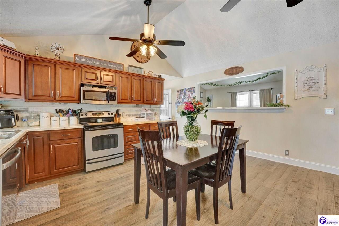 Realtor's notes: Do not miss the opportunity to call this place home, this spacious 3-bedroom, 3-bath home offering laminate flooring throughout with a fully finished basement. From the covered side porch, step into the inviting eat-in kitchen featuring a pantry that can also function as a main-level laundry space. The kitchen opens seamlessly to the family room, creating a comfortable layout for everyday living and entertaining. Down the hall, you’ll find an updated full bathroom and three bedrooms, including a generously sized primary bedroom with its own private bath. That's not all, the finished basement adds incredible versatility, perfect for guests, hobbies, or additional living space with a large great room, two non-conforming bedrooms , a playroom, a full bath, and a dedicated laundry room. The French doors lead out to the patio overlooking a large backyard complete with a storage shed. Schedule your showing today and come see all this home has to offer in desirable Bardstown!