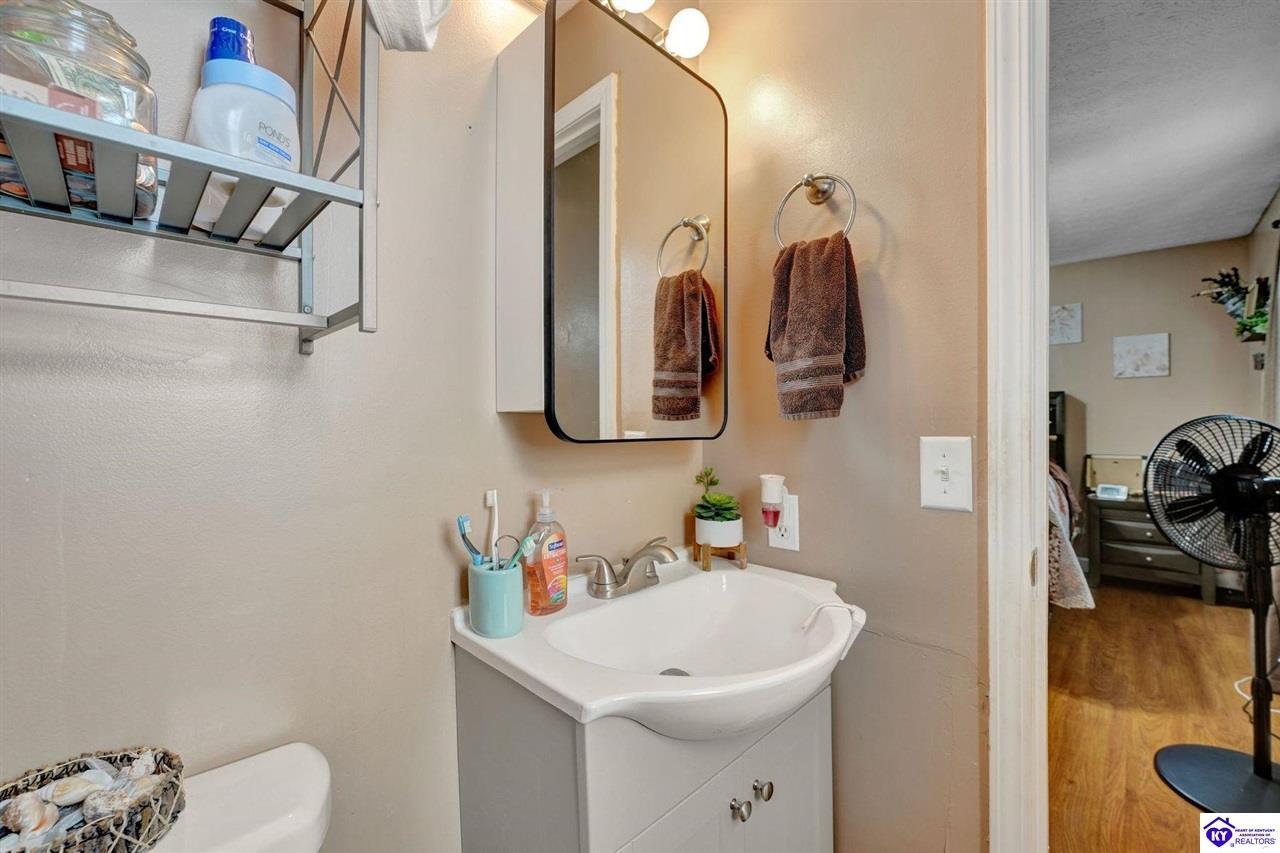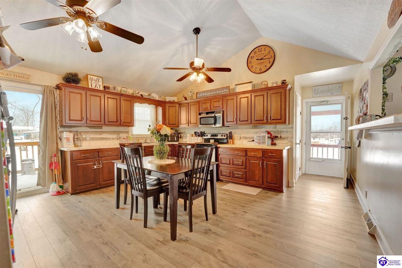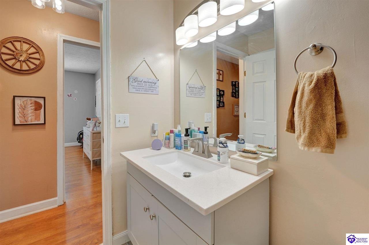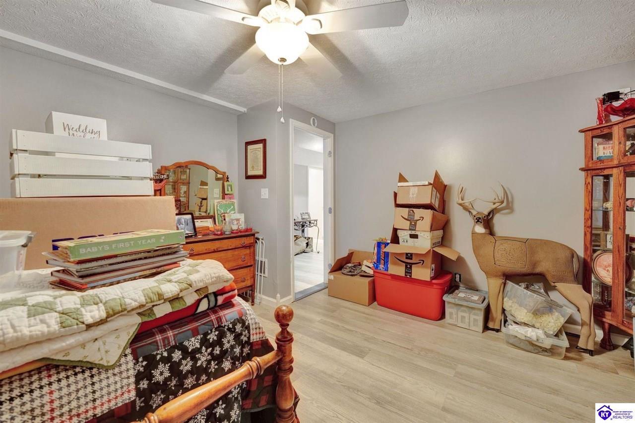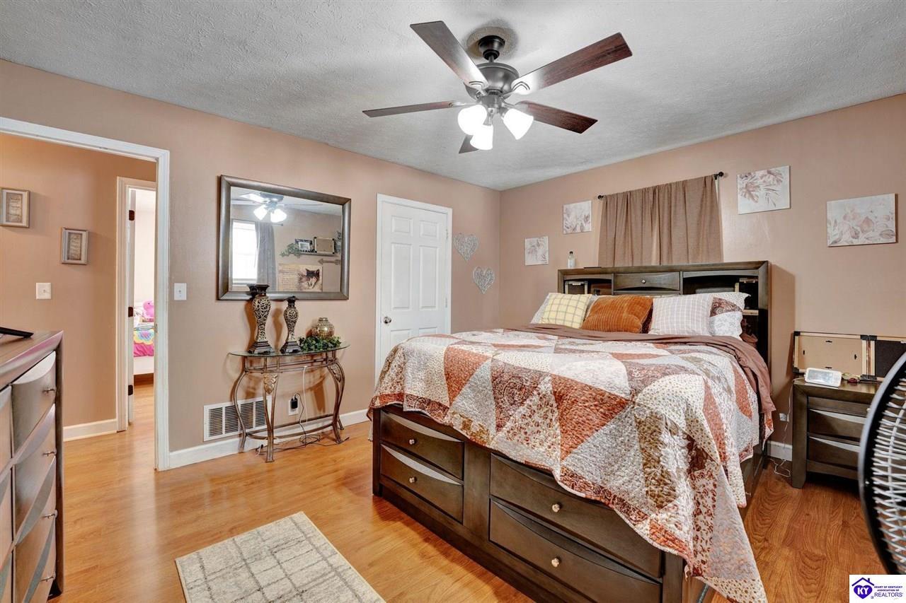 Realtor's notes: Do not miss the opportunity to call this place home, this spacious 3-bedroom, 3-bath home offering laminate flooring throughout with a fully finished basement. From the covered side porch, step into the inviting eat-in kitchen featuring a pantry that can also function as a main-level laundry space. The kitchen opens seamlessly to the family room, creating a comfortable layout for everyday living and entertaining. Down the hall, you’ll find an updated full bathroom and three bedrooms, including a generously sized primary bedroom with its own private bath. That's not all, the finished basement adds incredible versatility, perfect for guests, hobbies, or additional living space with a large great room, two non-conforming bedrooms , a playroom, a full bath, and a dedicated laundry room. The French doors lead out to the patio overlooking a large backyard complete with a storage shed. Schedule your showing today and come see all this home has to offer in desirable Bardstown!