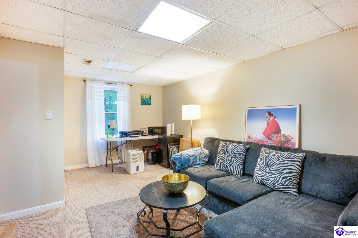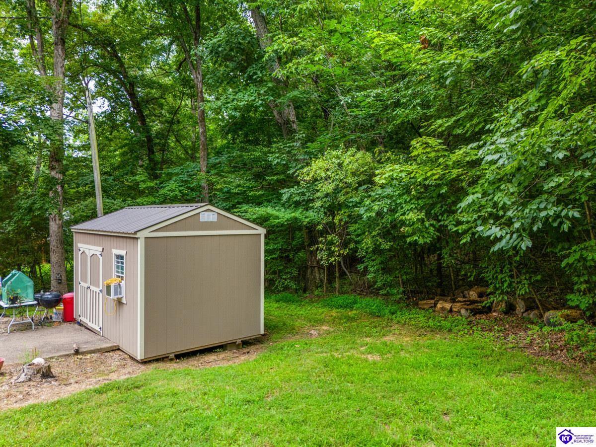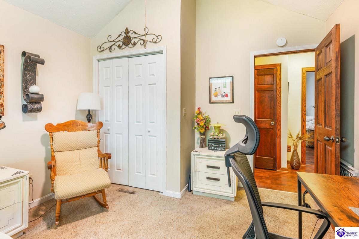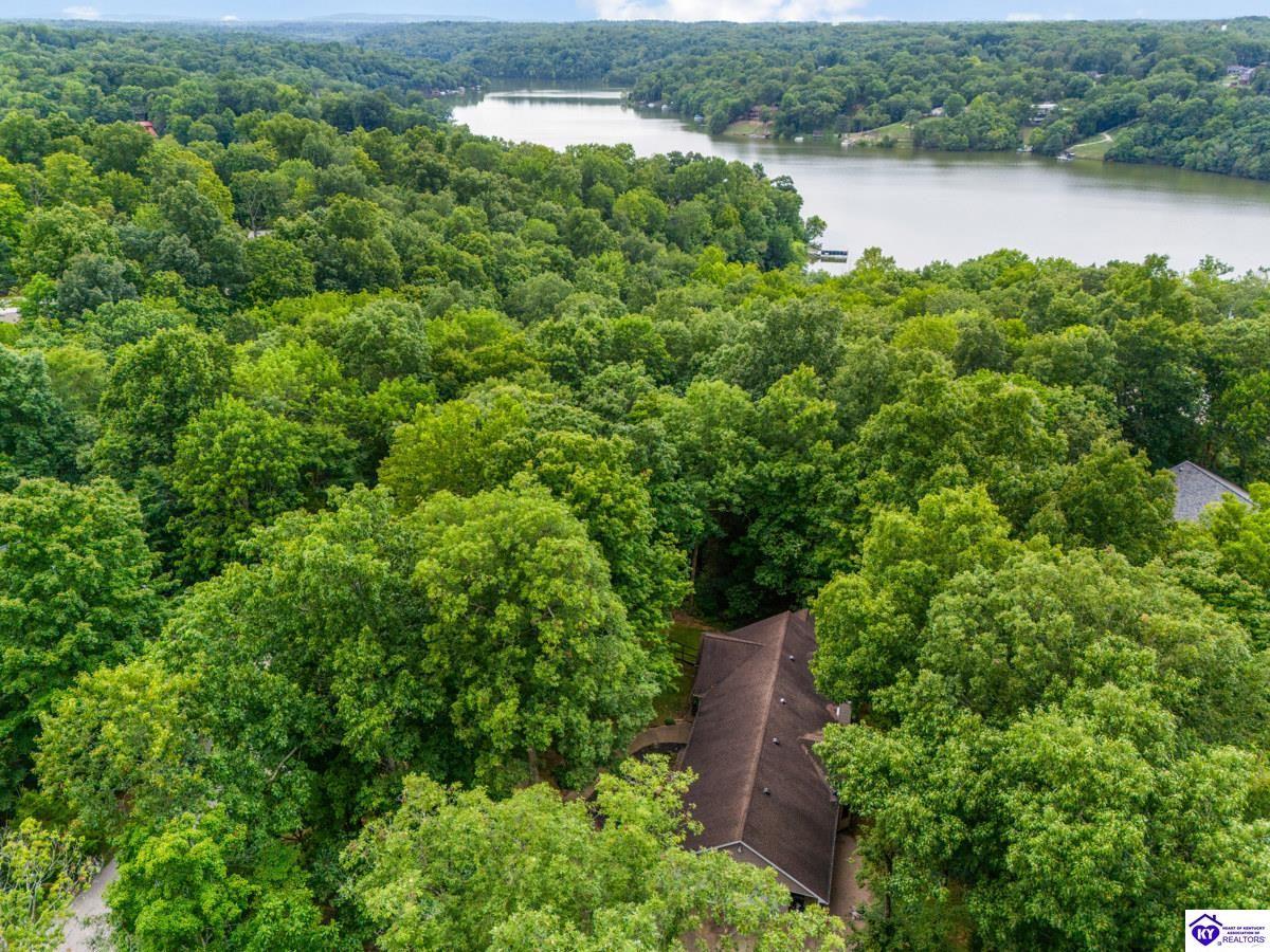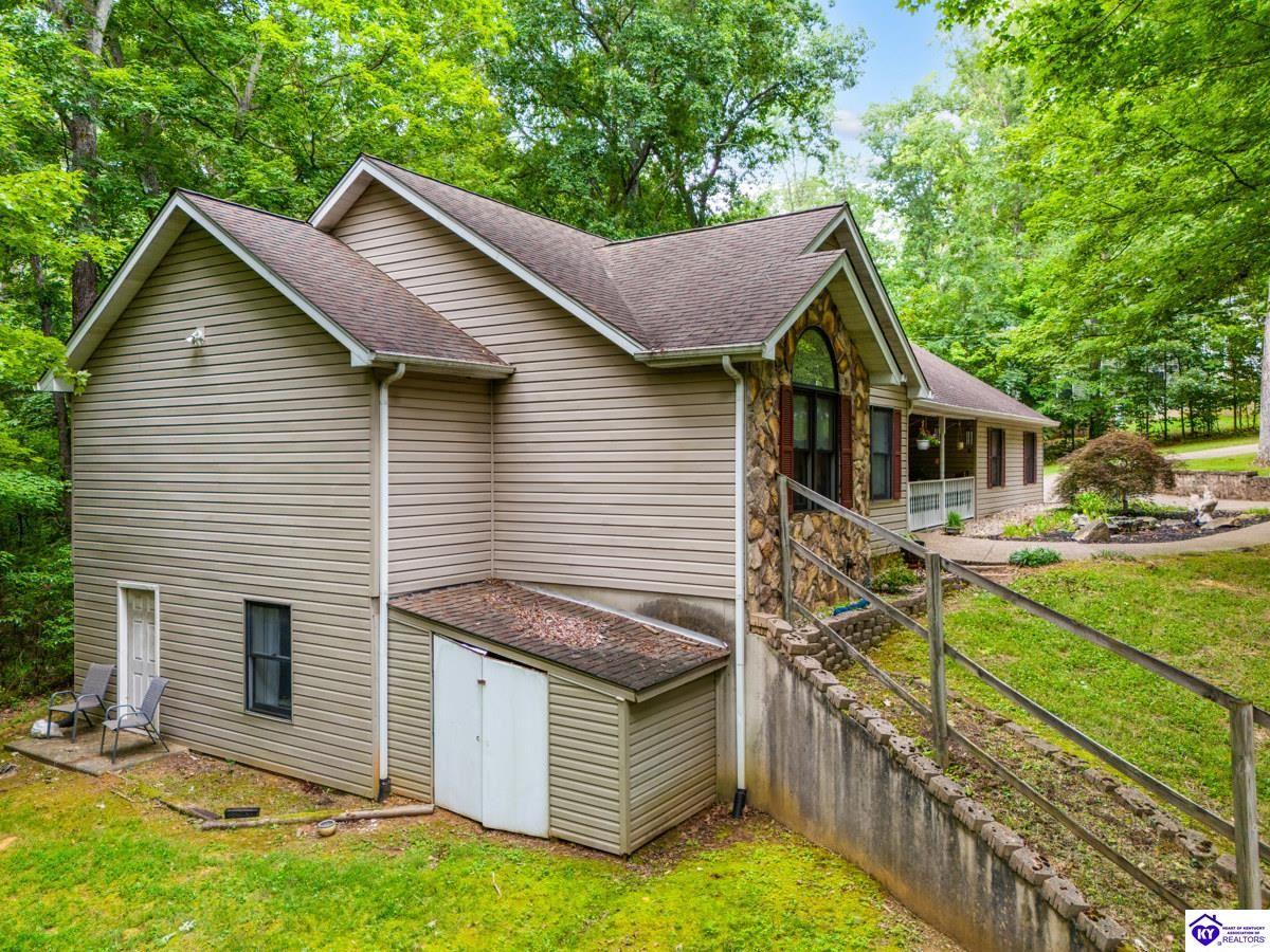 Realtor's notes: This inviting 3-bedroom, 2-bath ranch home is nestled among mature trees on a peaceful half-acre lot in the gated community of Doe Valley, conveniently located between Elizabethtown and Louisville. The exterior offers charming curb appeal with natural stone accents and a welcoming front porch. Inside, vaulted ceilings create a bright, open feel, while the partially finished basement provides flexible space for hobbies, storage, or future expansion. While the home reflects its original character, it presents a wonderful opportunity for updates to suit your personal style. Residents of Doe Valley enjoy access to a golf course, lake, restaurant, and additional community amenities, making this property a perfect blend of comfort, setting, and potential.