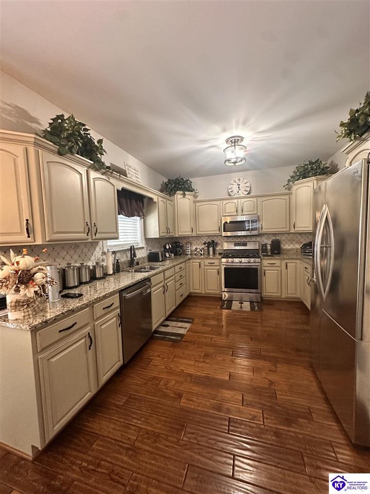 Kitchen Dishwasher, Disposal, Granite Counter Tops, Microwave, Range/Oven, Refrigerator