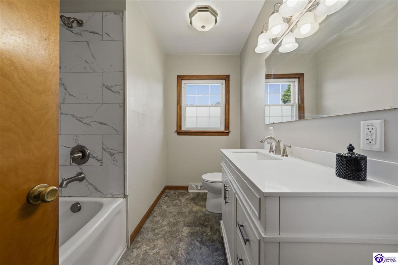 Realtor's notes: Welcome home to this charming brick ranch in the heart of Elizabethtown, located in the established Highlands subdivision. Offering 3 bedrooms and 2 full bathrooms, this move-in-ready home features beautiful hardwood floors, fresh neutral finishes, and a bright, functional layout perfect for everyday living. The eat-in kitchen is equipped with solid surface countertops, smooth-top range, dishwasher, microwave, and refrigerator, flowing easily into the living space for comfortable entertaining. The home includes a basement with an additional full bathroom, providing future flexible space for a rec room, home office, workout area, or future expansion, plus ample unfinished basement storage. Additional highlights include central air, gas heat, ceiling fans, city utilities, and an attached one-car garage with front entry. The oversized lot offers room to enjoy outdoor living, gardening, or future improvements. Conveniently located near shopping, dining, schools, and Ring Road, this property offers easy access to everything Elizabethtown has to offer. Whether you’re looking for a primary residence, rental property, or investment opportunity, this well-maintained home checks all the boxes for comfort, location, and long-term value