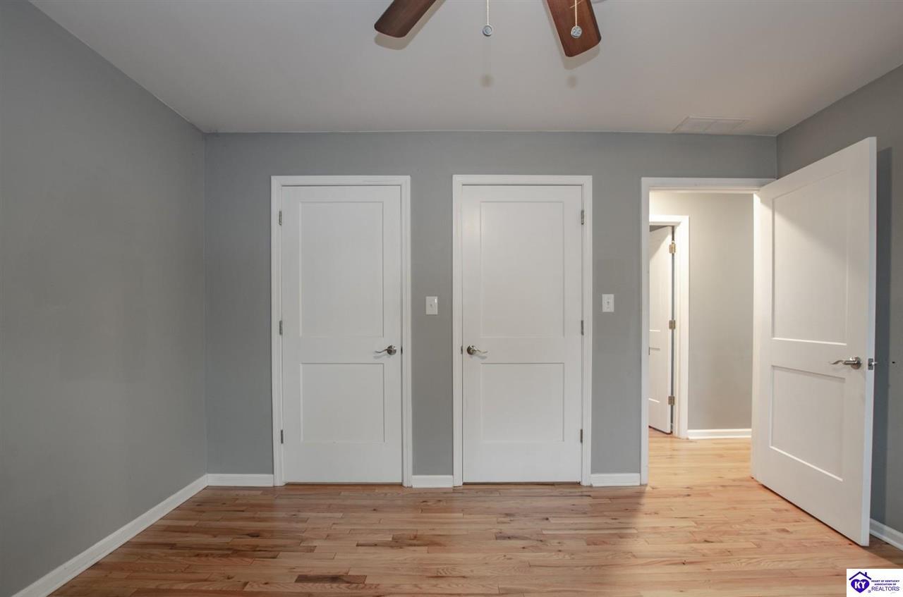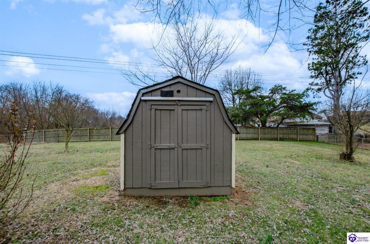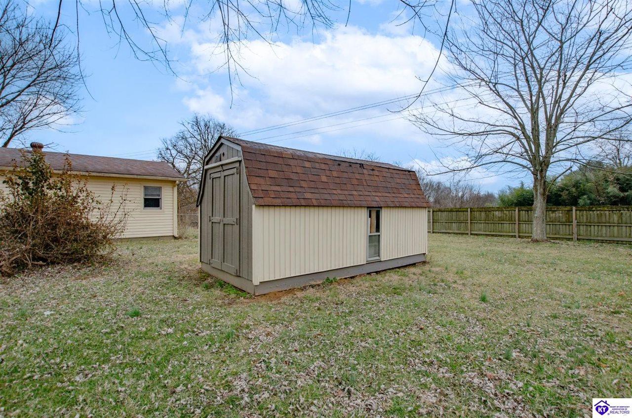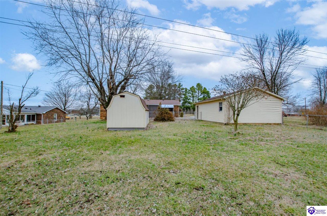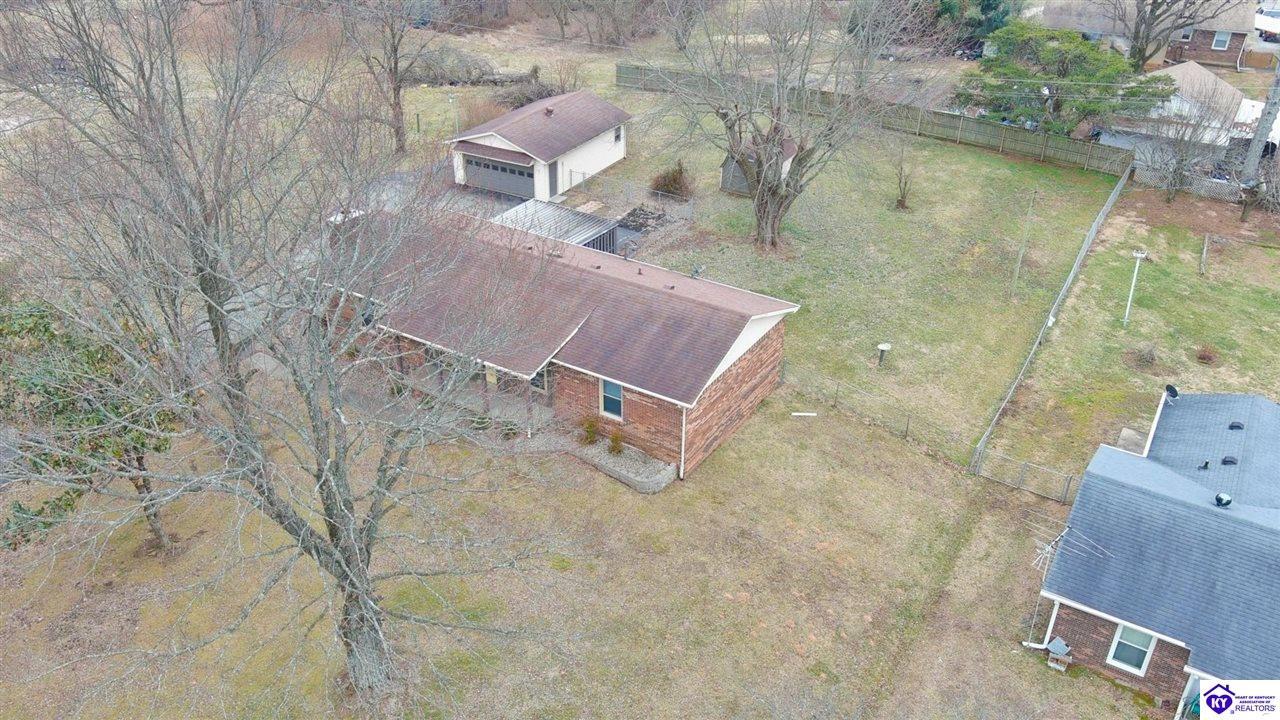 Realtor's notes: Beautiful all-brick ranch offering space, flexibility, and a prime location just outside the city limits of Elizabethtown! This well-maintained 3 bedroom, 3 full bath home features hardwood flooring and tile throughout for a clean, timeless look. The updated kitchen showcases modern countertops and ample cabinetry, making it both stylish and functional. With 2 of the bedrooms offering private full baths, there’s potential for dual primary suites — perfect for multi-generational living, guests, or added privacy. The split bedroom floor plan provides separation and comfort for everyone. Step outside to enjoy a large fenced rear yard, ideal for pets or outdoor gatherings. The covered back patio offers privacy and a great space to relax or entertain. Additional features include a detached 2-car garage, storage shed, and blacktop driveway for added convenience. Located just minutes from shopping, dining, and everyday amenities, this home combines peaceful living with quick access to everything Elizabethtown has to offer. Don’t miss your opportunity to make it yours!