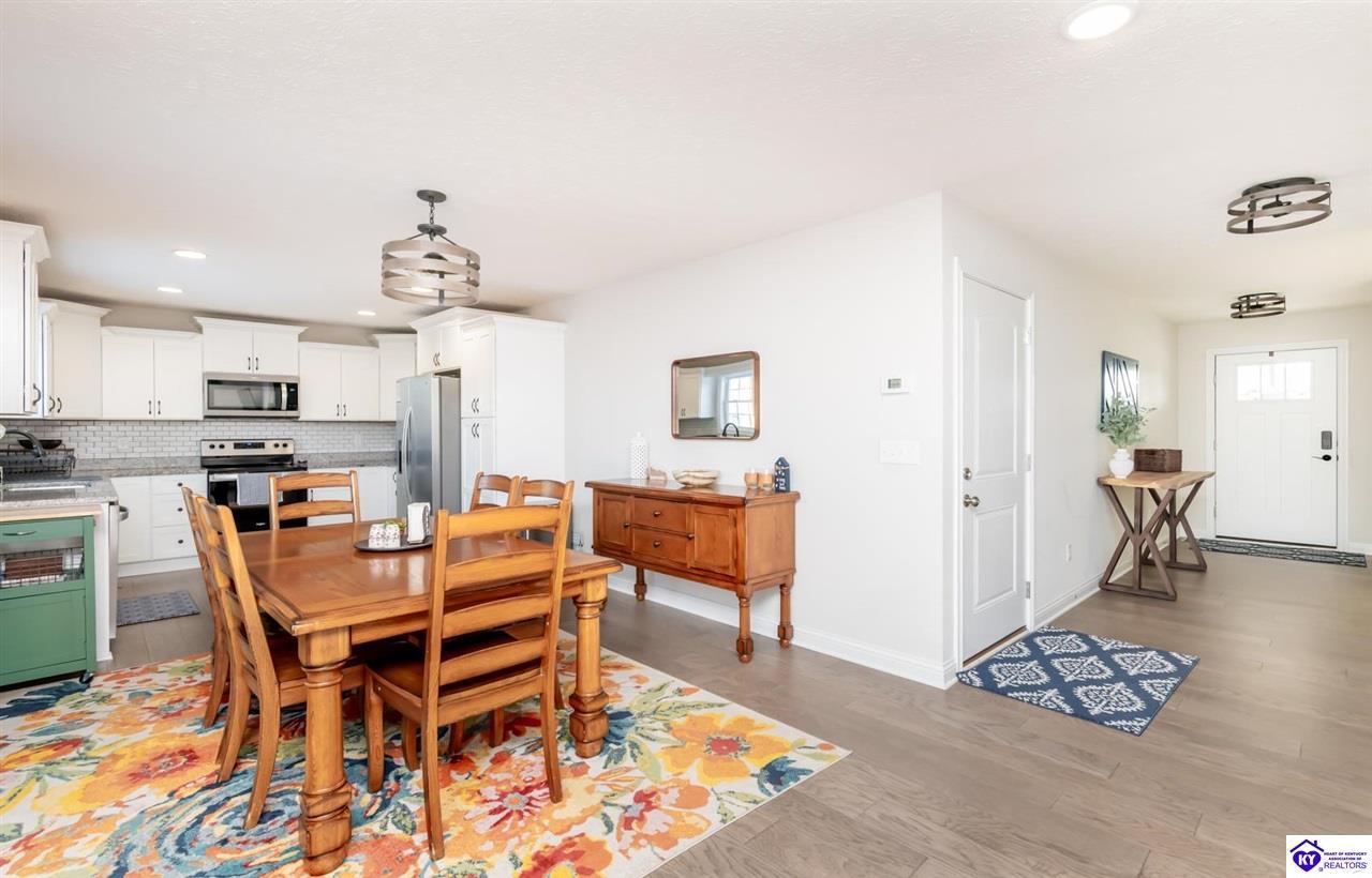 Realtor's notes: This beautifully maintained 4-bedroom home built in 2022 by Radcliff Homes is located in the desirable Nicholas Ridge subdivision. Radcliff Homes is known for building quality, functional, and spacious floorplans and this like-new home is no exception. Thoughtfully designed with everyday living in mind, it offers generous living areas, spacious bedrooms, and large closets throughout, providing flexibility and room to grow. Meticulously maintained and move-in ready, you?ll immediately notice the personal upgrades count including a stylish tiled kitchen backsplash, a two-stage water softener system, expanded concrete driveway, and professionally installed retaining wall with attractive front landscaping. The primary suite is well-appointed and features dual vanities, a beautifully tiled walk-in shower, and an oversized walk-in closet offering abundant storage and organization space. The finished walk-out basement adds incredible versatility, complete with a 4th bedroom and full bathroom perfect for guests, multigenerational living, or a private office space. It opens to a large fenced backyard that backs to open space for added privacy and peaceful views of the deer that occasionally move through the area. Nicholas Ridge offers easy access to shopping, dining, and everyday amenities plus a quick commute to Fort Knox, making this an ideal choice for military families and professionals alike. Why wait to build when you can have like-new construction with upgrades already complete? Schedule your private tour today!