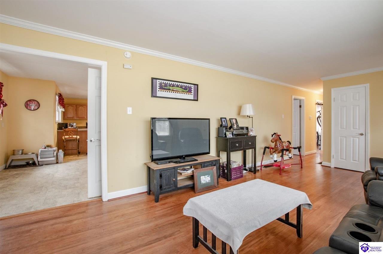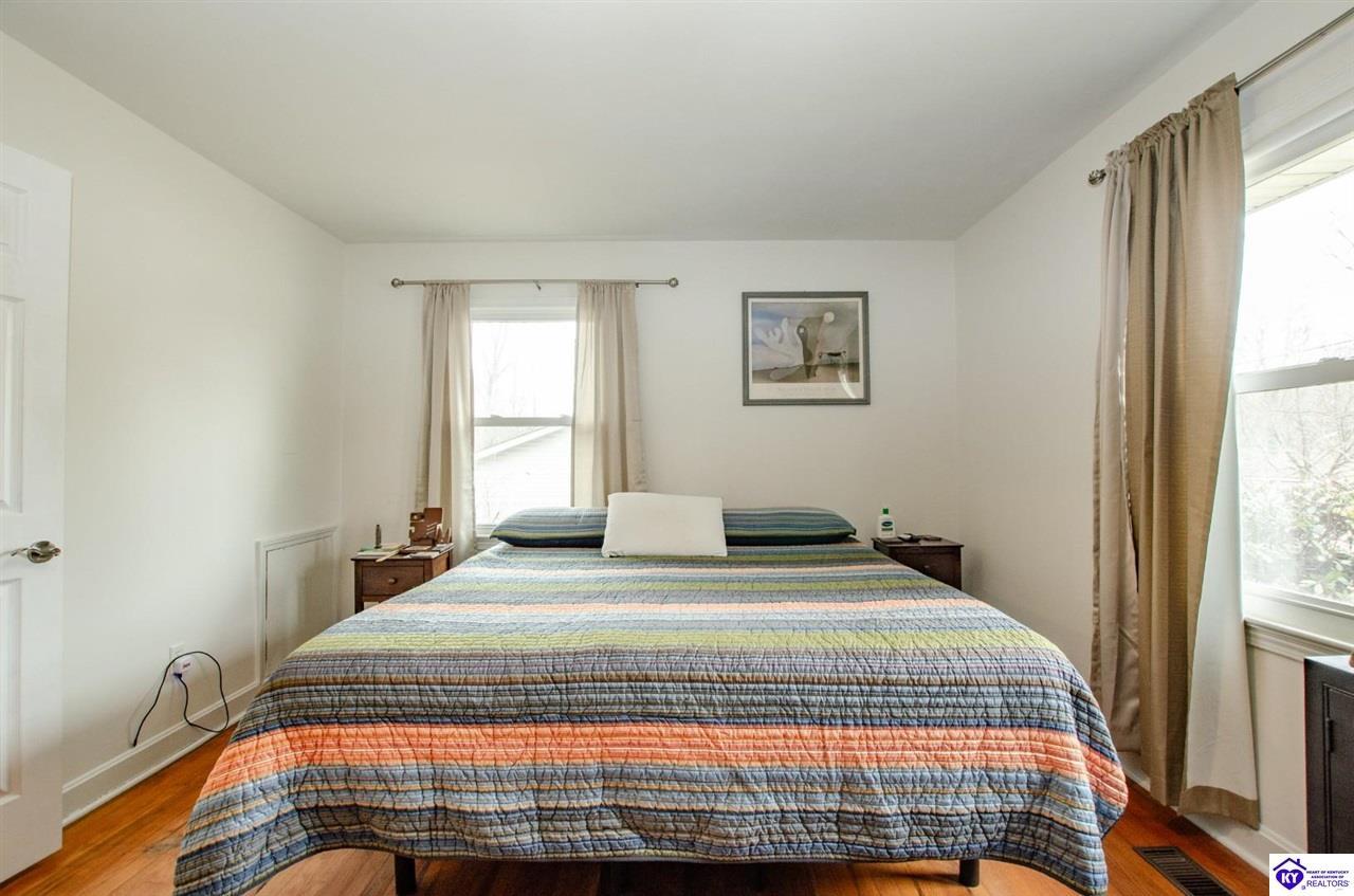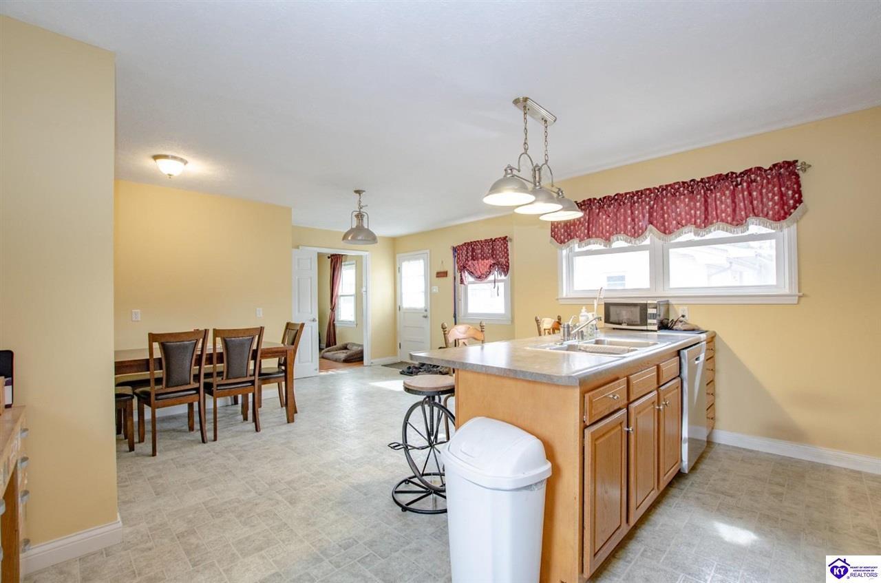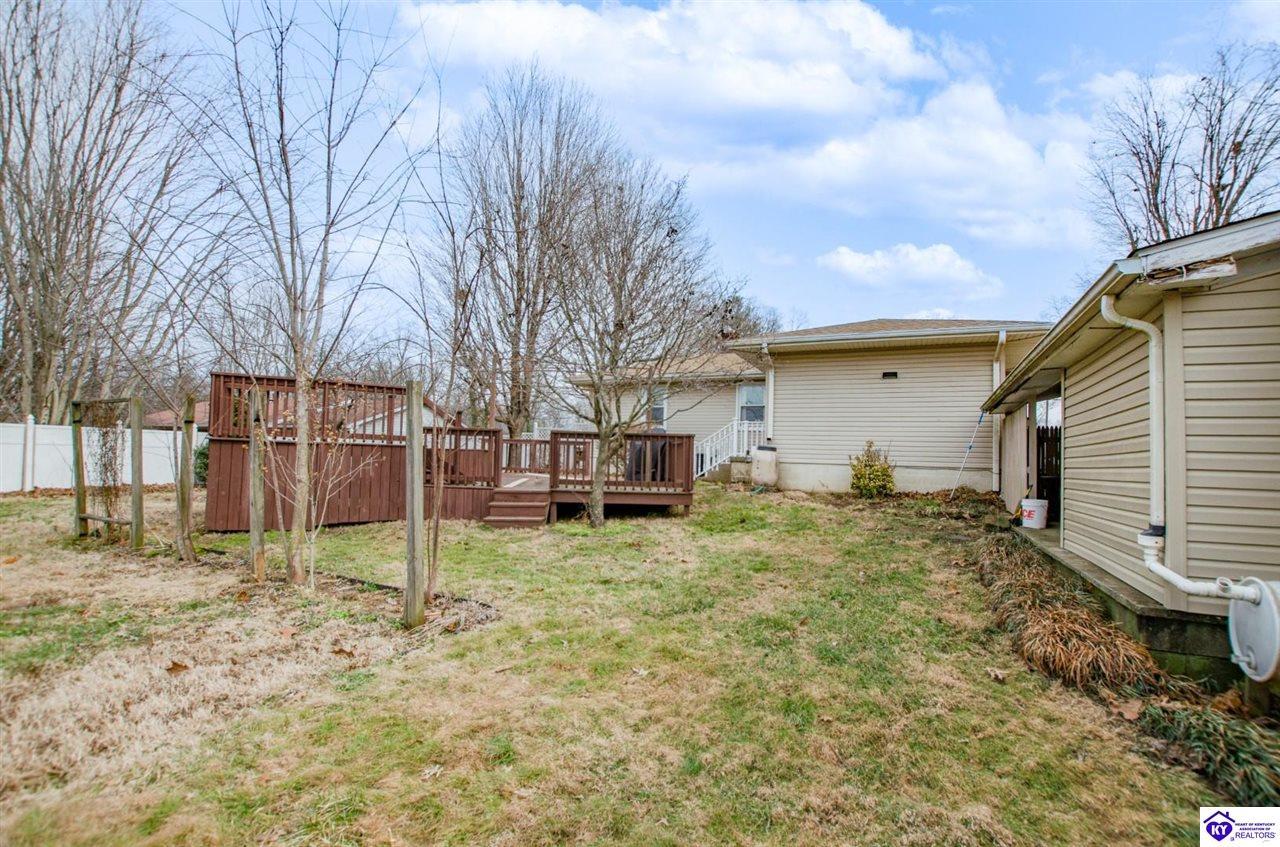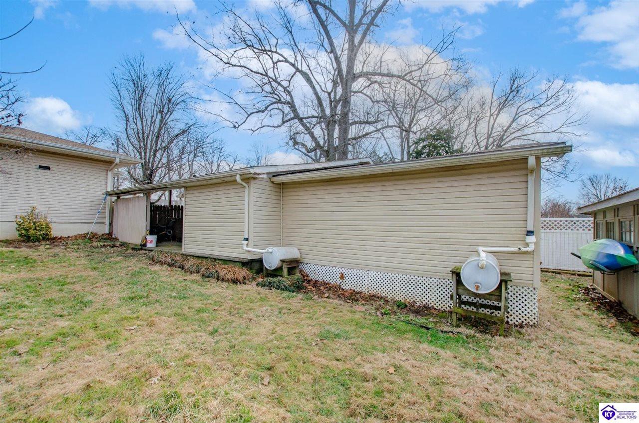 Realtor's notes: Welcome to your next chapter in one of Radcliff's most peaceful and charming neighborhoods. This delightful three-bedroom, two-bathroom home is brimming with character and thoughtful upgrades that make it truly one of a kind. Step inside and you'll immediately notice the gorgeous hardwood flooring that flows throughout the living spaces, bathed in natural light pouring through oversized windows. The heart of this home is the generously expanded kitchen and dining room addition — perfect for hosting holiday dinners, casual gatherings, or simply enjoying your morning coffee with a little extra elbow room. Head downstairs to the finished basement, where a cozy library with built in bookcases awaits the bookworm in your life, alongside a family room and an additional flex space that has a wet bar area. Outside, a beautiful wraparound porch invites you to slow down and savor those warm Kentucky evenings. The detached garage offers ample storage and workspace, complete with a lean-to for additional covered utility. Whether you're tinkering on projects or storing seasonal gear, you'll never run out of room. Once spring is here you will fall in love with the beauty within the landscaping to include some of the prettiest flowers in the area! Schedule your viewing today!