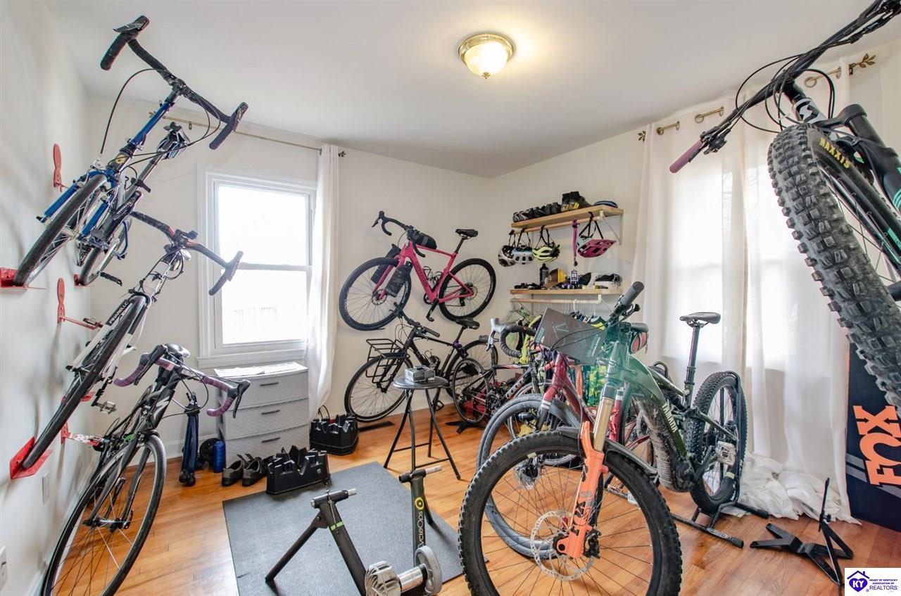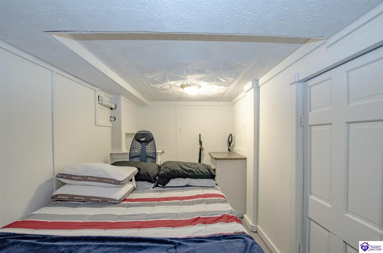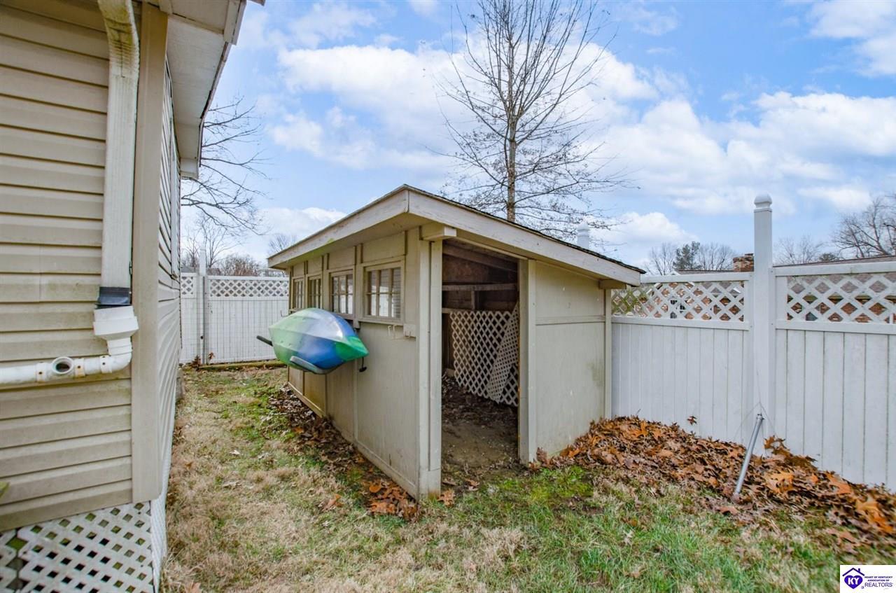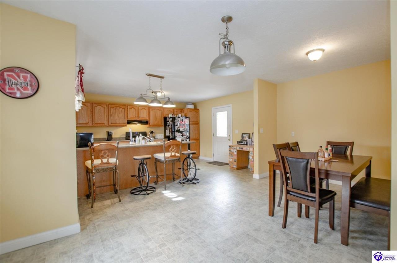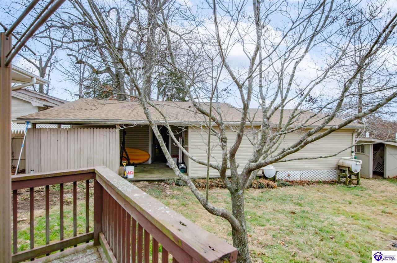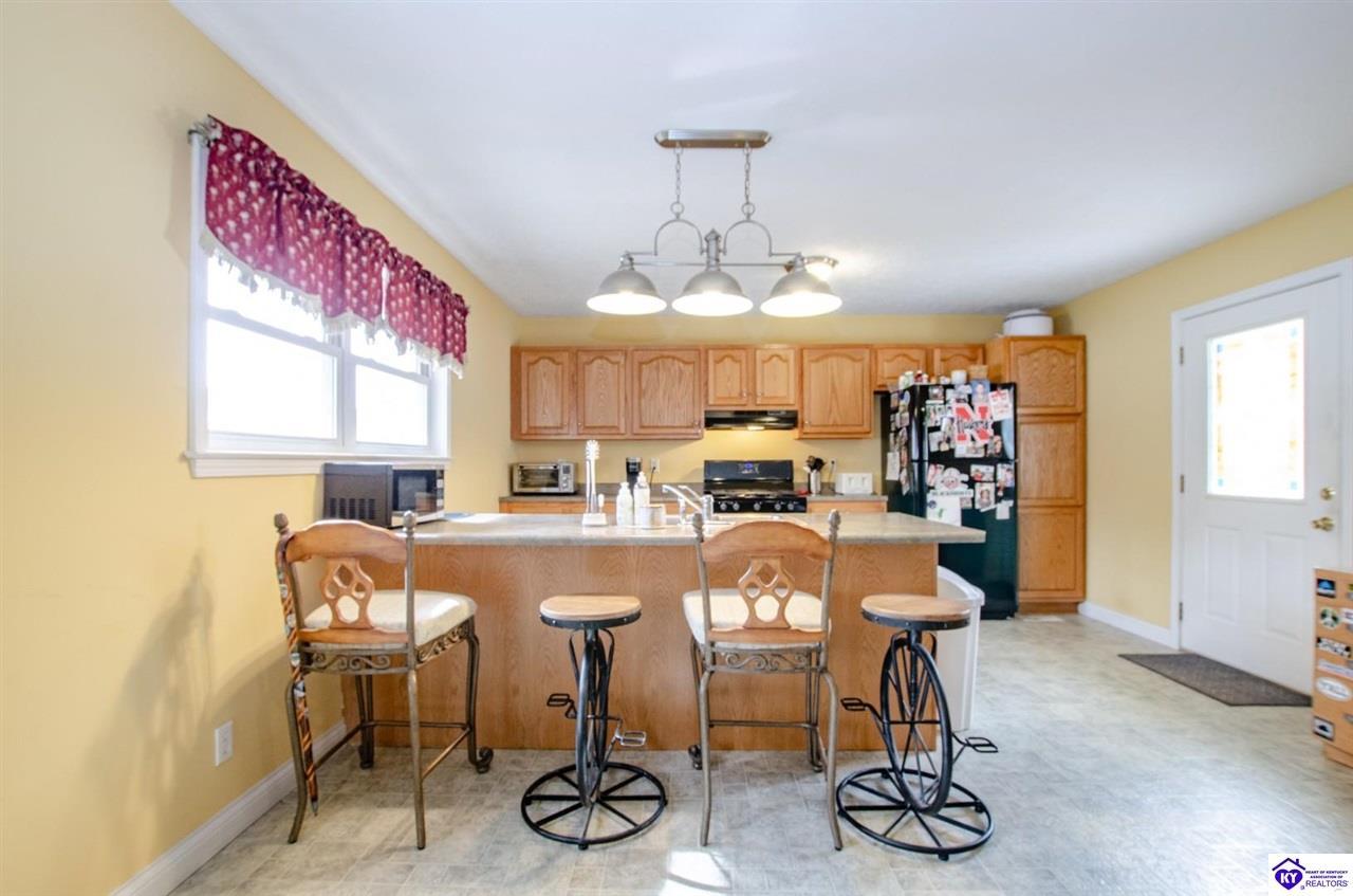Realtor's notes: Welcome to your next chapter in one of Radcliff's most peaceful and charming neighborhoods. This delightful three-bedroom, two-bathroom home is brimming with character and thoughtful upgrades that make it truly one of a kind. Step inside and you'll immediately notice the gorgeous hardwood flooring that flows throughout the living spaces, bathed in natural light pouring through oversized windows. The heart of this home is the generously expanded kitchen and dining room addition — perfect for hosting holiday dinners, casual gatherings, or simply enjoying your morning coffee with a little extra elbow room. Head downstairs to the finished basement, where a cozy library with built in bookcases awaits the bookworm in your life, alongside a family room and an additional flex space that has a wet bar area. Outside, a beautiful wraparound porch invites you to slow down and savor those warm Kentucky evenings. The detached garage offers ample storage and workspace, complete with a lean-to for additional covered utility. Whether you're tinkering on projects or storing seasonal gear, you'll never run out of room. Once spring is here you will fall in love with the beauty within the landscaping to include some of the prettiest flowers in the area! Schedule your viewing today!
