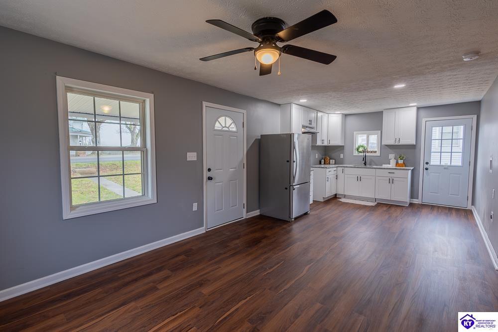 Realtor's notes: Discover charm of this inviting 1940s bungalow, perfectly situated in the heart of Magnolia, KY. This cozy 2-bedroom, 1-bath home is move in ready and offers every day practicality, starting with a welcoming covered front porch that sets the tone for relaxed small-town living. Step inside to find a completely renovated interior with a functional layout of a combined living room /kitchen that has new cabinets, granite counter tops, laminate flooring, and a conveniently located laundry space. Three ductless mini split systems throughout provide energy efficiency and varying control for each area. All new interior lighting, bathroom and kitchen fixtures, and remote-control ceiling fans add to the finished touches of this home. A side deck extends your living space outdoors—perfect for morning coffee, grilling, or unwinding in the evenings. The property sits on a spacious backyard, offering room for gardening, pets, play, or future expansion. Crawl space has stepped entrance with door that could possibly be used during storms Metal roof will be painted black when spring weather permits. Age of house is believed to be 1948, without absolute certainty. Lot size and square footage of house to be verified by buyer.