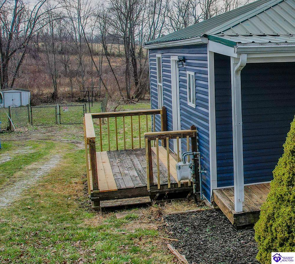 Realtor's notes: NEW METAL ROOF INSTALLED 2/27/26 Discover charm of this inviting 1940s bungalow, perfectly situated in the heart of Magnolia, KY. This cozy 2-bedroom, 1-bath home is move in ready and offers every day practicality, starting with a welcoming covered front porch that sets the tone for relaxed small-town living. Step inside to find a completely renovated interior with a functional layout of a combined living room /kitchen that has new cabinets, granite counter tops, laminate flooring, electric, fixtures, and a conveniently located laundry space. Three ductless mini split systems throughout provide energy efficiency and varying control for each area. All new interior lighting, bathroom and kitchen fixtures, and remote-control ceiling fans add to the finished touches of this home. The inviting front porch and the side deck extend your living space outdoors—perfect for morning coffee, grilling, or unwinding in the evenings. The property has a spacious backyard, offering room for gardening, pets, play, or future expansion. Crawl space has stepped entrance with door that is just over 6' in height and could be used for shelter and/or storage space for extra belongings. Metal roof will be painted black when spring weather permits. Age of house is believed to be 1948, without absolute certainty. Lot size and square footage of house to be verified by buyer.