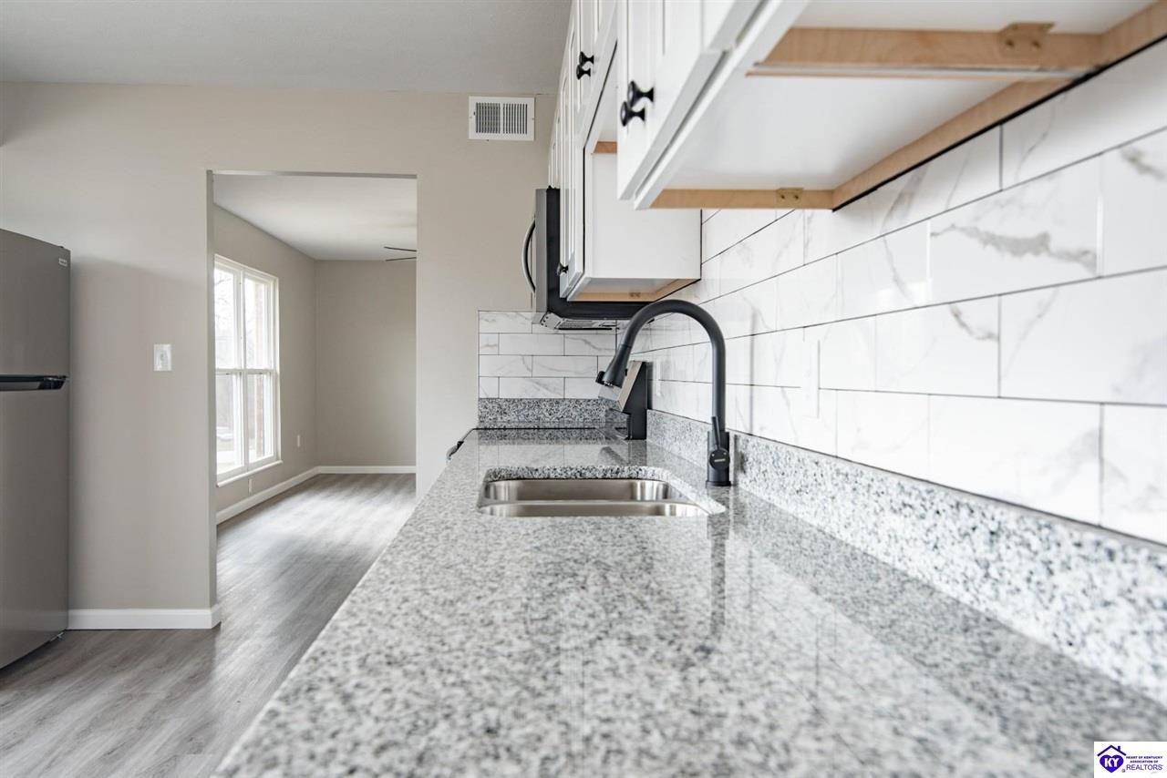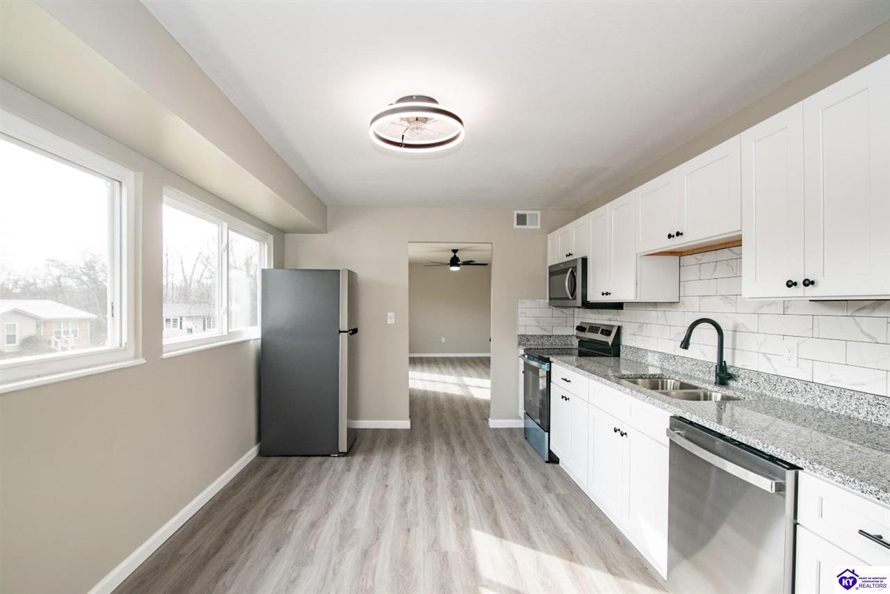 Realtor's notes: Within walking distance to Campbellsville University, this completely remodeled 3 bedroom, 1 bath home offers 1,040 square feet of updated, move-in ready living space—making it ideal for students, faculty, or investors seeking a prime rental opportunity. The interior has been thoughtfully renovated with durable vinyl plank flooring throughout, brand new stainless steel appliances, new cabinetry, granite countertops, and a stylish tile backsplash. Updated lighting adds a modern touch, and the washer/dryer hookup is conveniently located in the kitchen. Whether you're looking for a primary residence or an investment property in a highly desirable location, this home combines convenience, functionality, and fresh modern finishes. Don’t miss this opportunity close to campus!