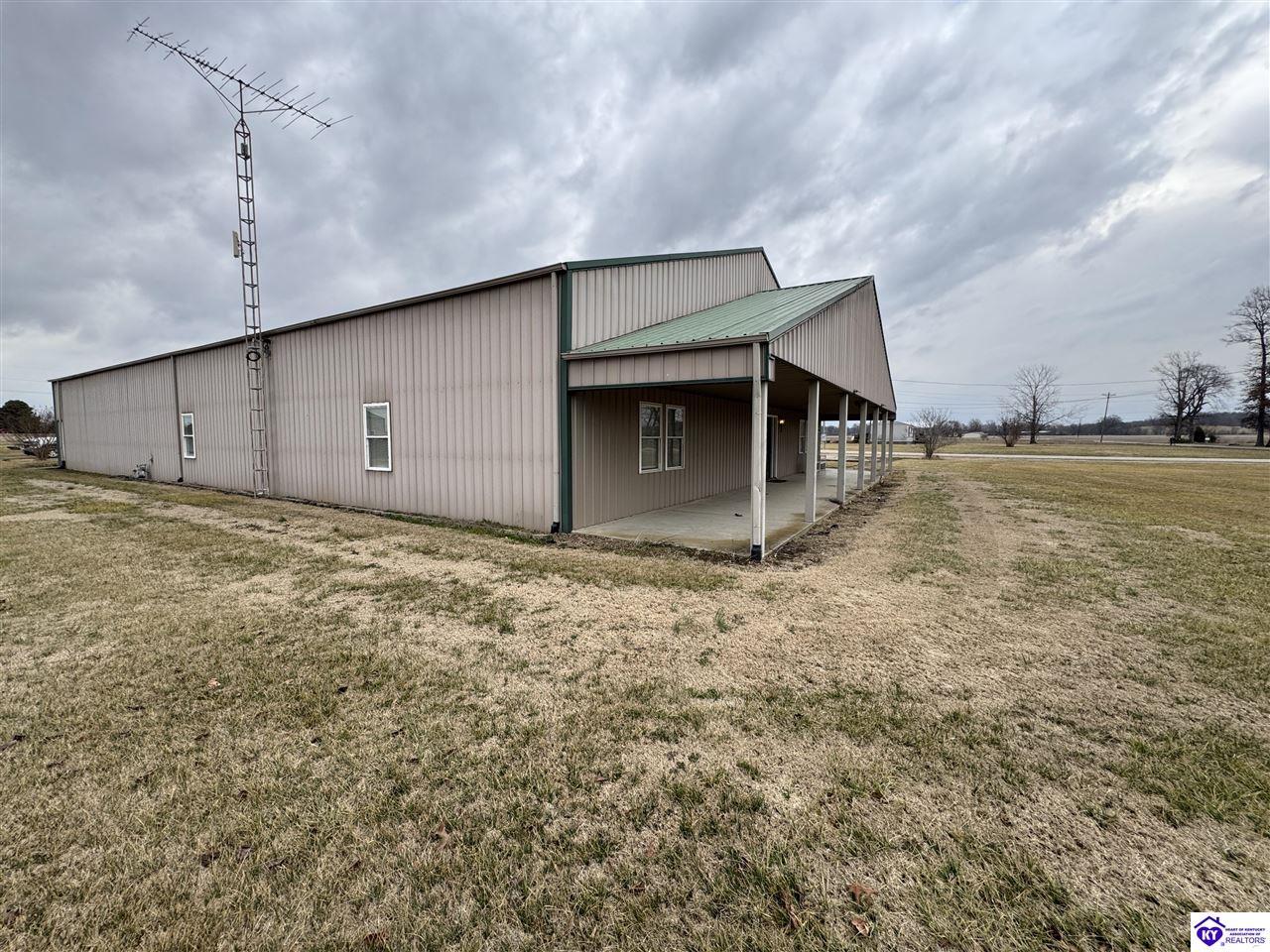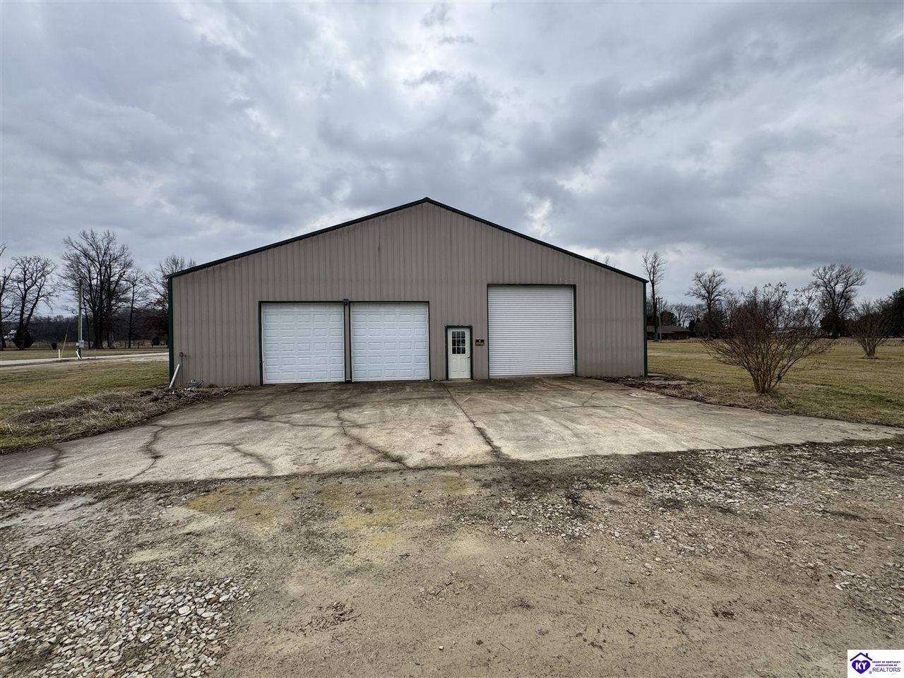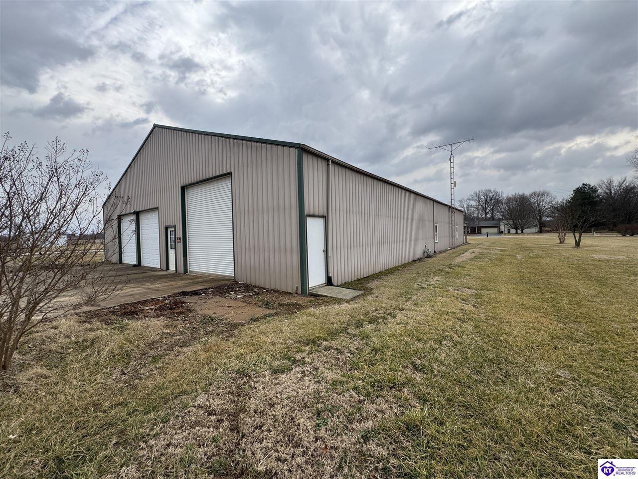 Realtor's notes: Going on the absolute auction block, by online bidding only, will be the following real estate in two parcels. Parcel 1: Consists of 1.883 acres +/- all open land with frontage on McGill Lane. Improvements include a nice Barndominium having approximately 3,000 square feet of living space and 3,000 square feet of shop area. The living space has 2 large bedrooms, 2 full bathrooms, large combination kitchen, dining and family room area, walk in pantry, and utility room with washer and dryer area. The home is heated by natural gas furnace with central air, has laminate wood design and tile flooring, a covered porch, patio area, and Lewisport city water. The shop area consists of 3,000 sq. ft. having a kitchenette, ½ bath, loft area, wiring, 3 overhead doors, and 3 man doors. The Barndominium is constructed of wood frame, metal exterior, and concrete floor throughout. Parcel 2: 1.4 acres all open land with frontage on McGill Lane. Improvements include a shop building with concrete floor, garage door, man door, and 14 ft. x 14 ft. storage building. Real estate is available to water, electrical service, and natural gas at buyer’s expense. Parcels 1 and 2 are zoned A-1
