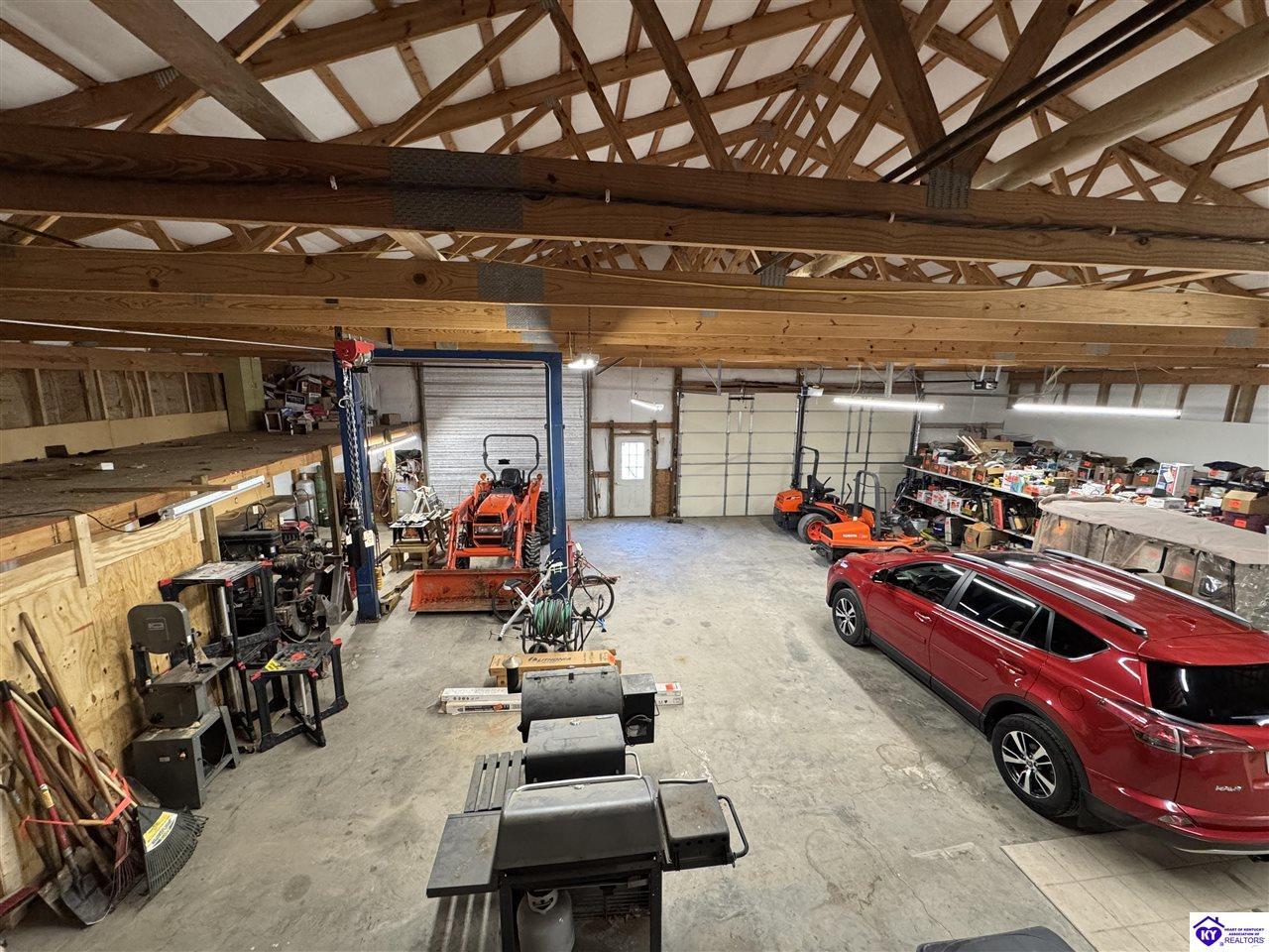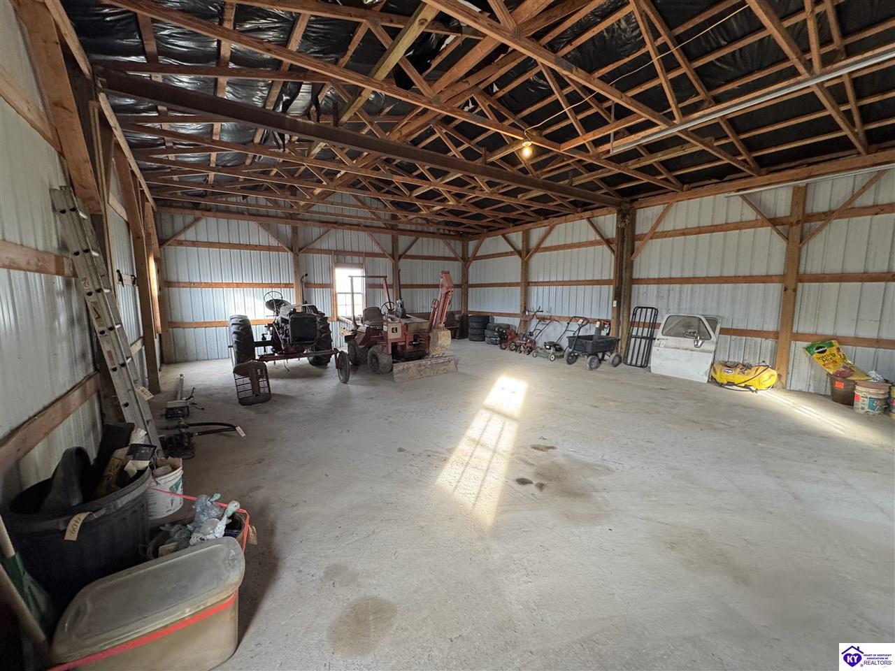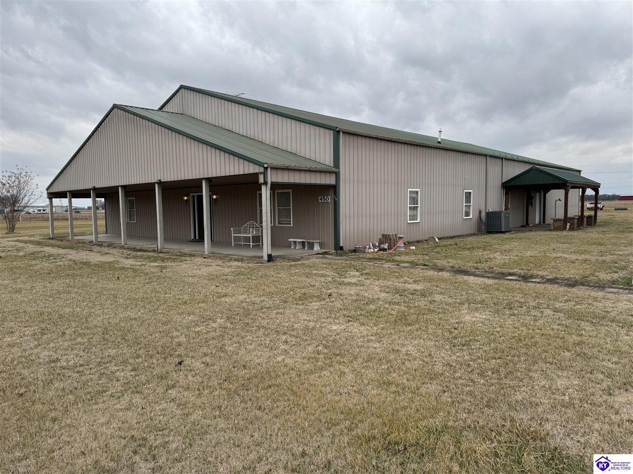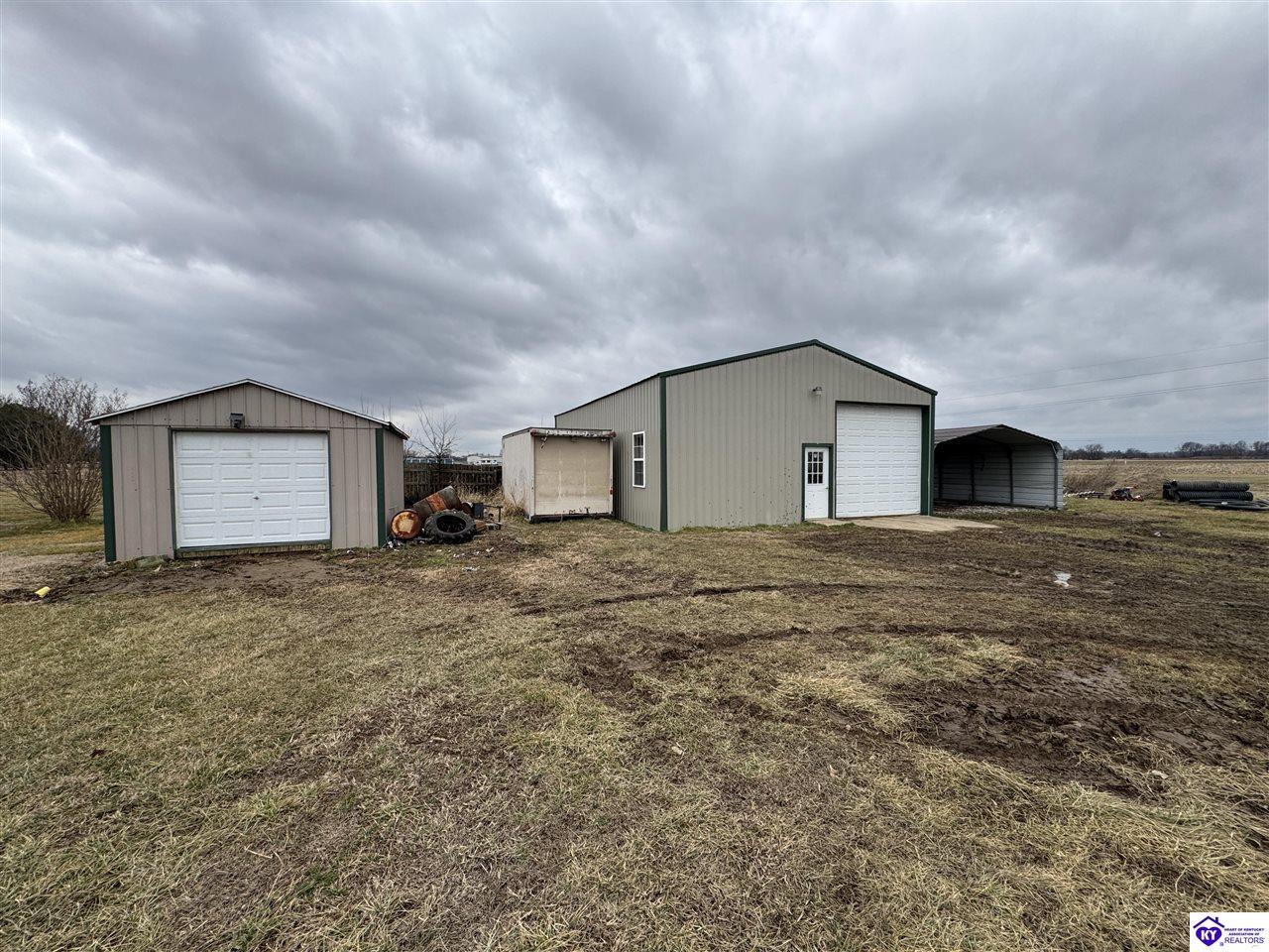 Realtor's notes: Going on the absolute auction block, by online bidding only, will be the following real estate in two parcels. Parcel 1: Consists of 1.883 acres +/- all open land with frontage on McGill Lane. Improvements include a nice Barndominium having approximately 3,000 square feet of living space and 3,000 square feet of shop area. The living space has 2 large bedrooms, 2 full bathrooms, large combination kitchen, dining and family room area, walk in pantry, and utility room with washer and dryer area. The home is heated by natural gas furnace with central air, has laminate wood design and tile flooring, a covered porch, patio area, and Lewisport city water. The shop area consists of 3,000 sq. ft. having a kitchenette, ½ bath, loft area, wiring, 3 overhead doors, and 3 man doors. The Barndominium is constructed of wood frame, metal exterior, and concrete floor throughout. Parcel 2: 1.4 acres all open land with frontage on McGill Lane. Improvements include a shop building with concrete floor, garage door, man door, and 14 ft. x 14 ft. storage building. Real estate is available to water, electrical service, and natural gas at buyer’s expense. Parcels 1 and 2 are zoned A-1