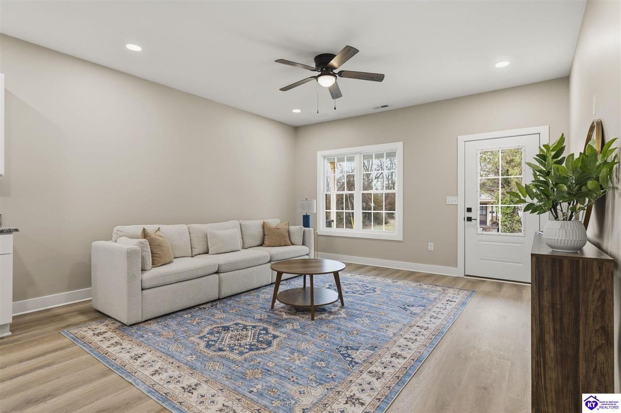 Realtor's notes: This beautifully crafted new-construction duplex offers 3 bedrooms, 2 bathrooms, and approximately 1,440 sq. ft. of thoughtfullydesigned space. The private primary suite features a double-vanity bath and spacious walk-in closet. The modern kitchen showcasessleek granite countertops, stainless steel appliances, and an open layout ideal for entertaining. An attached 1-car garage adds everydayconvenience. Move-in ready and ideally located near Baptist Health Hardin, ECTC, Freeman Lake Park, Towne Mall, dining, andshopping — luxury, location, and value all in one.
