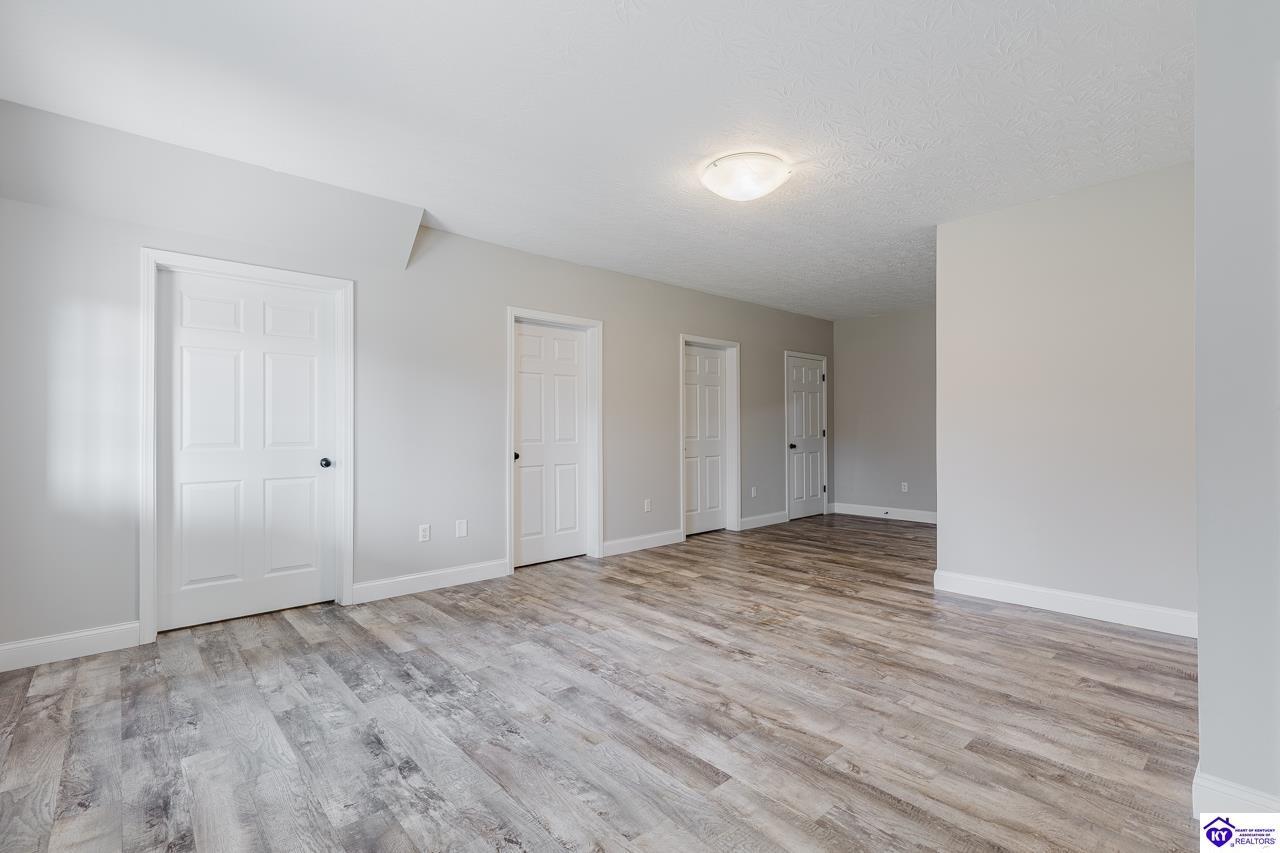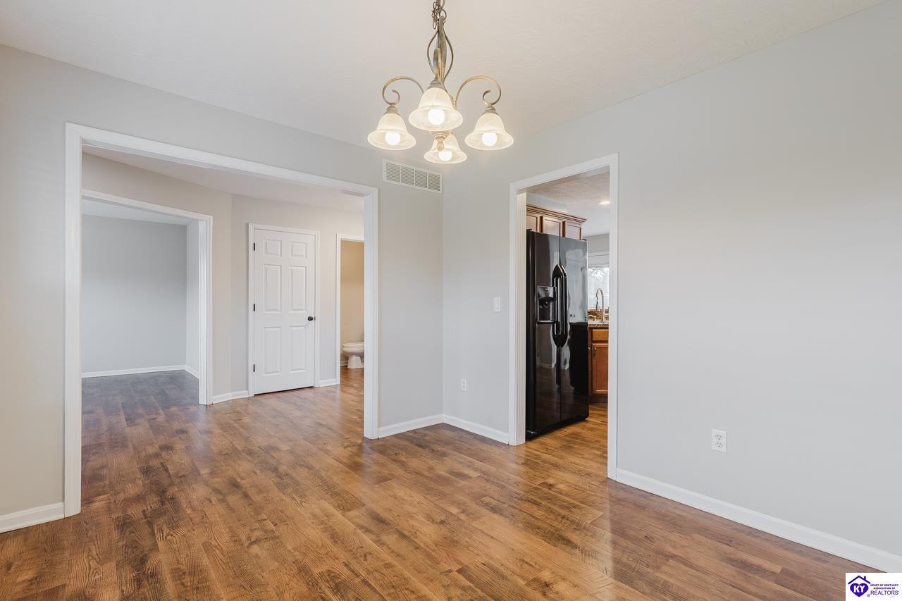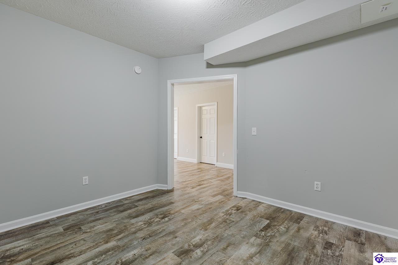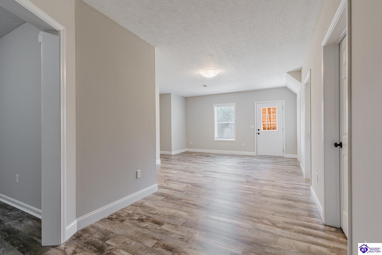 Realtor's notes: Located in the heart of Rineyville, 212 Berkshire Avenue is a stunning two-story residence that offers a versatile floor plan designed for modern living and functional comfort. The main level features a bright, expansive living area centered around a cozy fireplace, a sun-filled eat-in kitchen with a separate formal dining room, a convenient half bathroom, and a flexible extra room perfect for a quiet home office or study. Upstairs, the property boasts four spacious bedrooms and a full bathroom. It is highlighted by a generous primary retreat featuring an elegant tray ceiling, a massive walk-in closet, and a spa-like private bathroom complete with double vanities, a walk-in shower, and a separate soaking tub accented by a beautiful tile feature. The finished walk-out basement provides significant additional square footage with a large secondary living space, a third full bathroom, and a dedicated laundry area. For storage solutions, there are separate storage rooms. Plus, the basement features a versatile multi-use room perfect for a home gym, craft area, or media space. Outdoor enthusiasts will appreciate the large back porch accessible from the main living area, which leads down to an expansive, backyard ideal for activities and relaxation. With its combination of substantial living space, classic interior layout and generous outdoor appeal, this Rineyville home is a standout choice for those seeking comfort and convenience near Elizabethtown and Fort Knox.