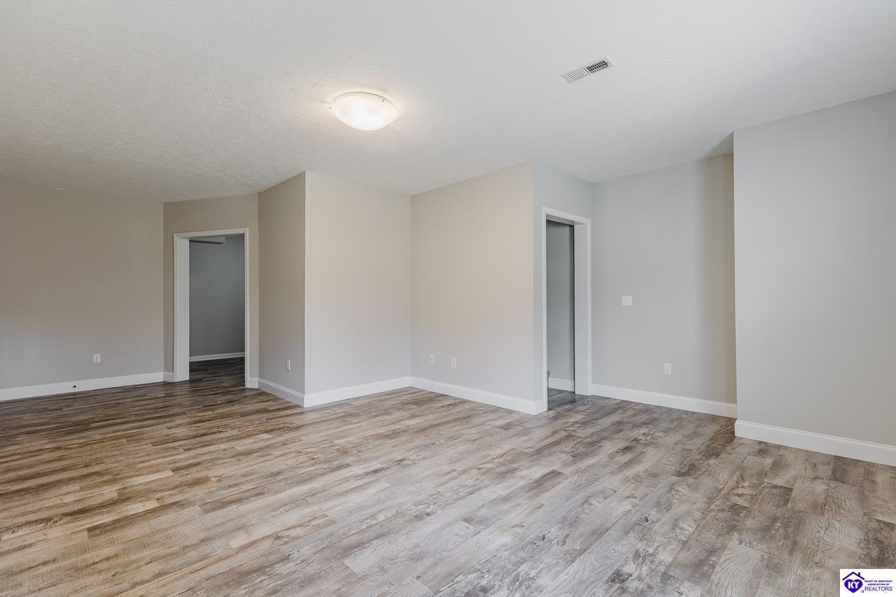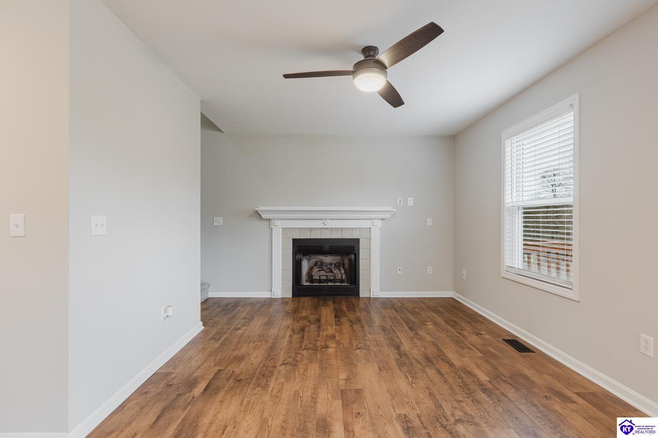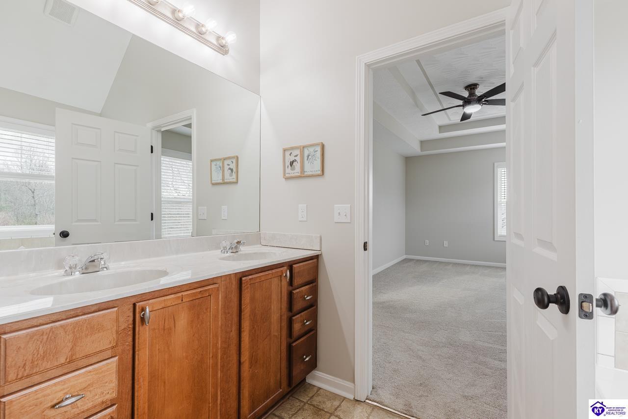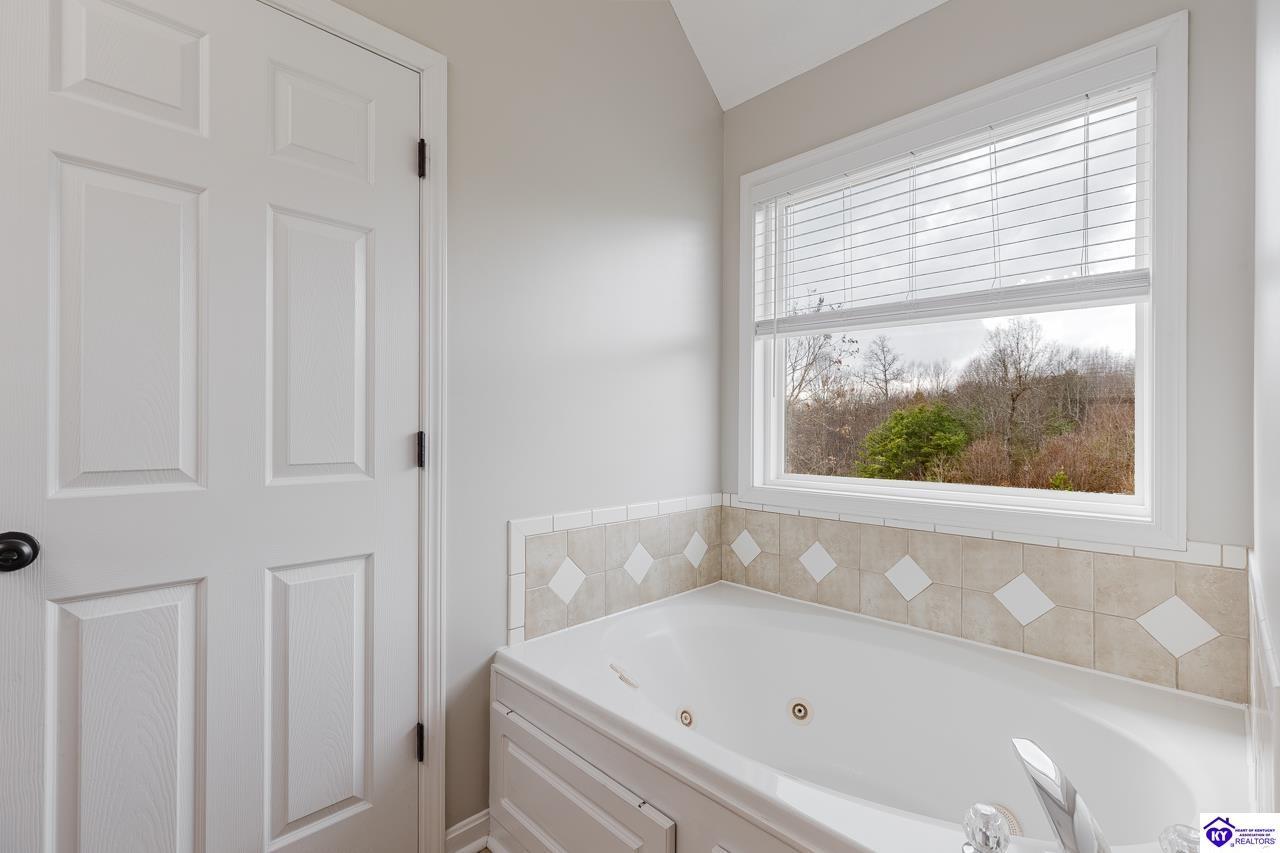Realtor's notes: Located in the heart of Rineyville, 212 Berkshire Avenue is a stunning two-story residence that offers a versatile floor plan designed for modern living and functional comfort. The main level features a bright, expansive living area centered around a cozy fireplace, a sun-filled eat-in kitchen with a separate formal dining room, a convenient half bathroom, and a flexible extra room perfect for a quiet home office or study. Upstairs, the property boasts four spacious bedrooms and a full bathroom. It is highlighted by a generous primary retreat featuring an elegant tray ceiling, a massive walk-in closet, and a spa-like private bathroom complete with double vanities, a walk-in shower, and a separate soaking tub accented by a beautiful tile feature. The finished walk-out basement provides significant additional square footage with a large secondary living space, a third full bathroom, and a dedicated laundry area. For storage solutions, there are separate storage rooms. Plus, the basement features a versatile multi-use room perfect for a home gym, craft area, or media space. Outdoor enthusiasts will appreciate the large back porch accessible from the main living area, which leads down to an expansive, backyard ideal for activities and relaxation. With its combination of substantial living space, classic interior layout and generous outdoor appeal, this Rineyville home is a standout choice for those seeking comfort and convenience near Elizabethtown and Fort Knox.